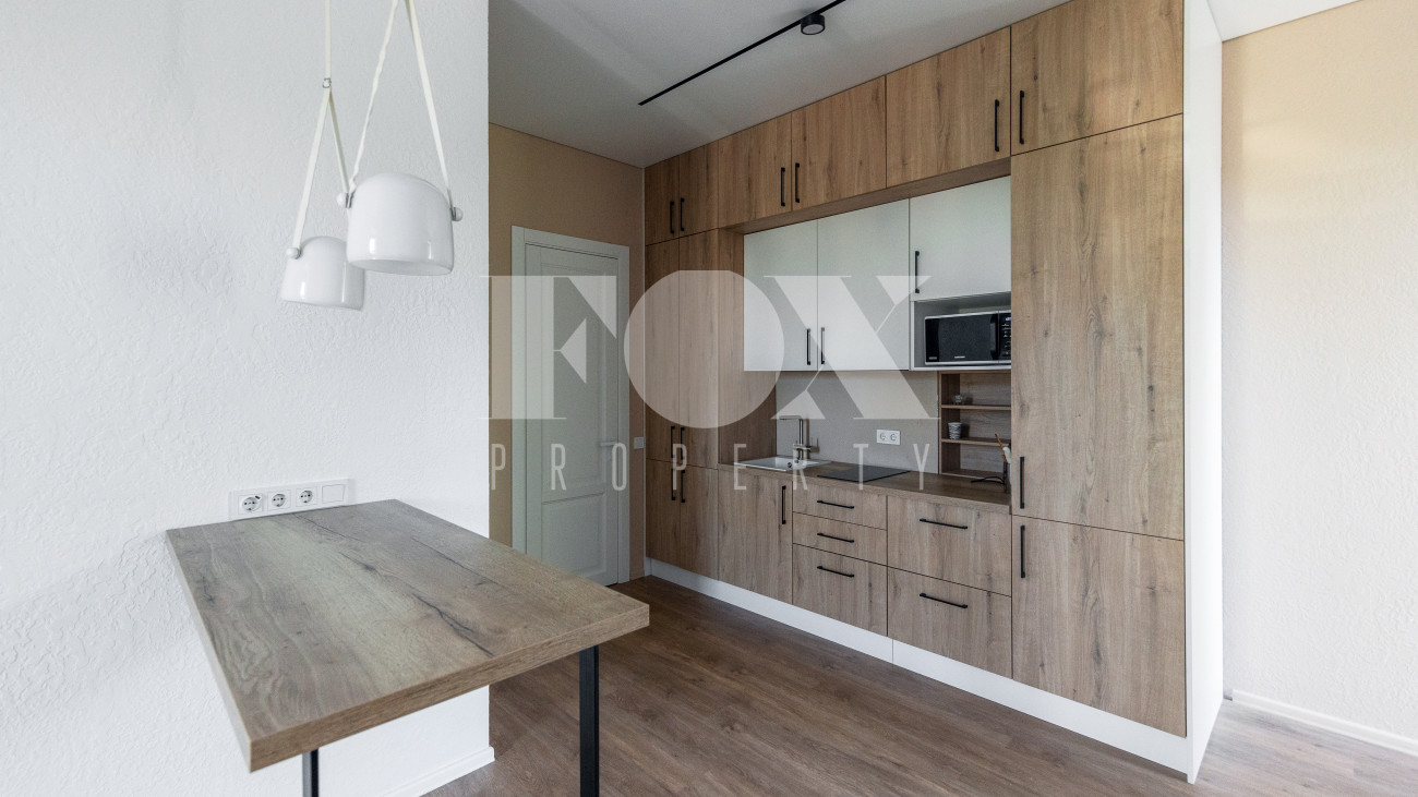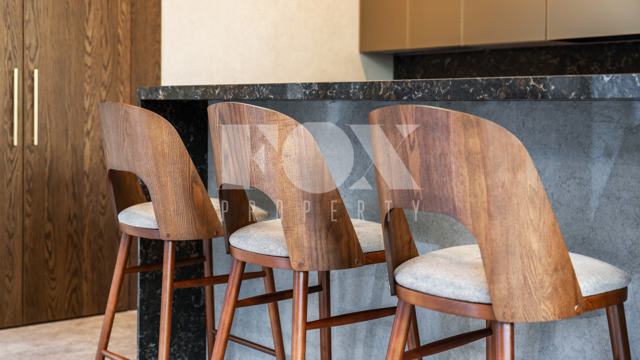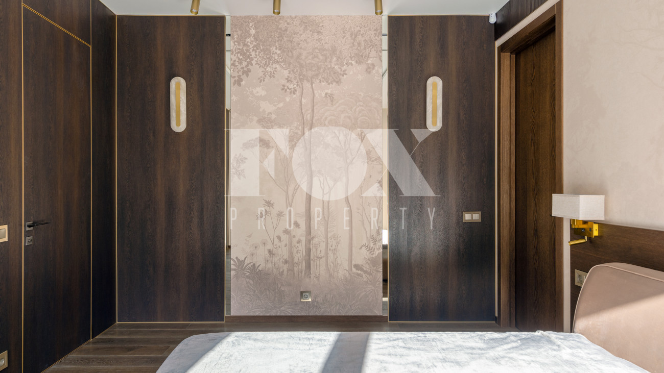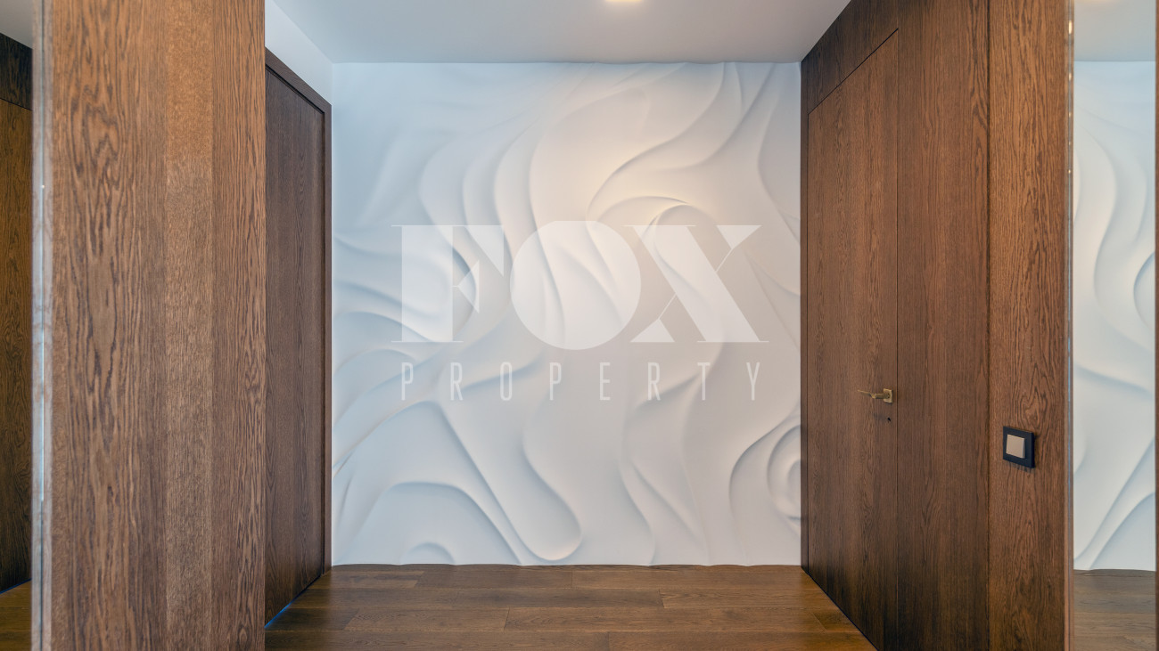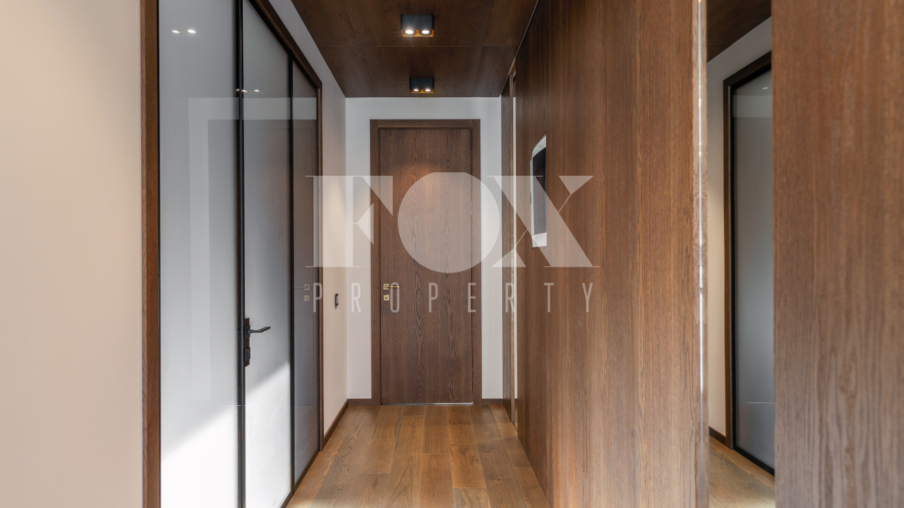 Внутренняя отделка стен выполнена панелями из натурального шпона, пол – натуральный дуб.
