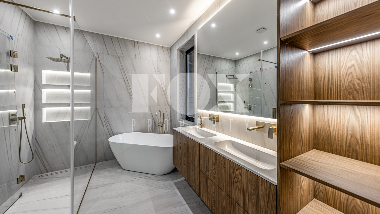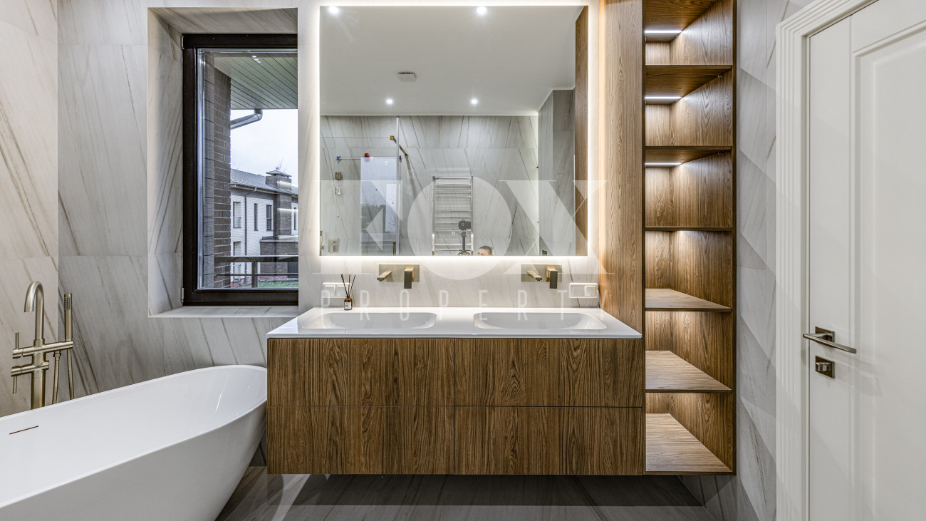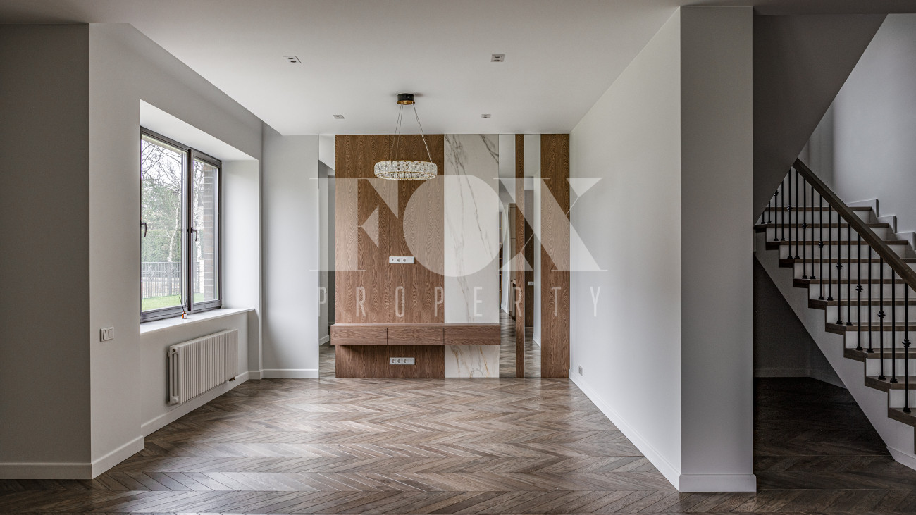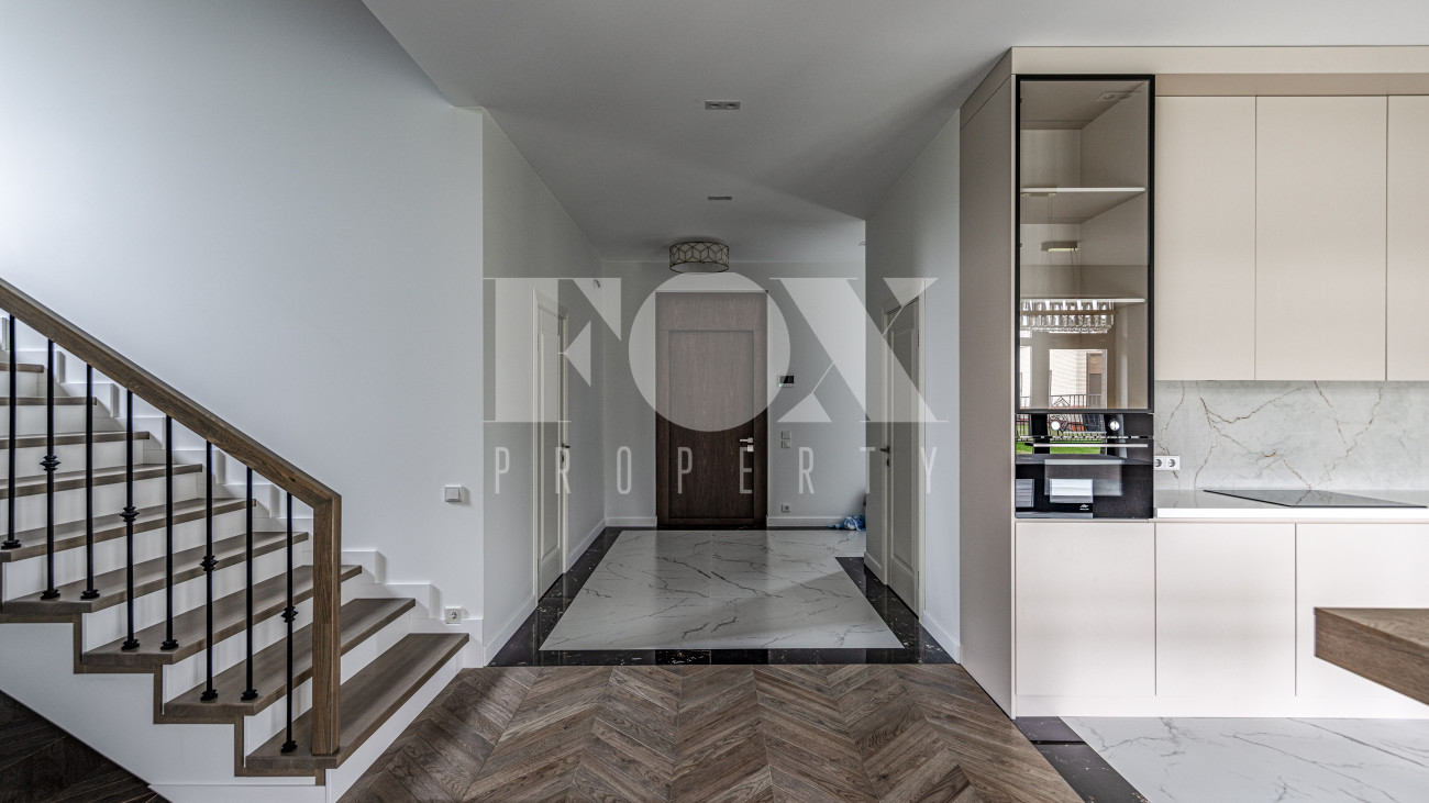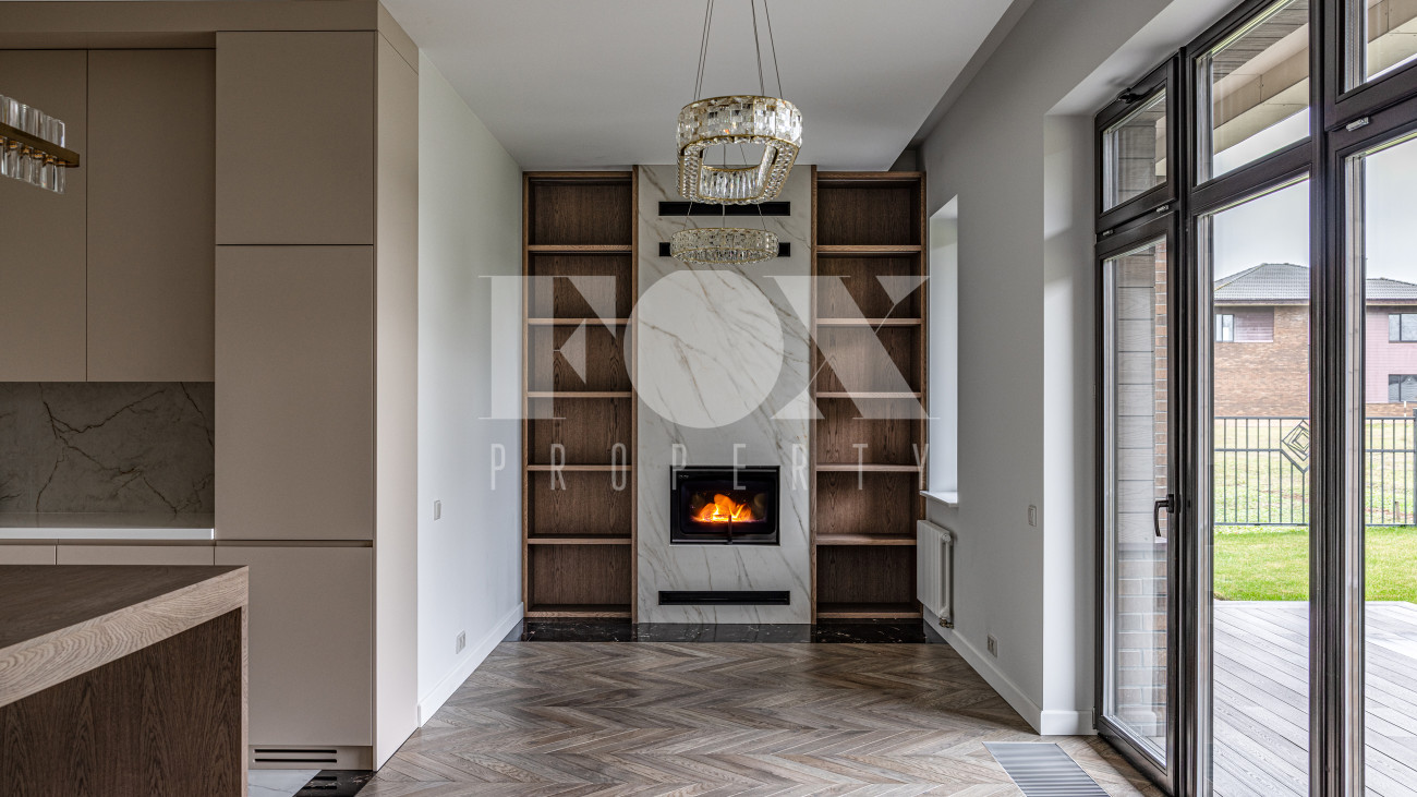 Новый дом в охраняемом коттеджном поселке Крекшино. Эксклюзивная отделка в стиле современной классики. Планировкой предусмотрено просторная гостиная-столовая, каминная, 4 спальни. Участок ровный, правильной формы, уложен газон.