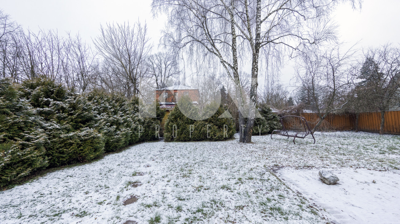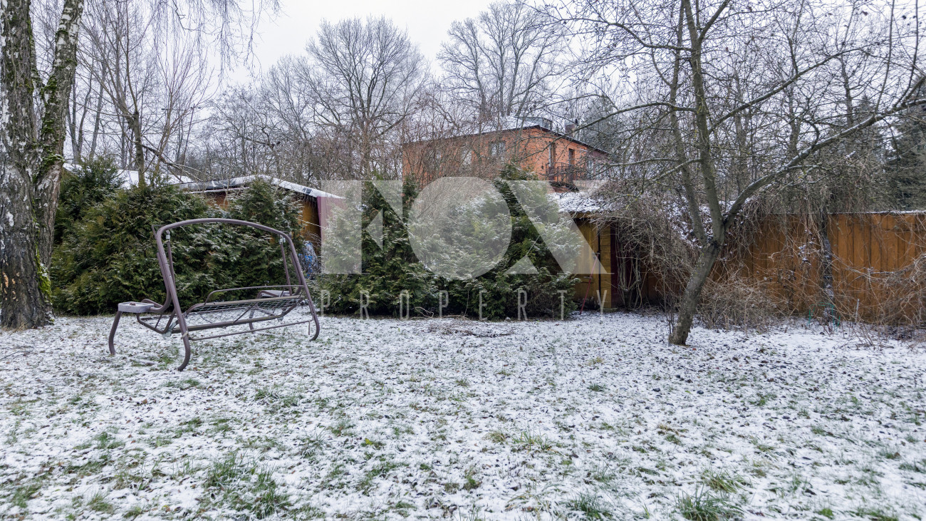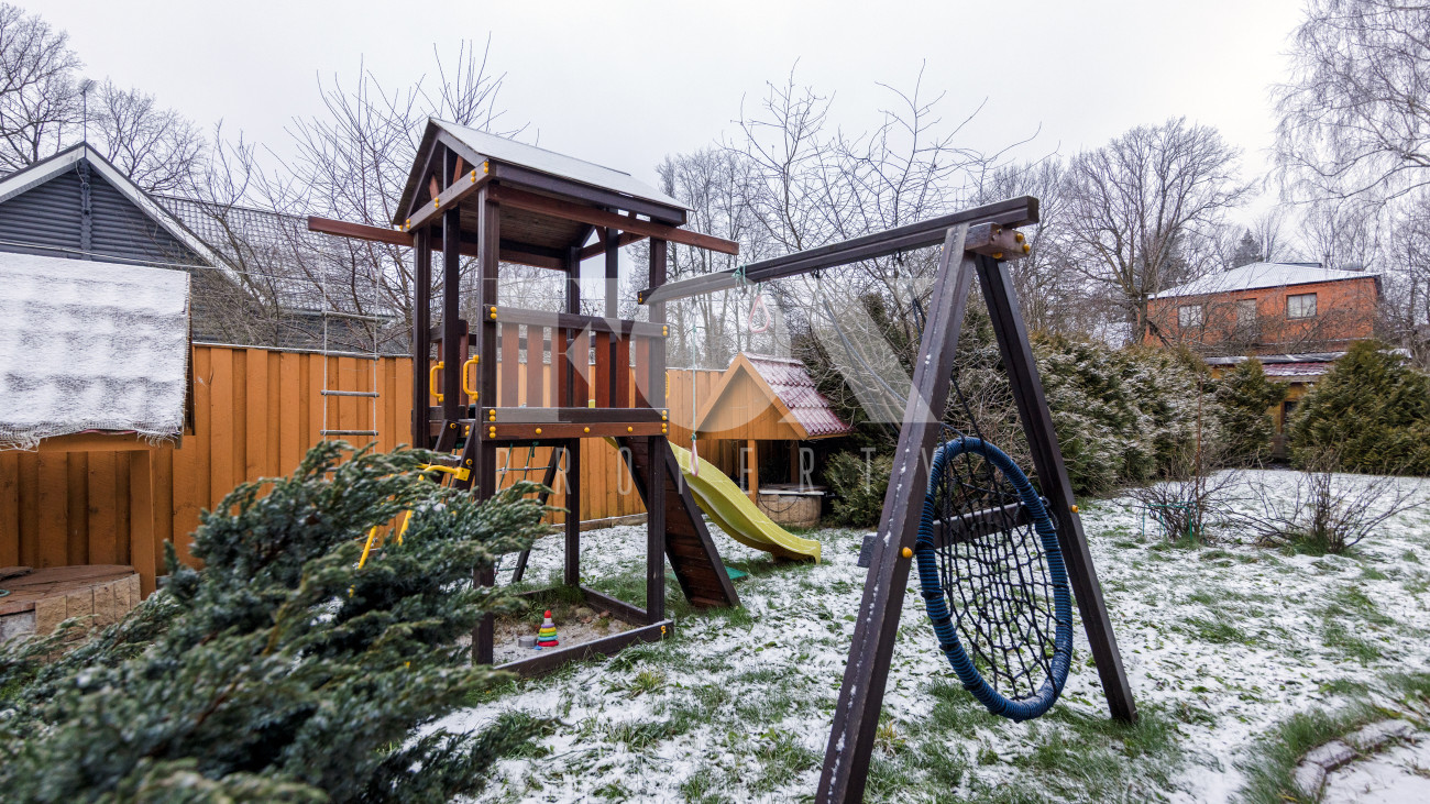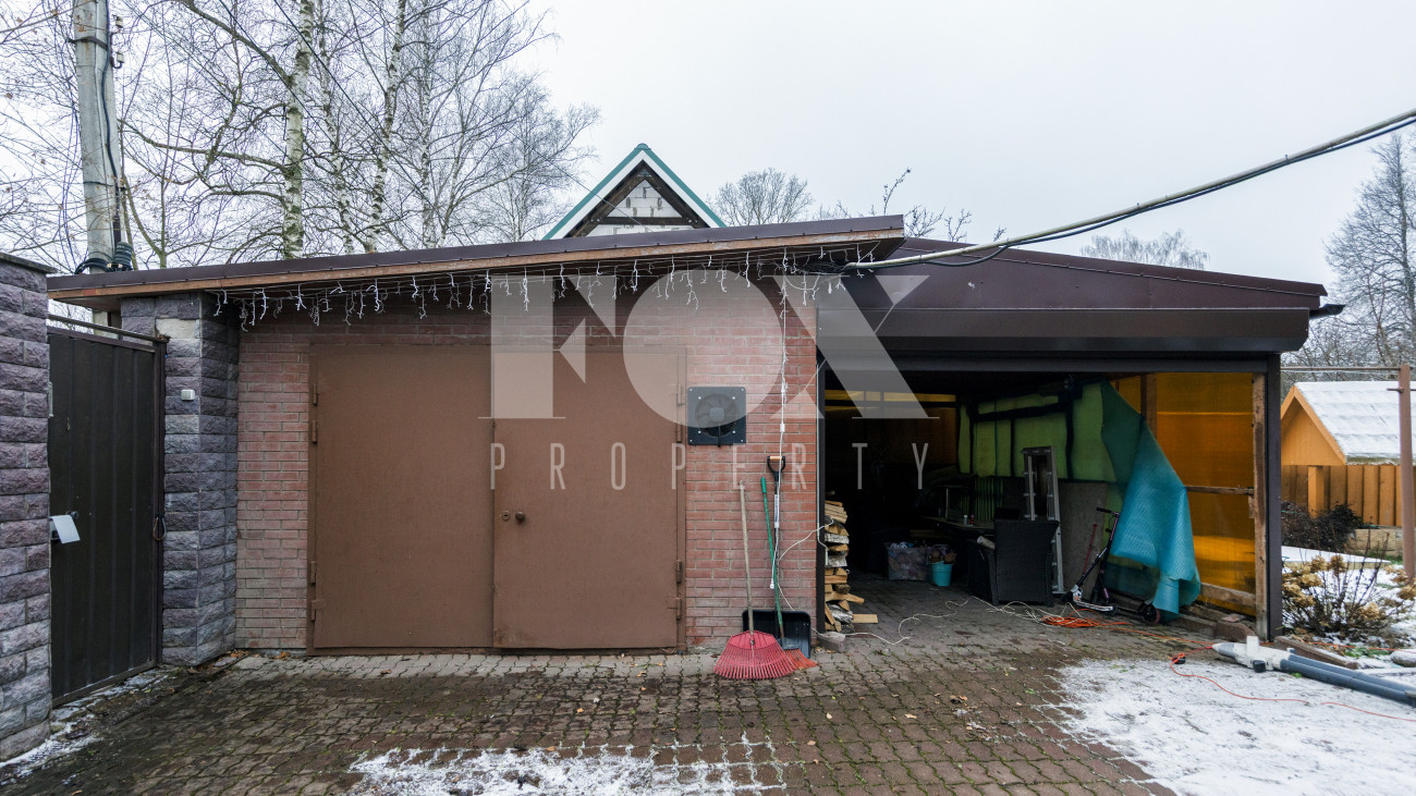 Участок правильной формы 11 соток с плодовыми и декоративными деревьями. Проведены ландшафтные работы, вымощены дорожки, высажен газон, установлены автоматические ворота и видеонаблюдение. Отдельно расположены гостевой дом, зона барбекю, гараж на 3 м/м, мойка