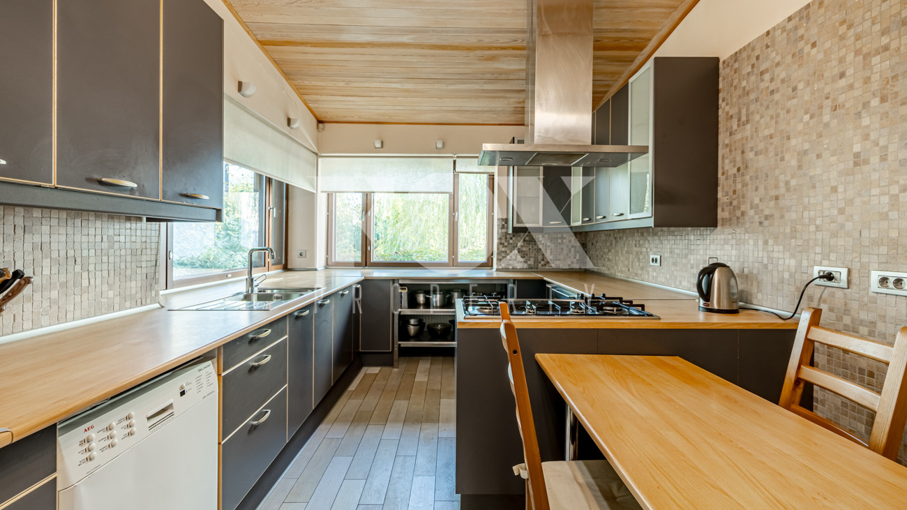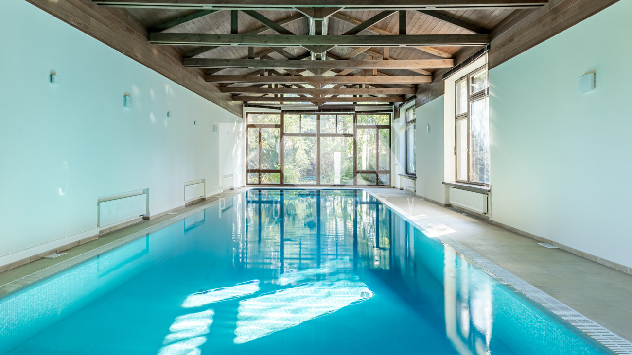 Просторный Дом с плавательным БАССЕЙНОМ, большая площадь остекления, отделка с использованием натуральных материалов в нейтральных природных тонах.