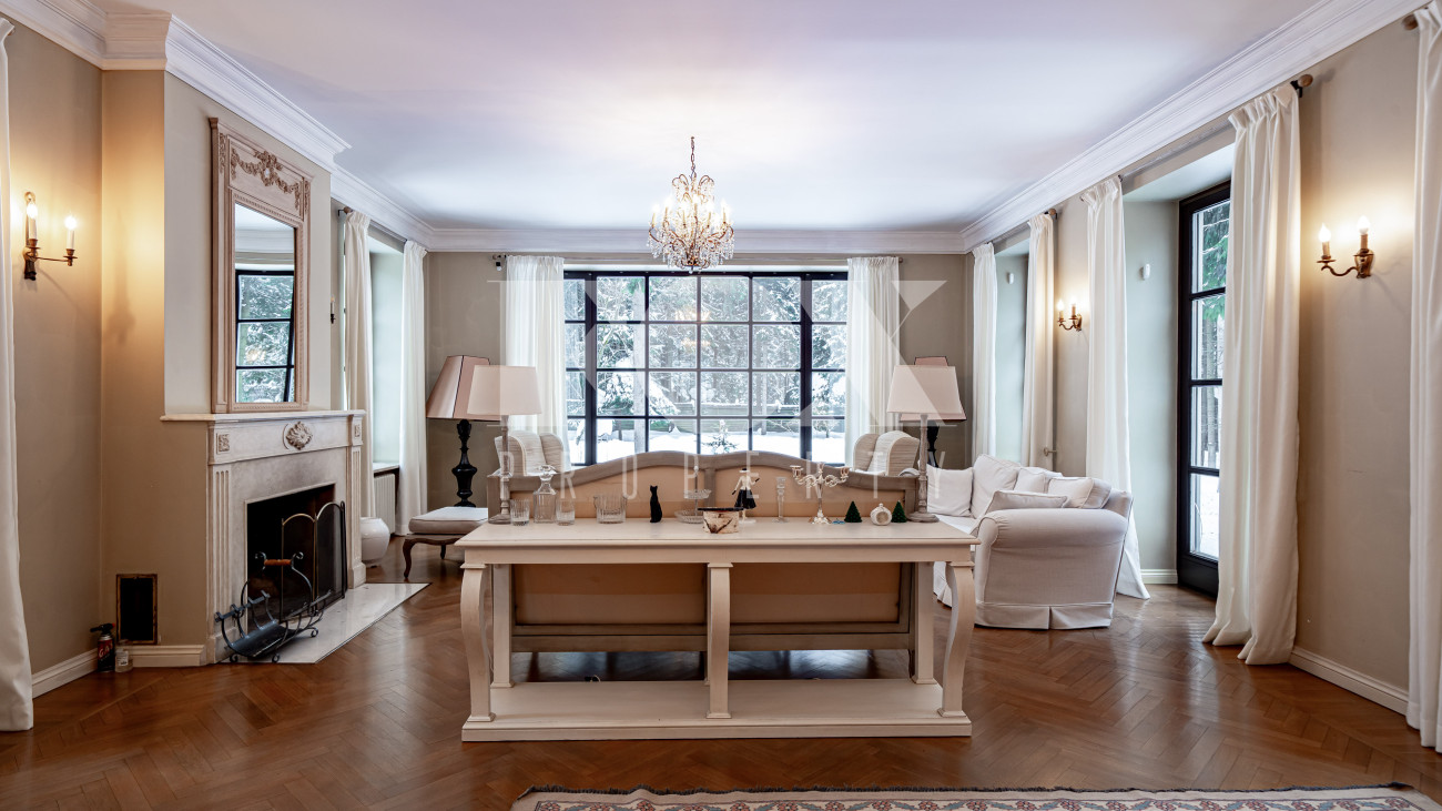 Кирпичный дом, сочетающий в себе современную неоклассику и эстетику европейской загородной виллы.