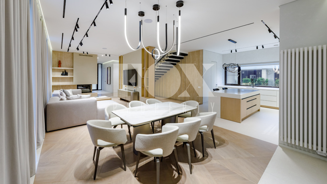 Жилой дом расположен в поселке Трувиль со всей соответствующей инфраструктурой, эксклюзивной архитектурой, проработанным ландшафтом с рекреационными зонами.