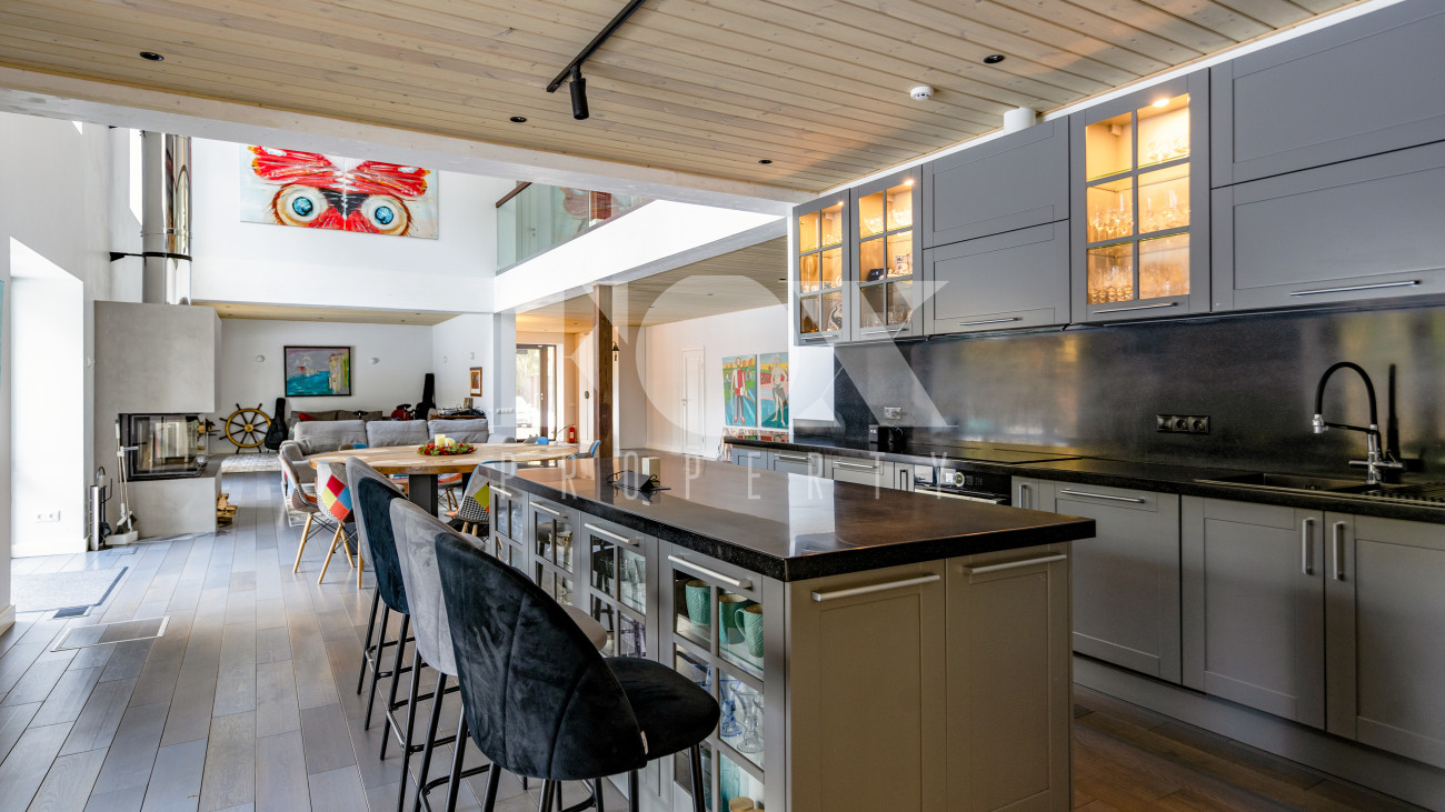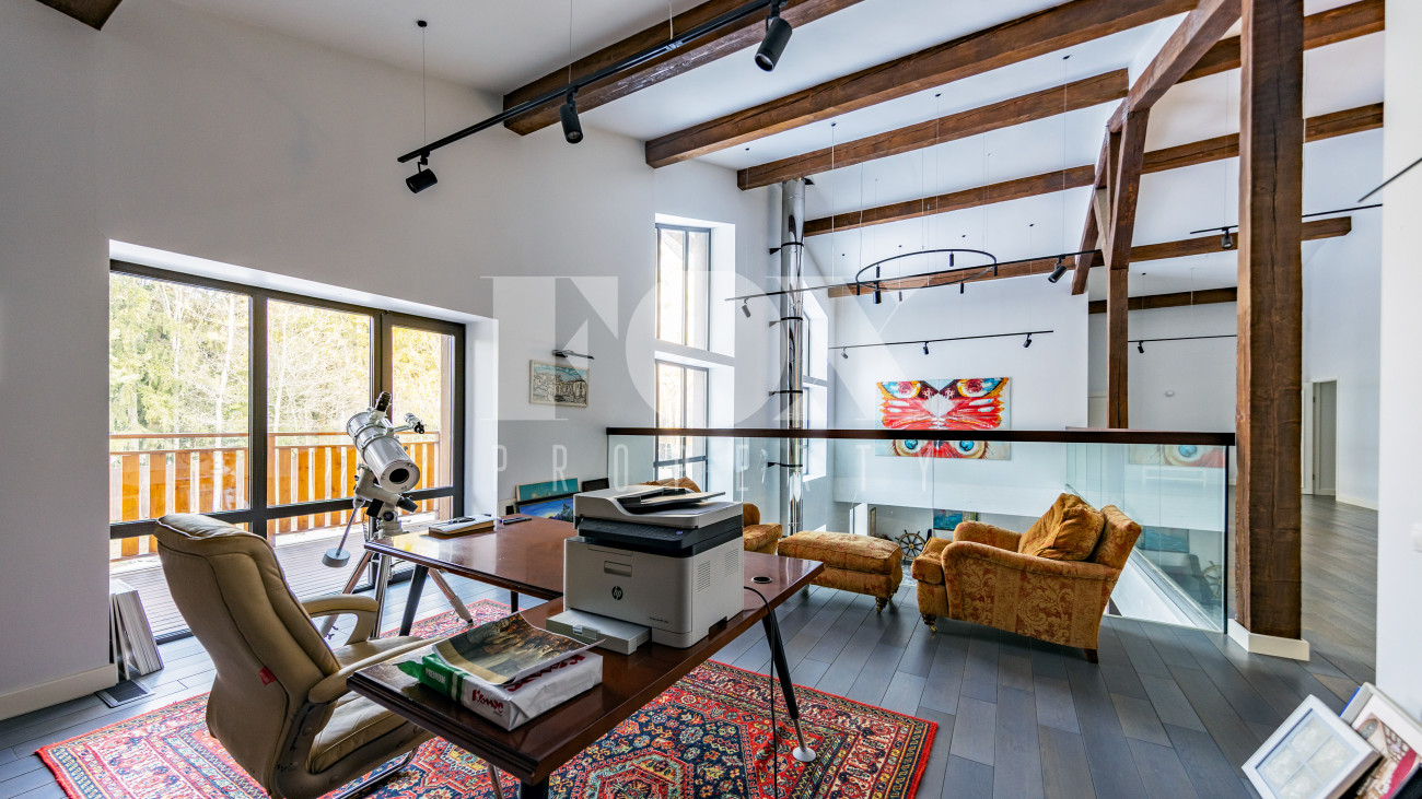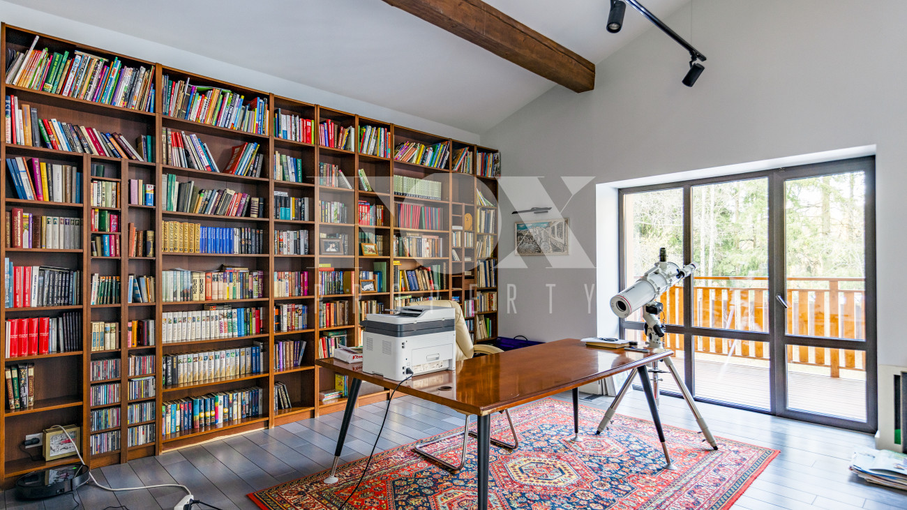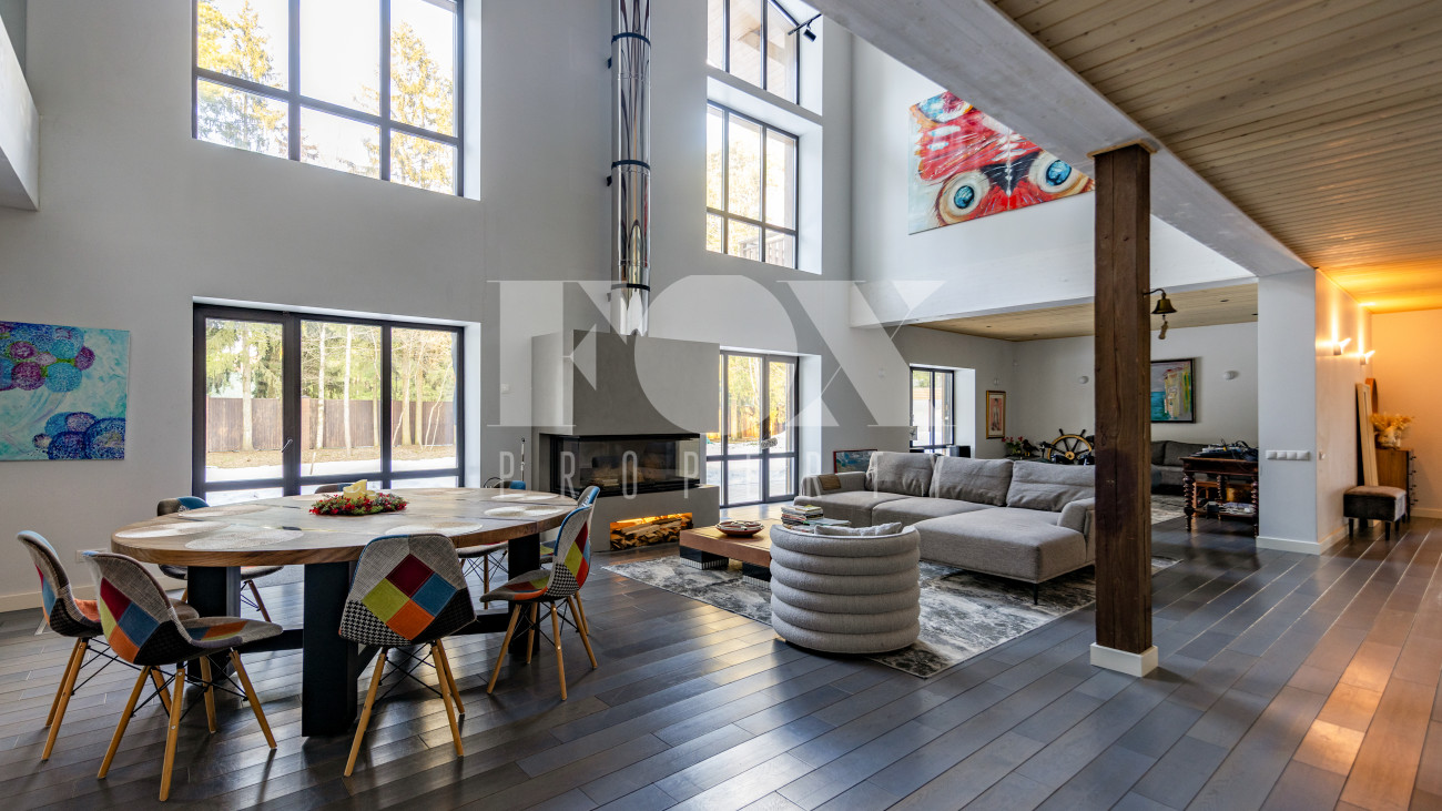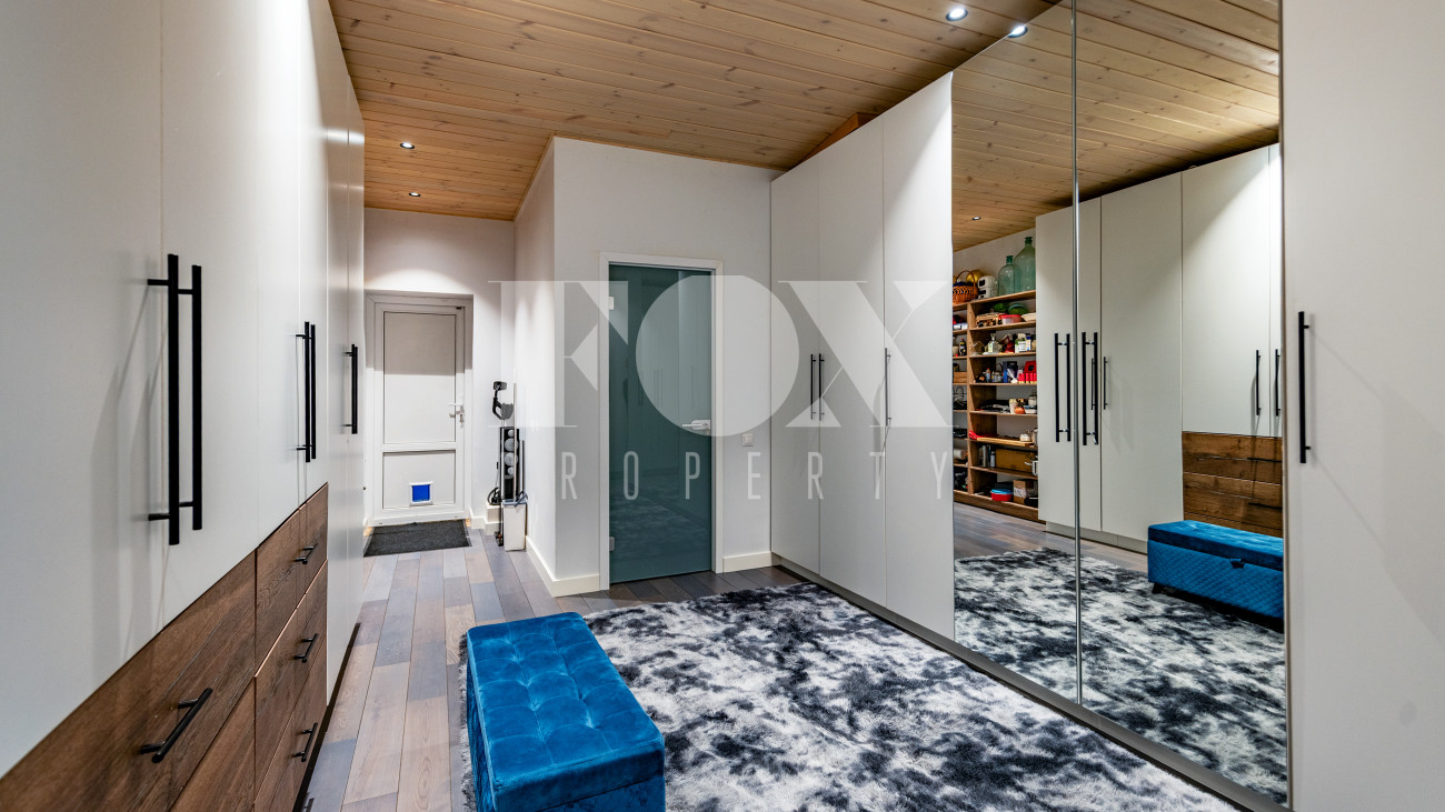 Двухэтажный коттедж 500 метров с террасой и домом для персонала, расположен на приватном лесном участке 53 сотки (вековой лес). Планировочным решением предусмотрено 4 спальни, 5 с\у, камин, сауна, летняя терраса вокруг дома, скважина с артезианской водой, воздушное отопление, московская прописка, высота второго света 9 метров, система умного дома, 10 мин МЦД Толстопальцево.