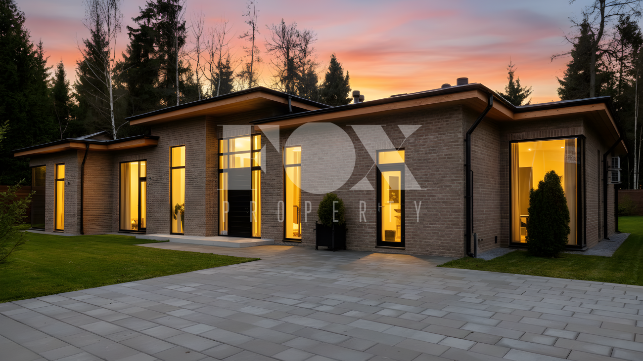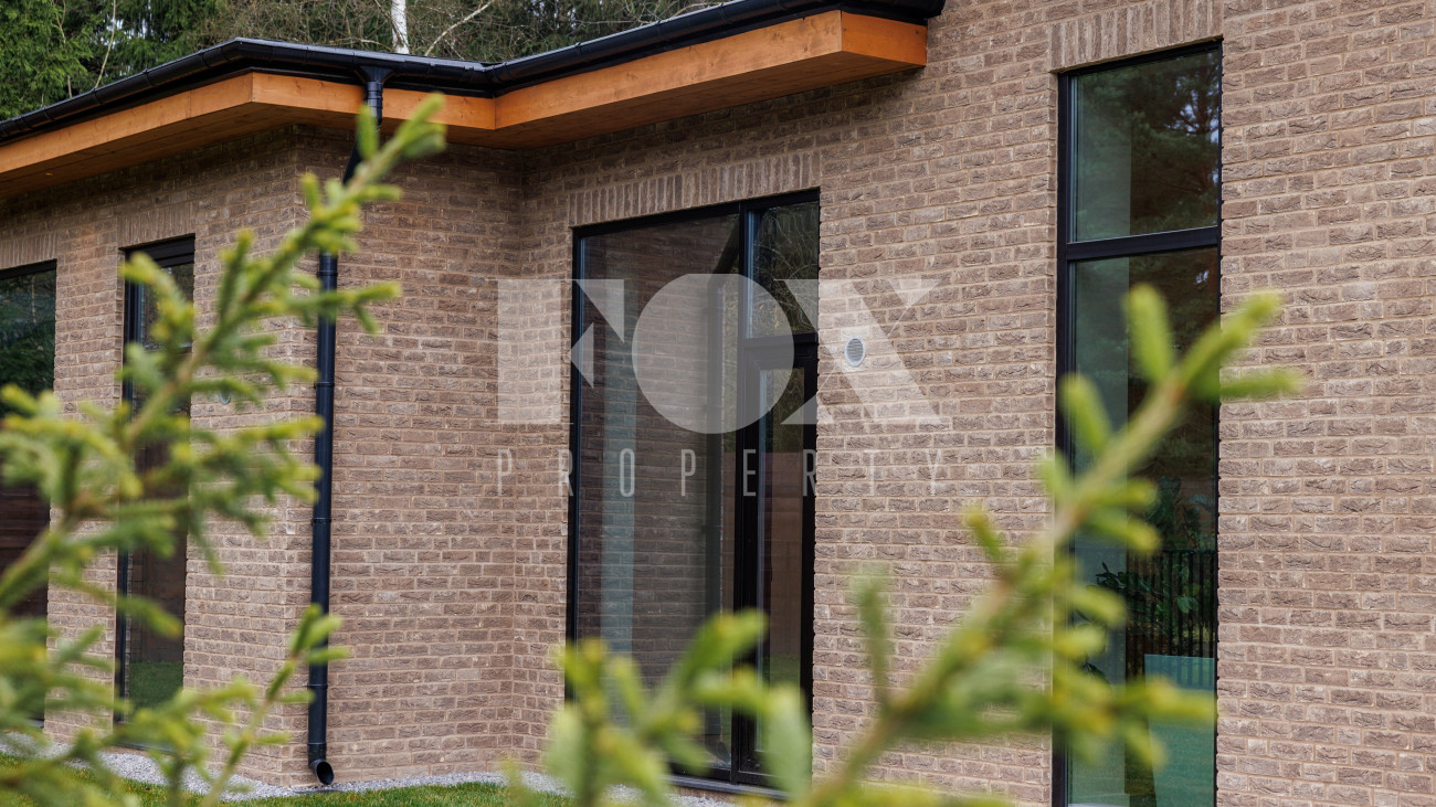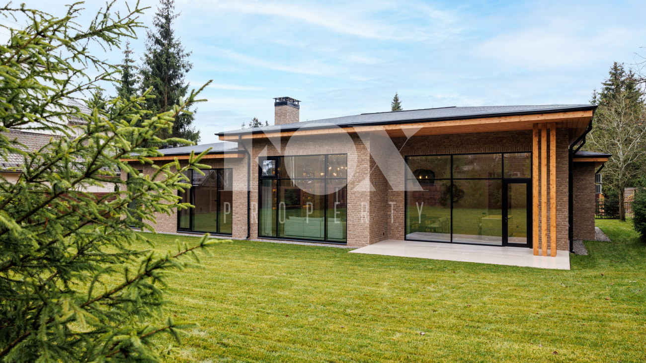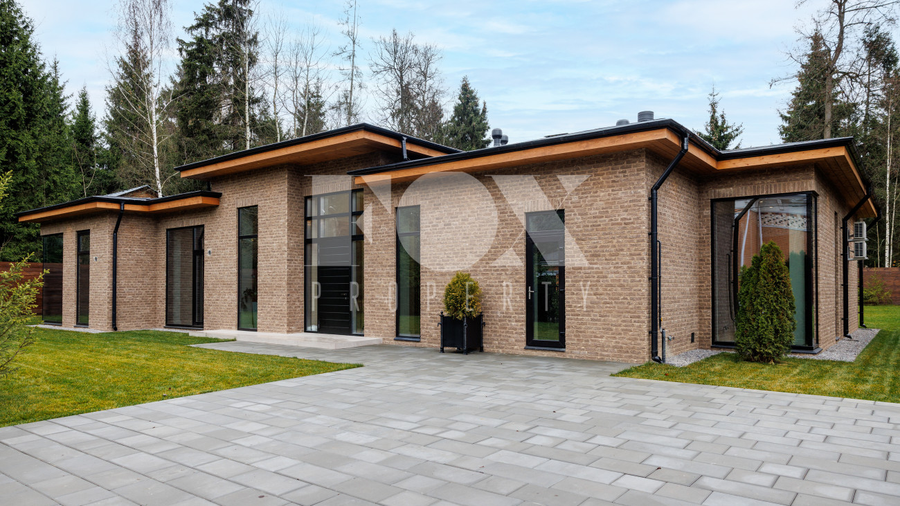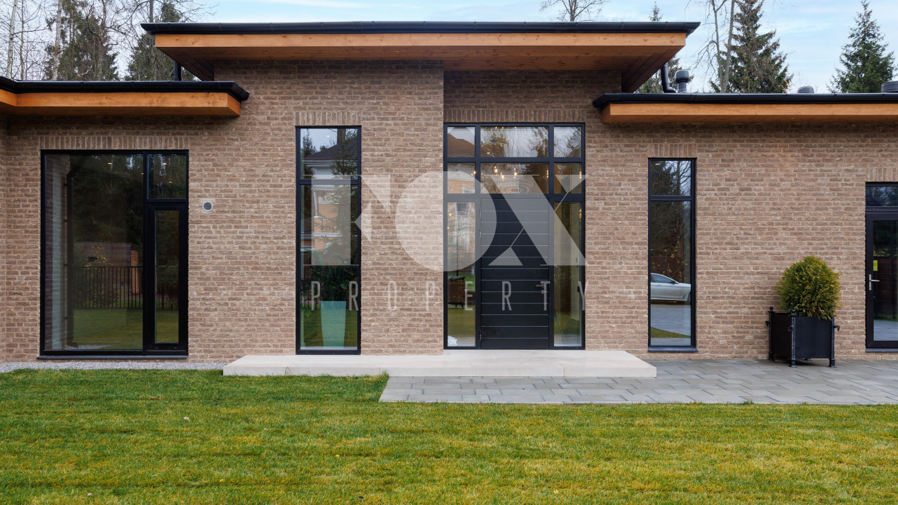 Дом спроектирован "вне времени" по прообразу мировых резиденций. Единая стилистика архитектуры фасада и интерьера дома. При строительстве дома применялись лучшие современные материалы: бетонный свайно-ростверковый фундамент, керамический блок и кирпич, облицовочный кирпич ручной формовки выложенный по индивидуальной раскладке, алюминиевые энергоэффективные окна с двойным стеклопакетом, кровля - битумная бесшумная черепица Tegola.