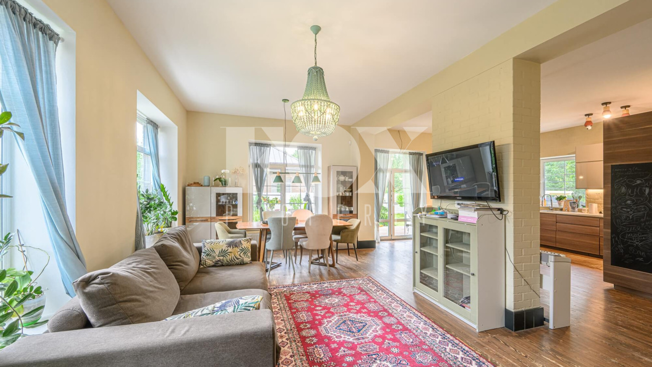 Светлый интерьер, функциональная планировка, отделка натуральными материалами, мастер-спальня с выходом на большой балкон, защищенная от осадков и ветров терраса под навесом