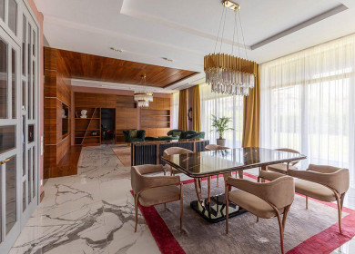 Новый современный дом «под ключ» в охраняемом коттеджном поселке. Премиальные отделочные материалы: сантехника немецкого производителя «Виллерой», смесители, трапы и душевые системы - Италия и Германия, система кондиционирования и вентиляции японского производителя. Выделено на дом 25 киловатт по электричеству. Собственная система дренажа участка и фундамента. Система полива газона.производства Италии, Германии, Японии, сантехника villeroy&boch.