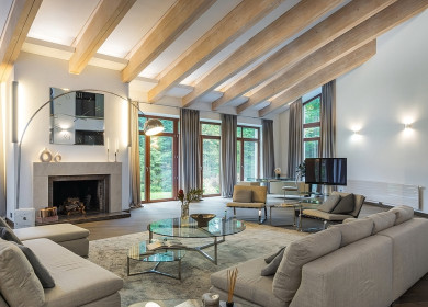 Резиденция в классическом стиле на просторном ландшафтном участке. Расположена в застроенной части поселка.