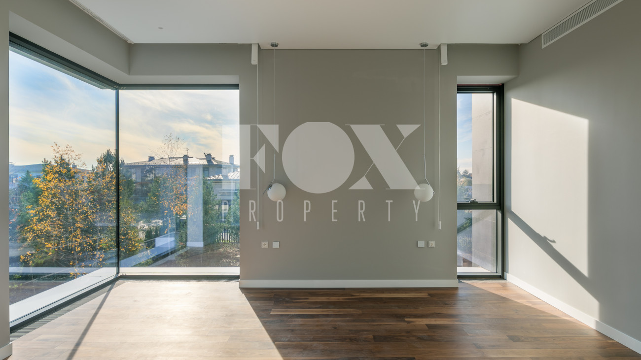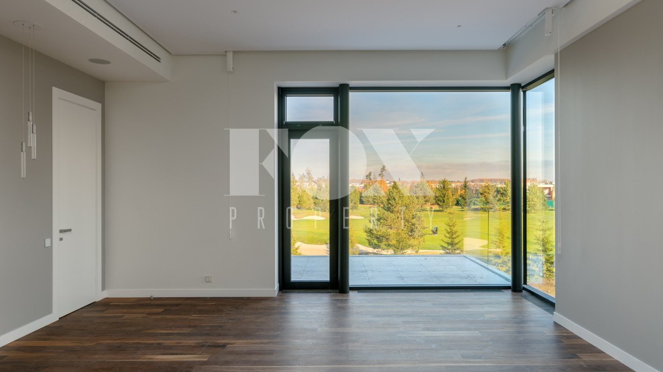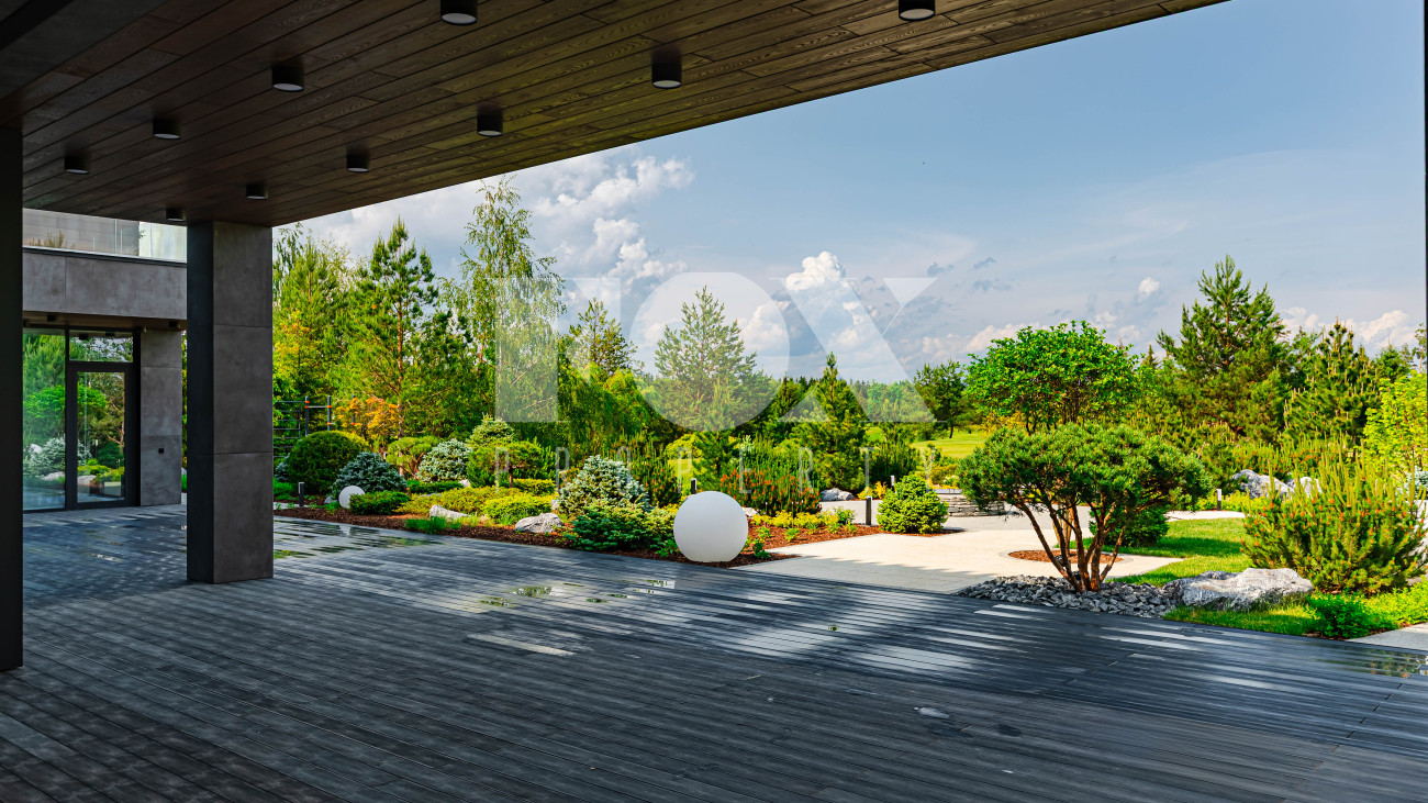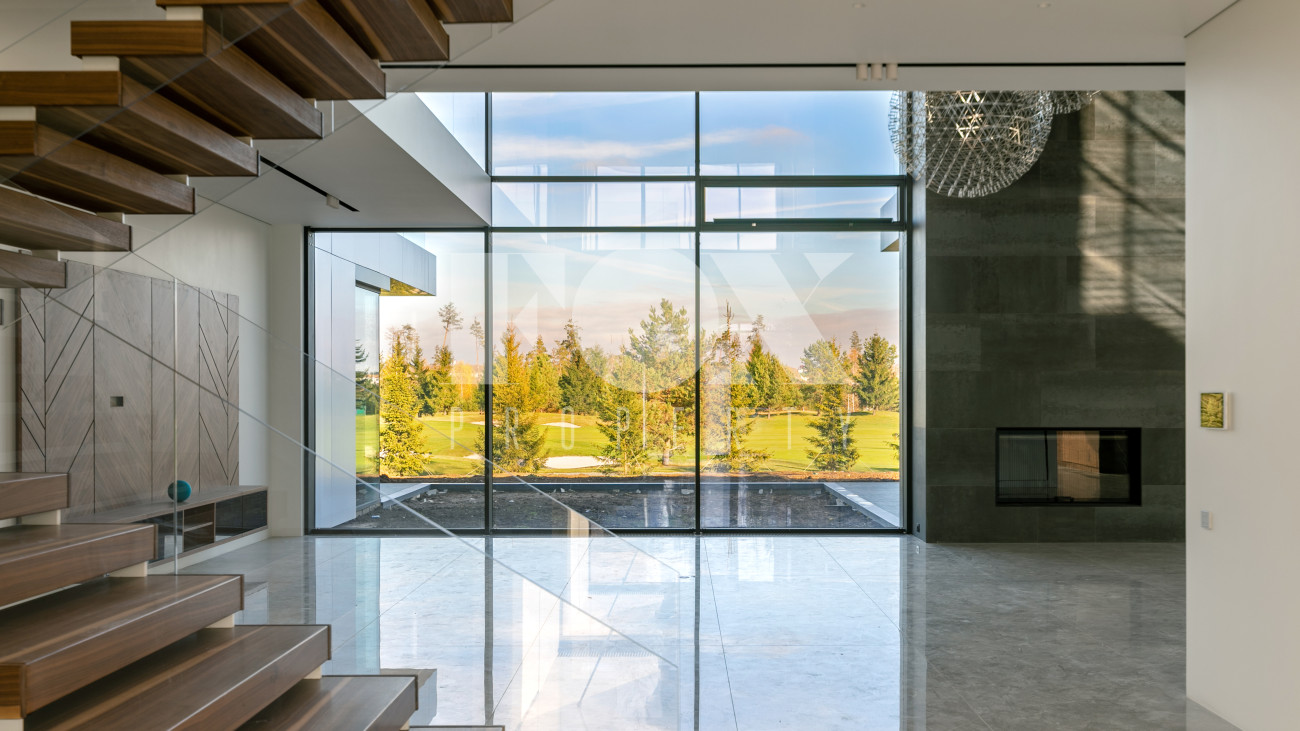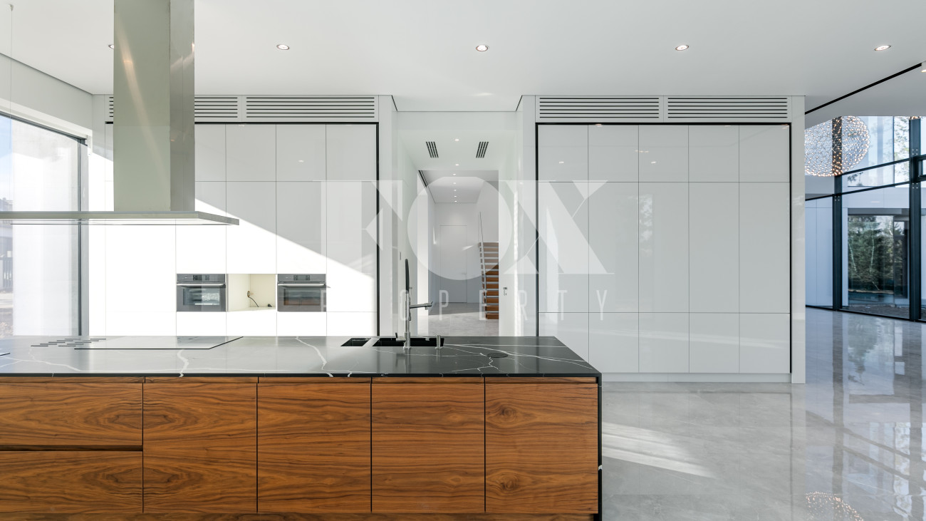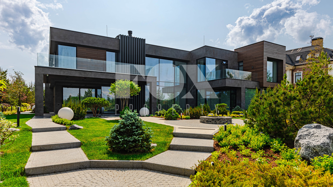 Просторная загородная резиденция в стиле hi-tech площадью 950 м² под ключ без мебели располагается на участке 33 сотки с ландшафтным дизайном в премиальном коттеджном поселке «Агаларов Эстейт».