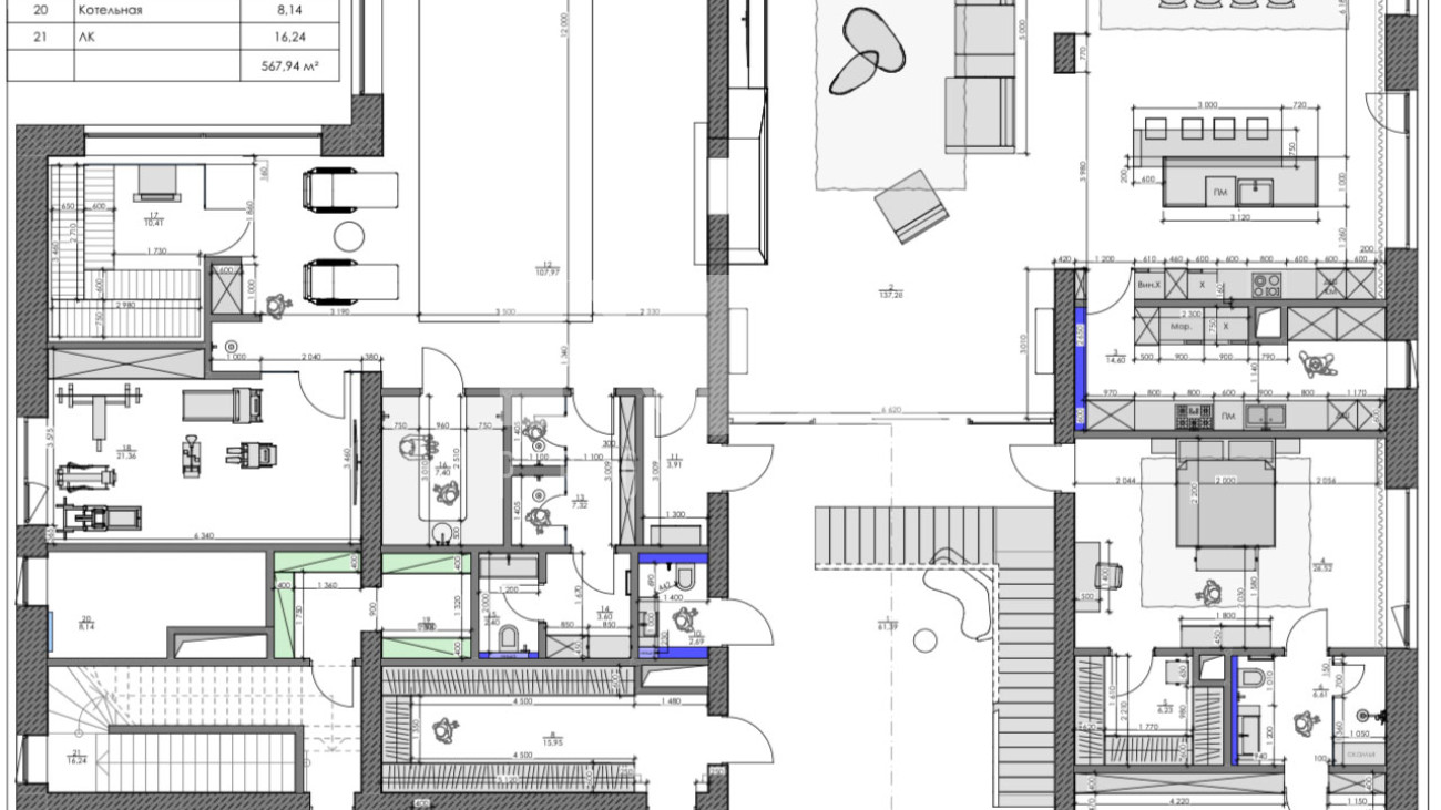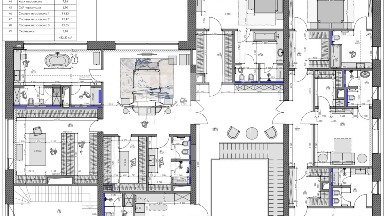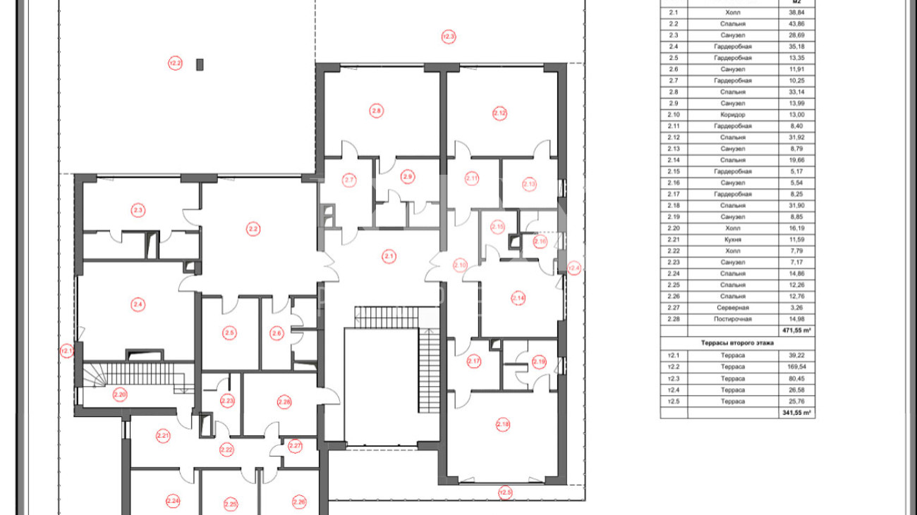 - 4 спальни с гардеробными и санузлами