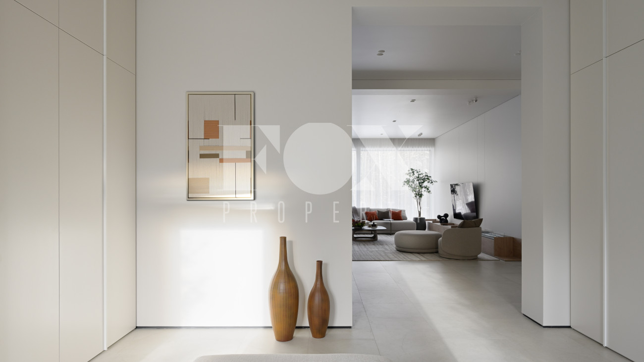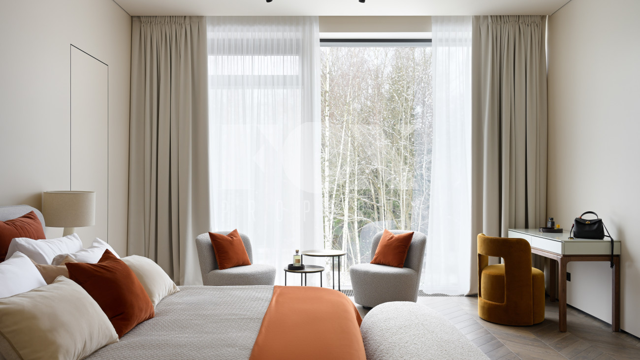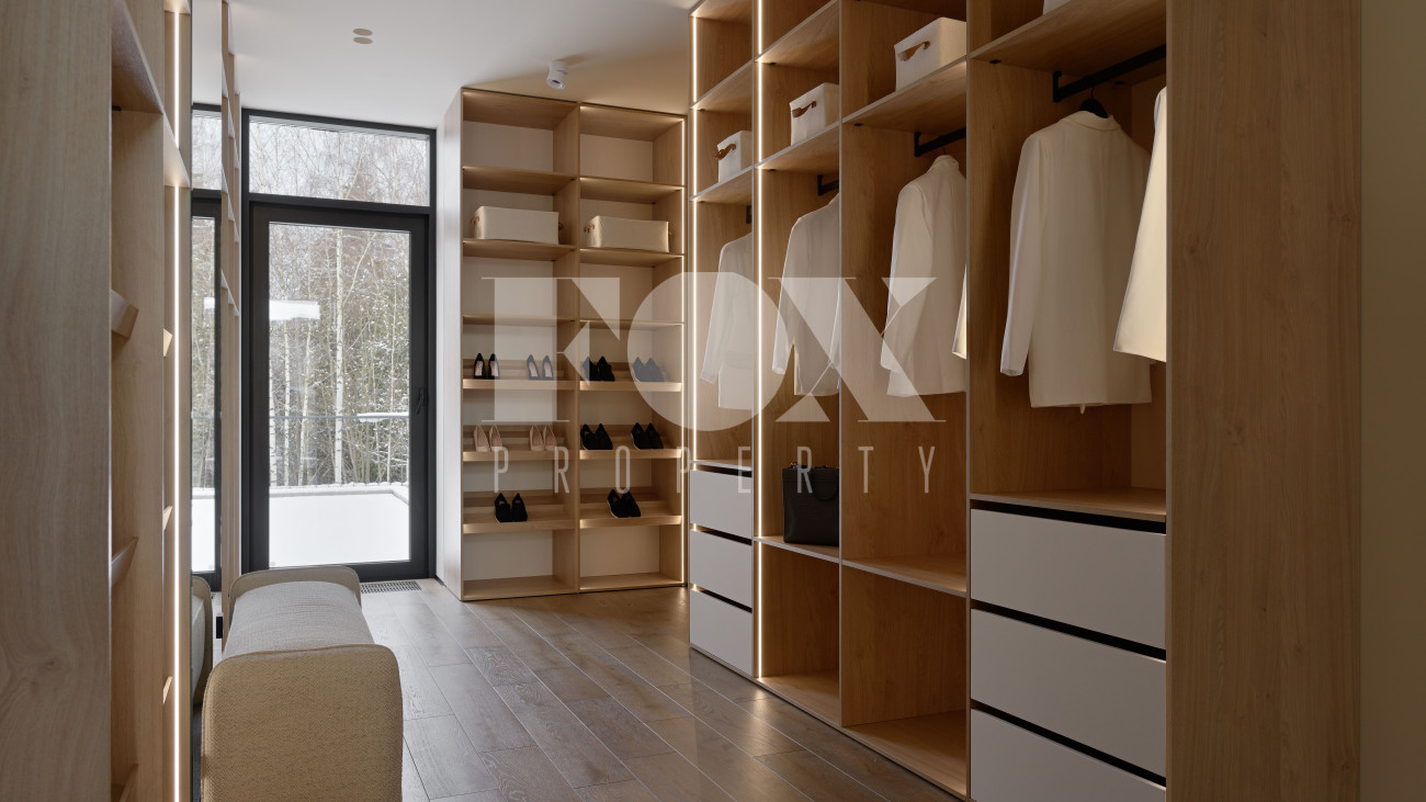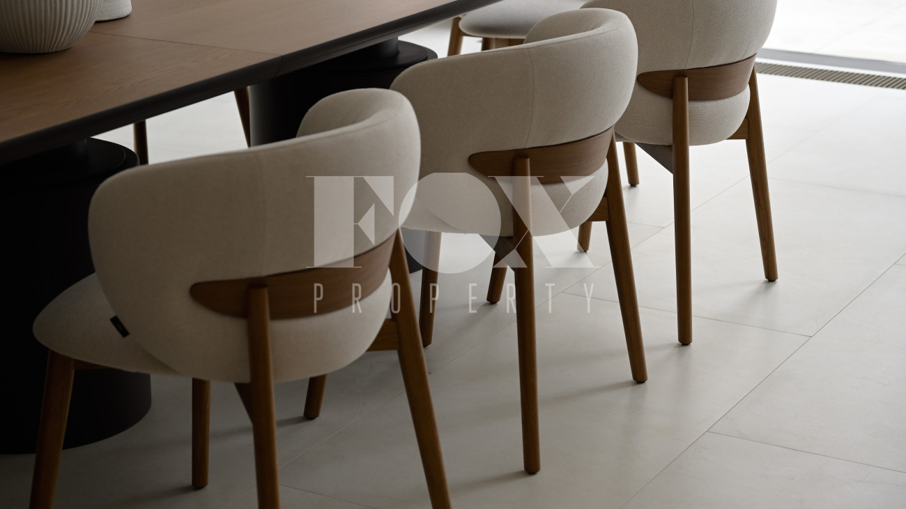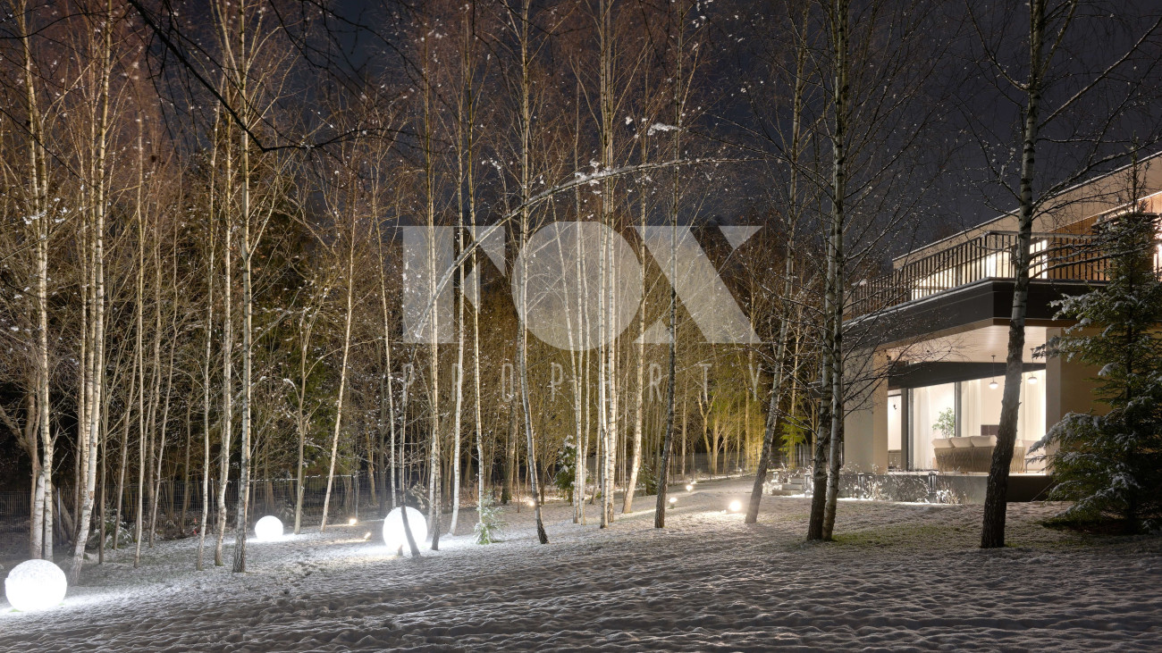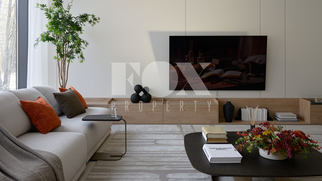 Готовый к заселению дом площадью 627,5 м2 с архитектурой в стиле Hi-Tech. Пространство включает 6 спален,