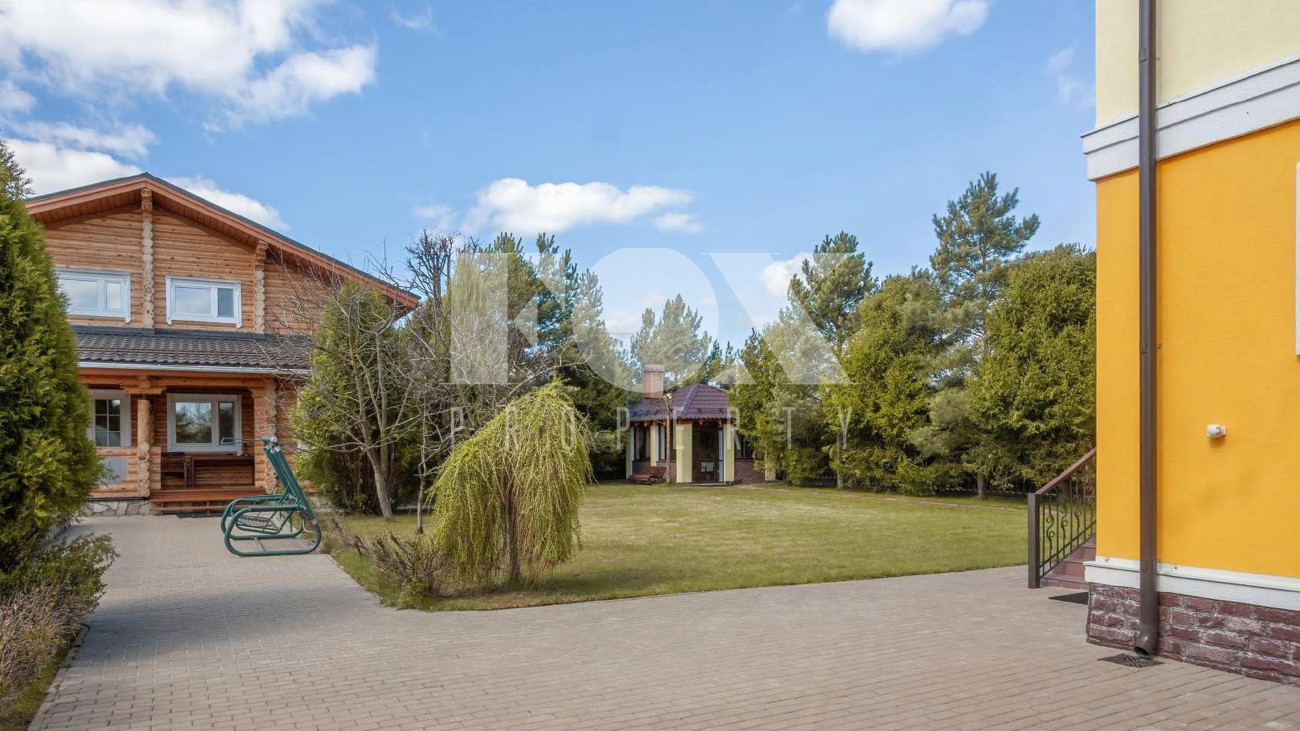 Благодаря большому количеству взрослых деревьев участок совершенно приватный, соседей не видно. Построена дровяная баня из бревна с гостевыми комнатами, бассейн с выходом на участок и беседка с мангальной зоной. Установлено парковое освещение и автоматические ворота. Все дорожки вымощены брусчаткой. Сделан дренаж.
