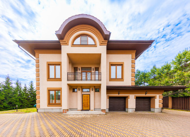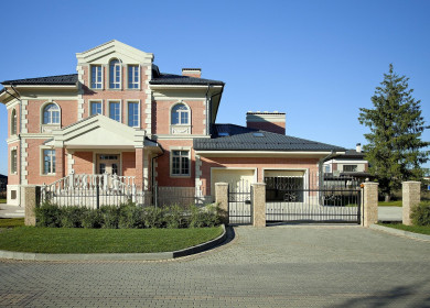 Натуральная гранитная брусчатка, которой вымощены прогулочные дорожки и въездная группа.