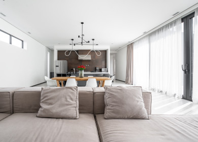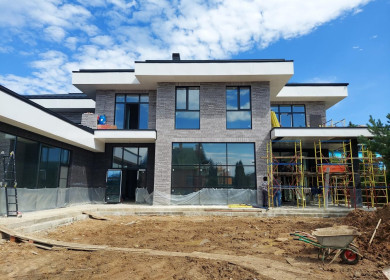 Дом 700 кв.м в современном стиле с панорамными окнами и вторым светом из дерева. Лесной участок 35 соток с парковым ландшафтом. Современный интерьер укомплектован стильной мебелью и предметами декора.