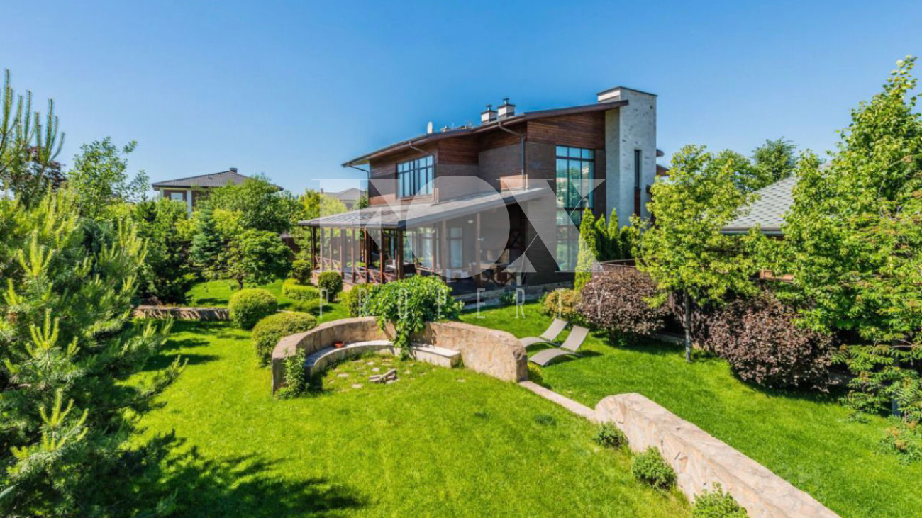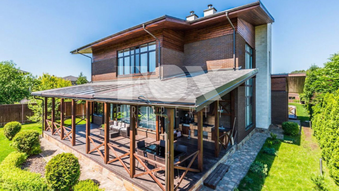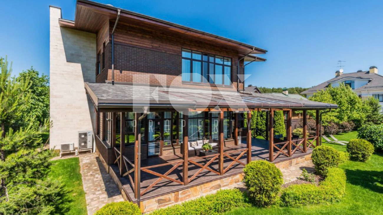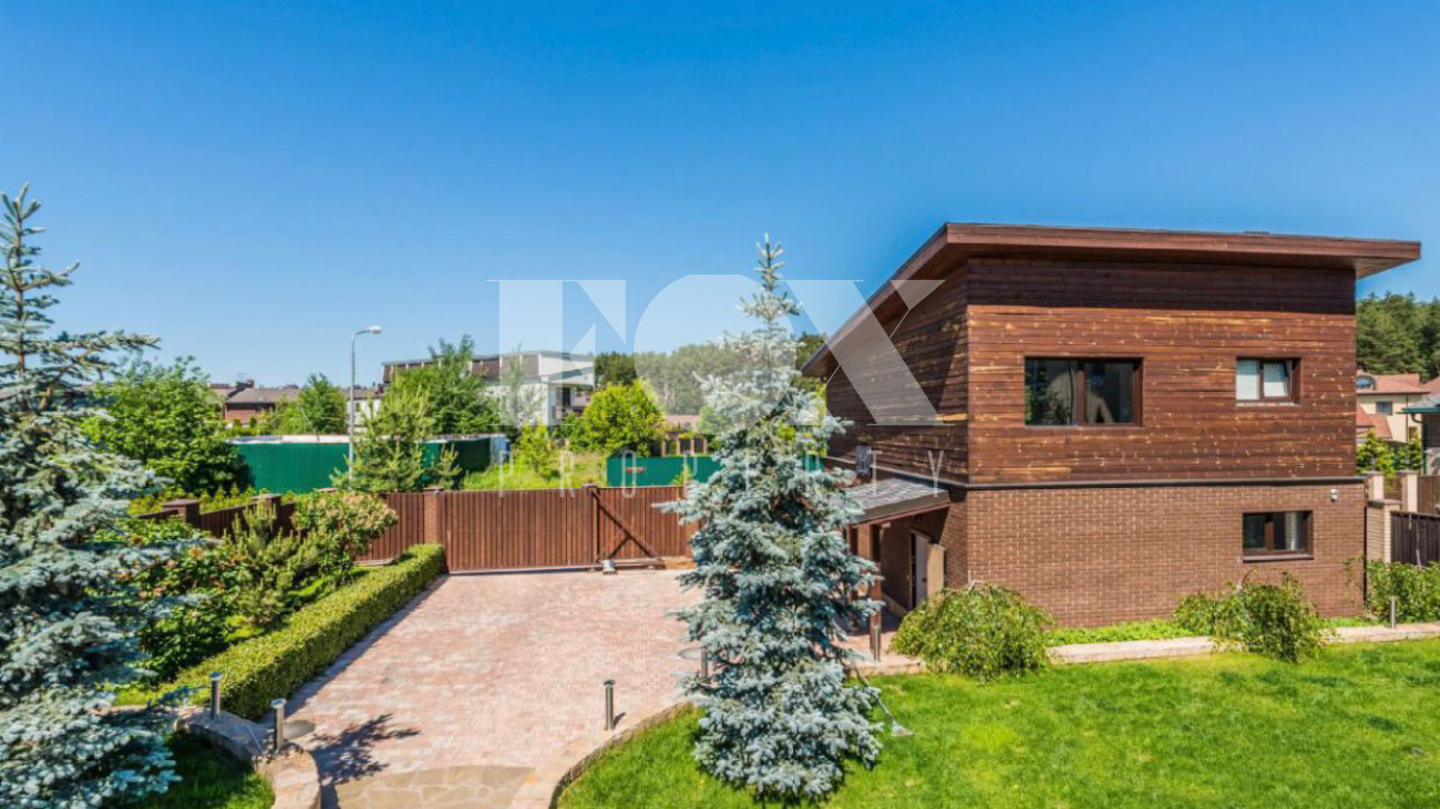 Дом площадью 325 кв.м на участке 21 сотка в охраняемом поселке с идеальной транспортной доступностью. На участке проведены ландшафтные работы, высажены кустарники и крупномеры, вымощены дорожки. На участке расположены гараж на 2 м/м, гостевой дом.