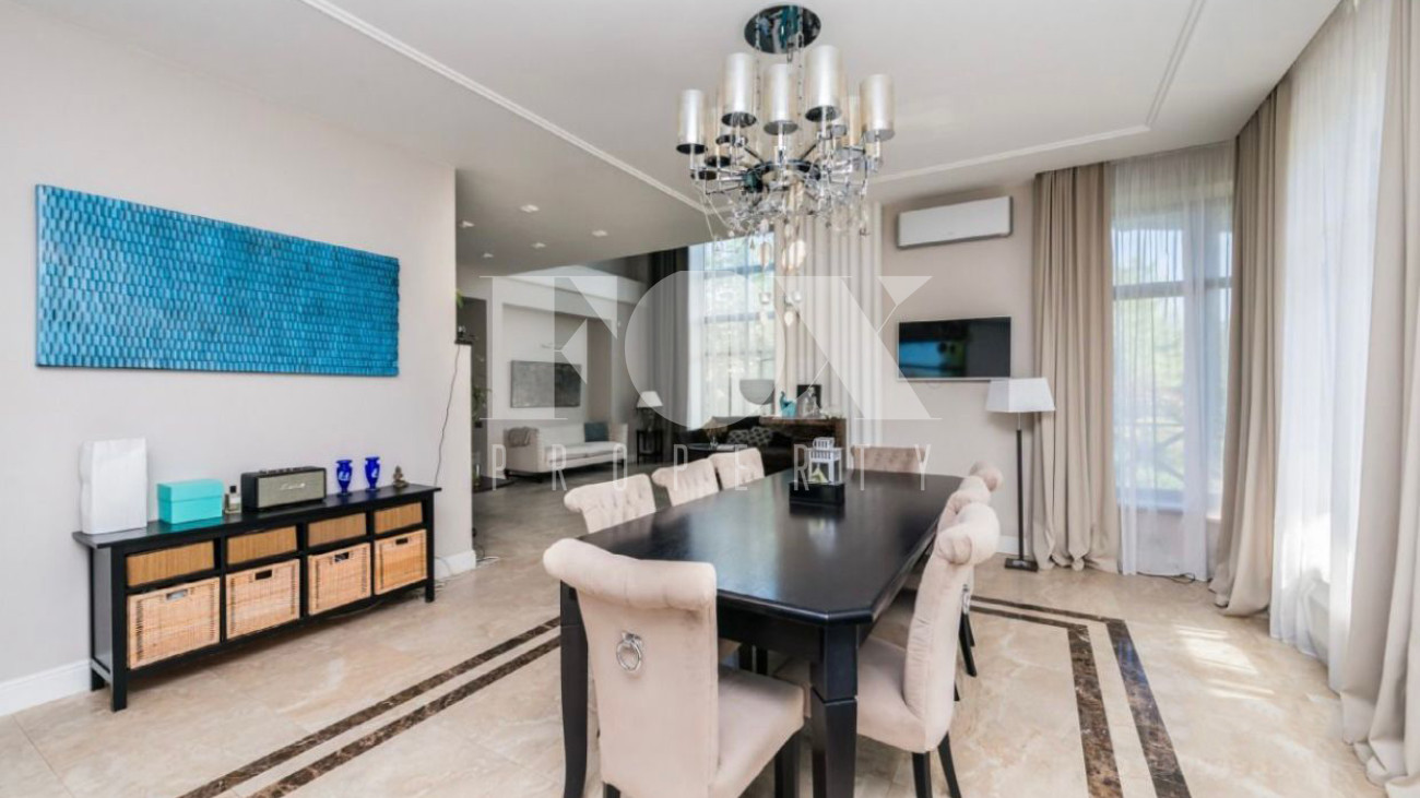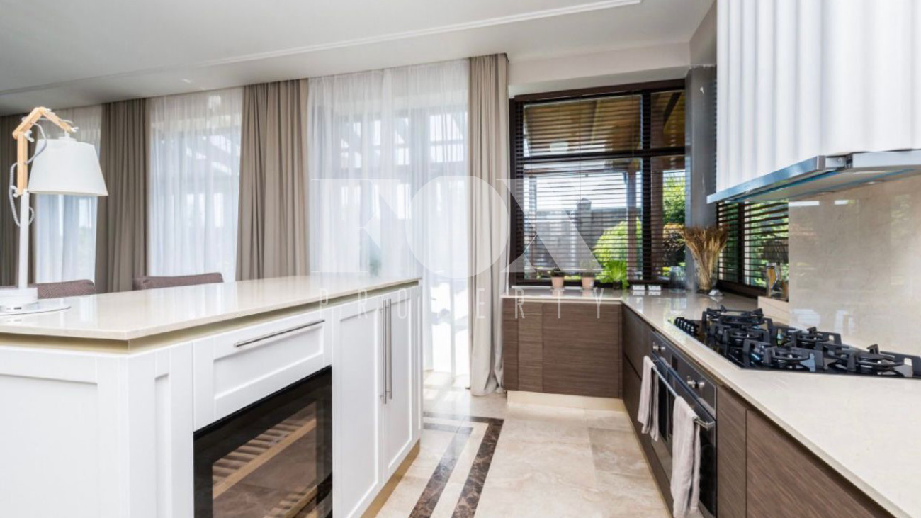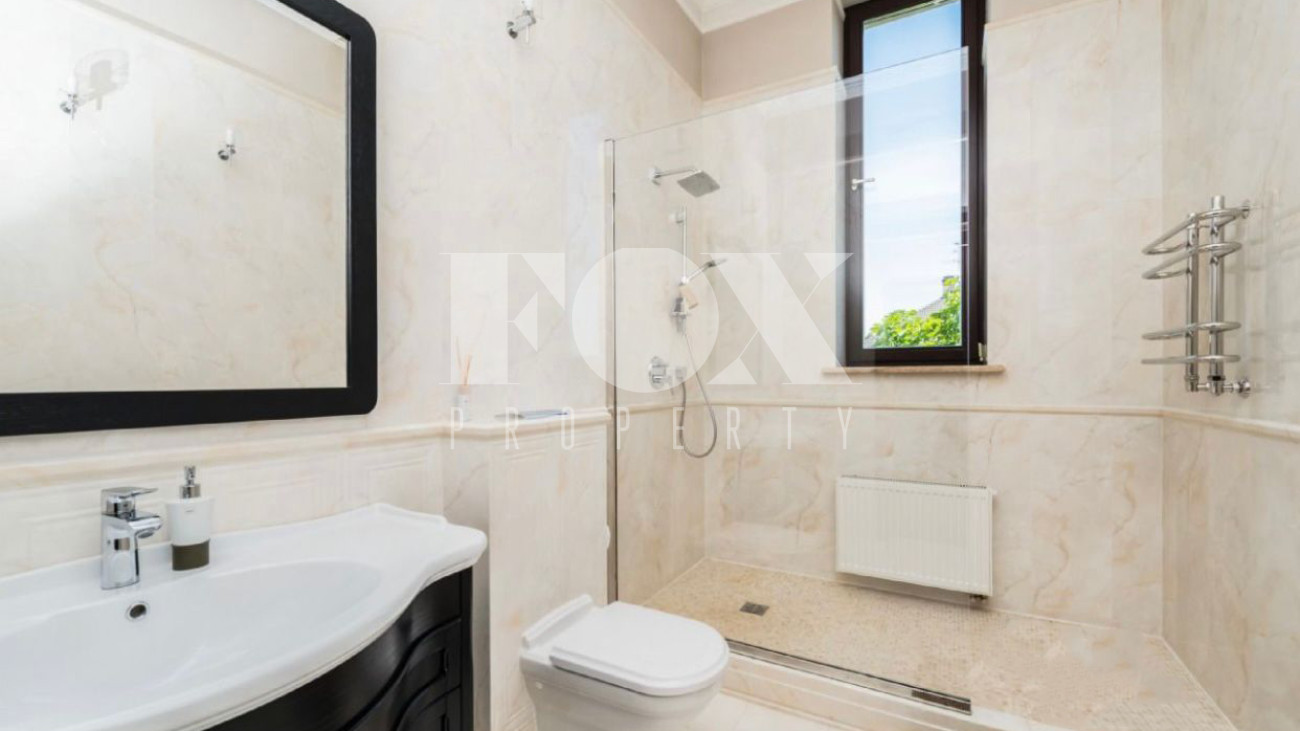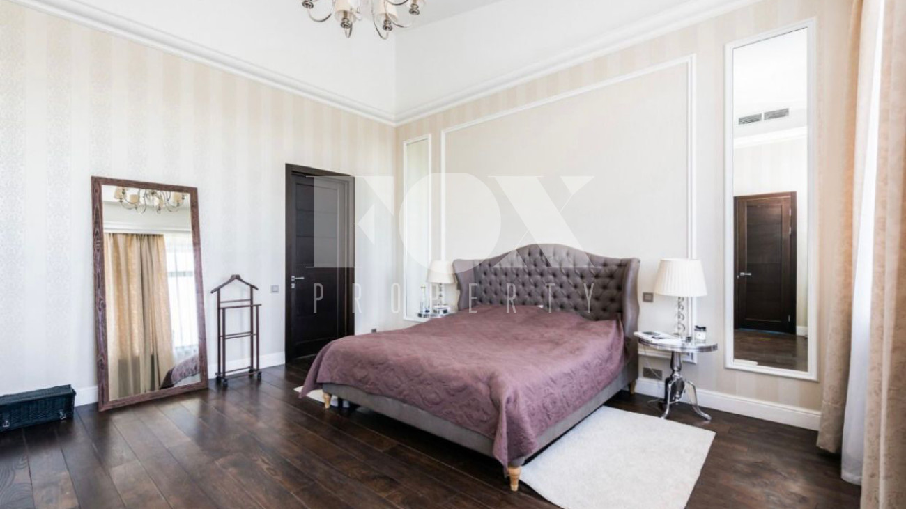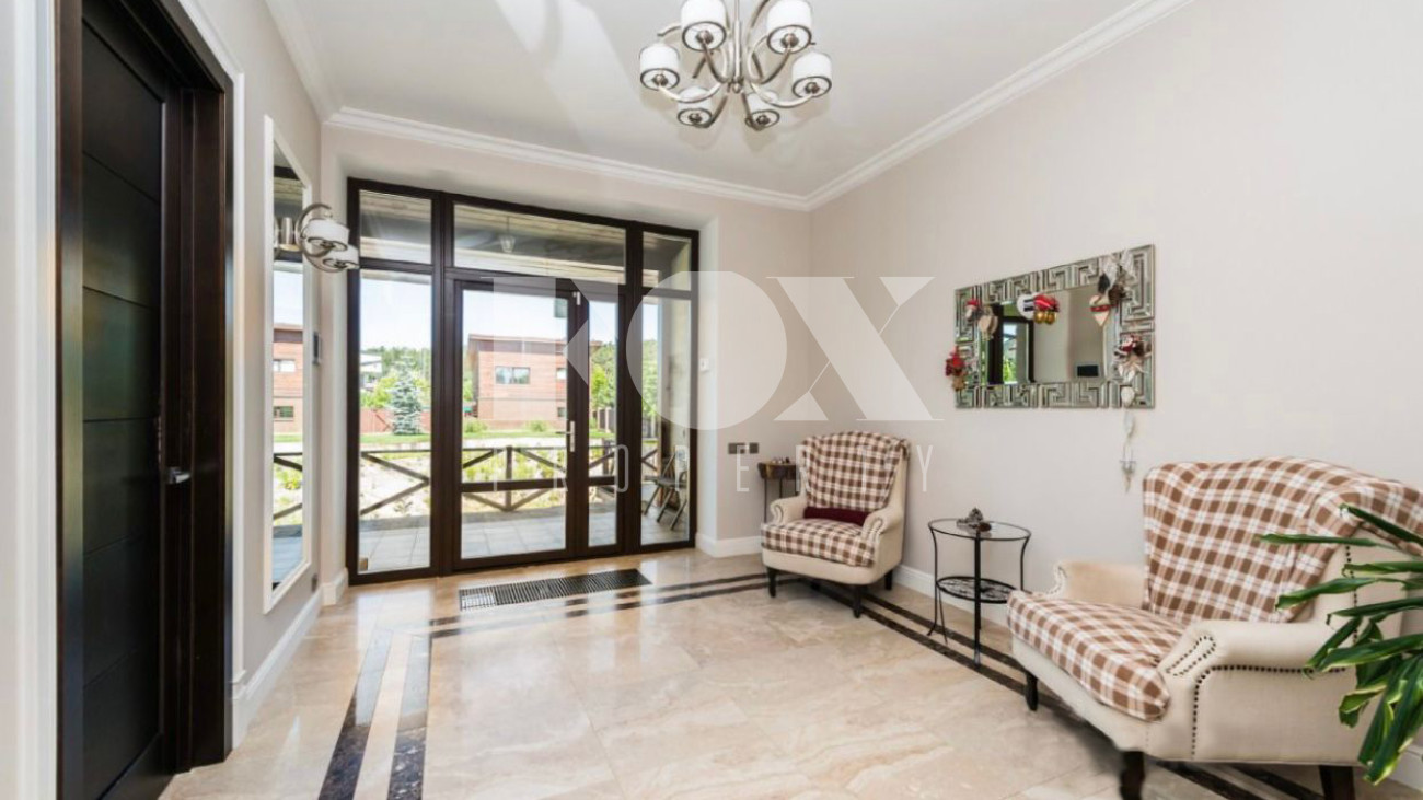 Дом площадью 325 кв.м на участке 21 сотка в охраняемом поселке с идеальной транспортной доступностью. На участке проведены ландшафтные работы, высажены кустарники и крупномеры, вымощены дорожки. На участке расположены гараж на 2 м/м, гостевой дом.