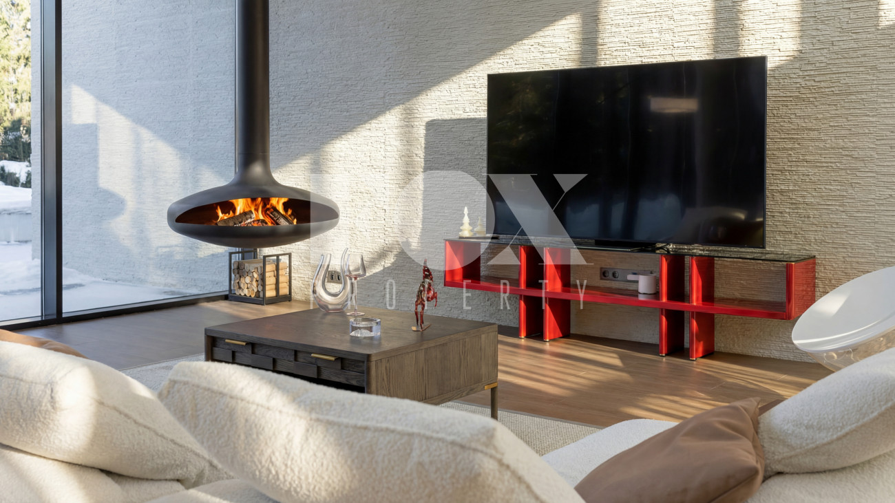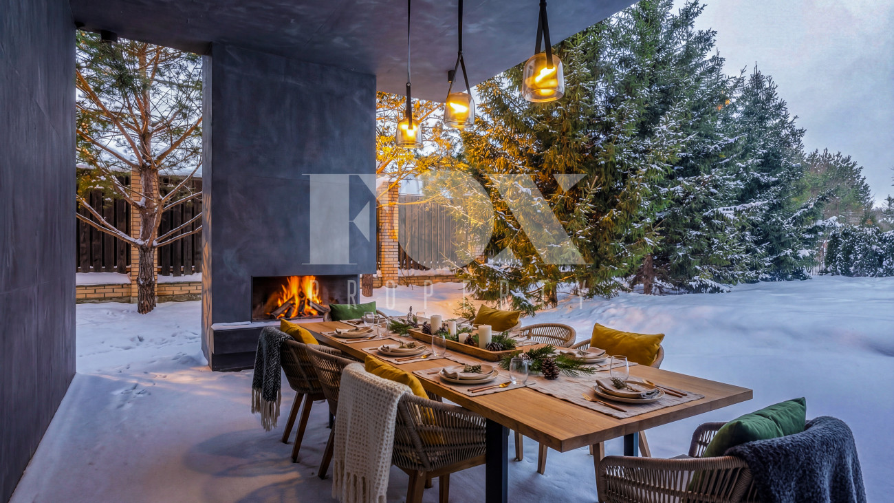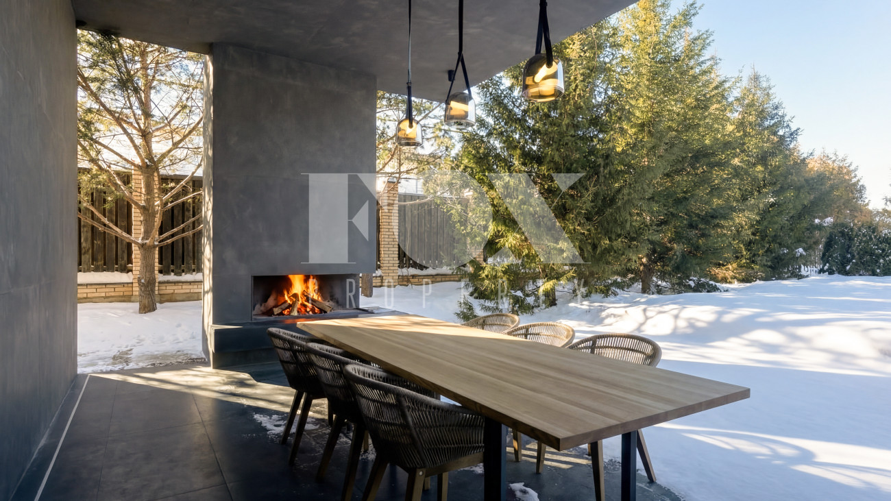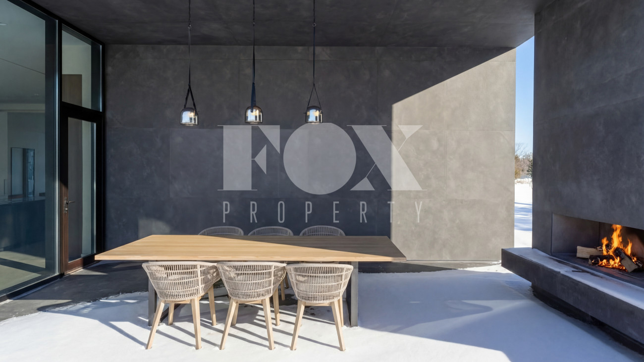 • Уникальная зона отдыха: Просторная терраса оборудована уличным камином и зоной барбекю — идеальное место для приемов в любое время года.