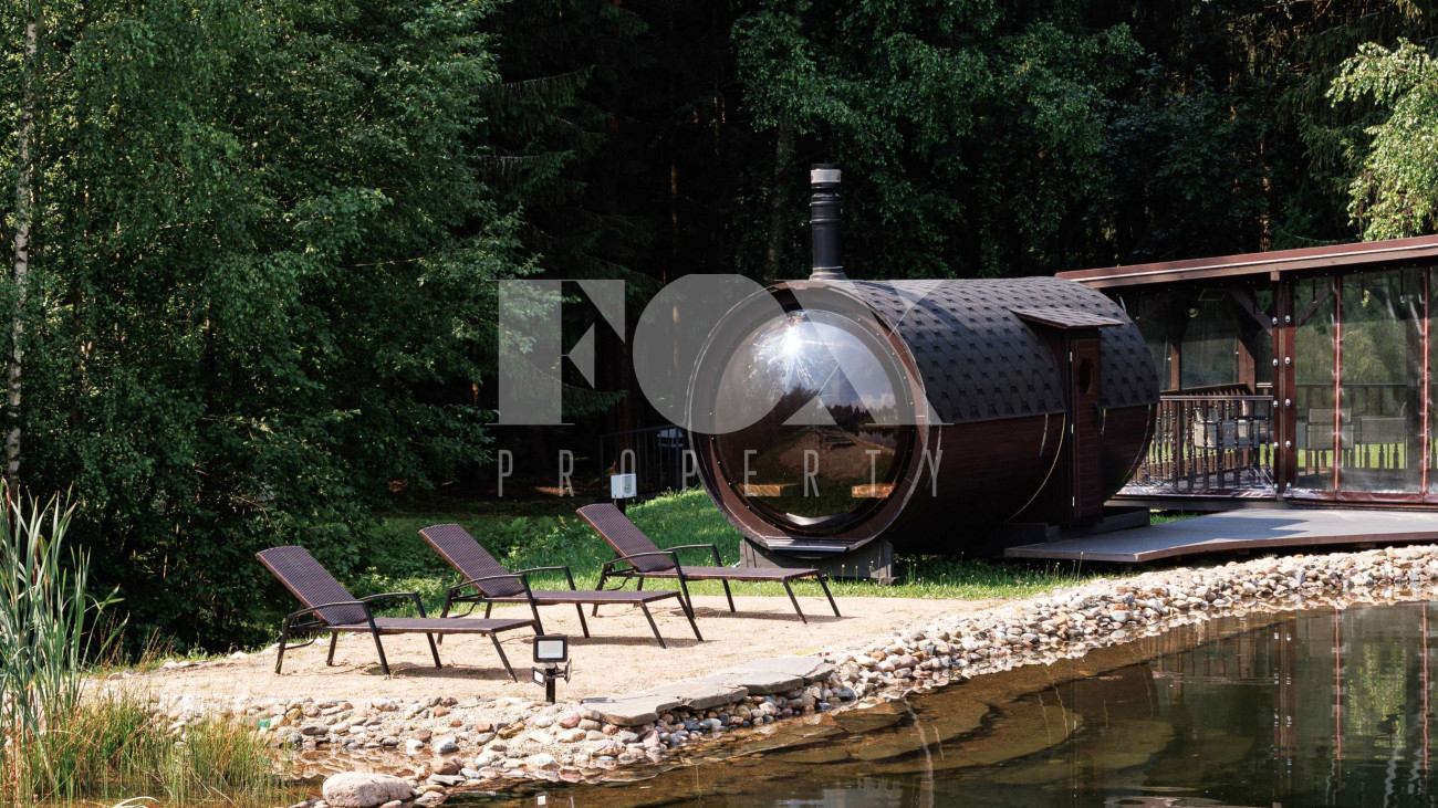 Резиденция площадью 750 кв.м на просторном участке охраняемом коттеджном поселке. Отдельно расположен гостевой дом площадью 250 кв.м и гараж 50 кв.м Все постройки на участке выполнены в едином архитектурном стиле. Это идеальное место для любителей морской тематики. Здесь же располагается SPA-комплекс с сауной и бассейном. Кроме того, на участке построена большая крытая беседка с барбекю. К каждой постройке ведут аккуратные хорошо освещенные дорожки, выложенные плиткой. Общая площадь прилегающей территории 108,7 соток, из них 76 соток в собственности, 33 соток леса в аренде. Участок с ландшафтным дизайном.