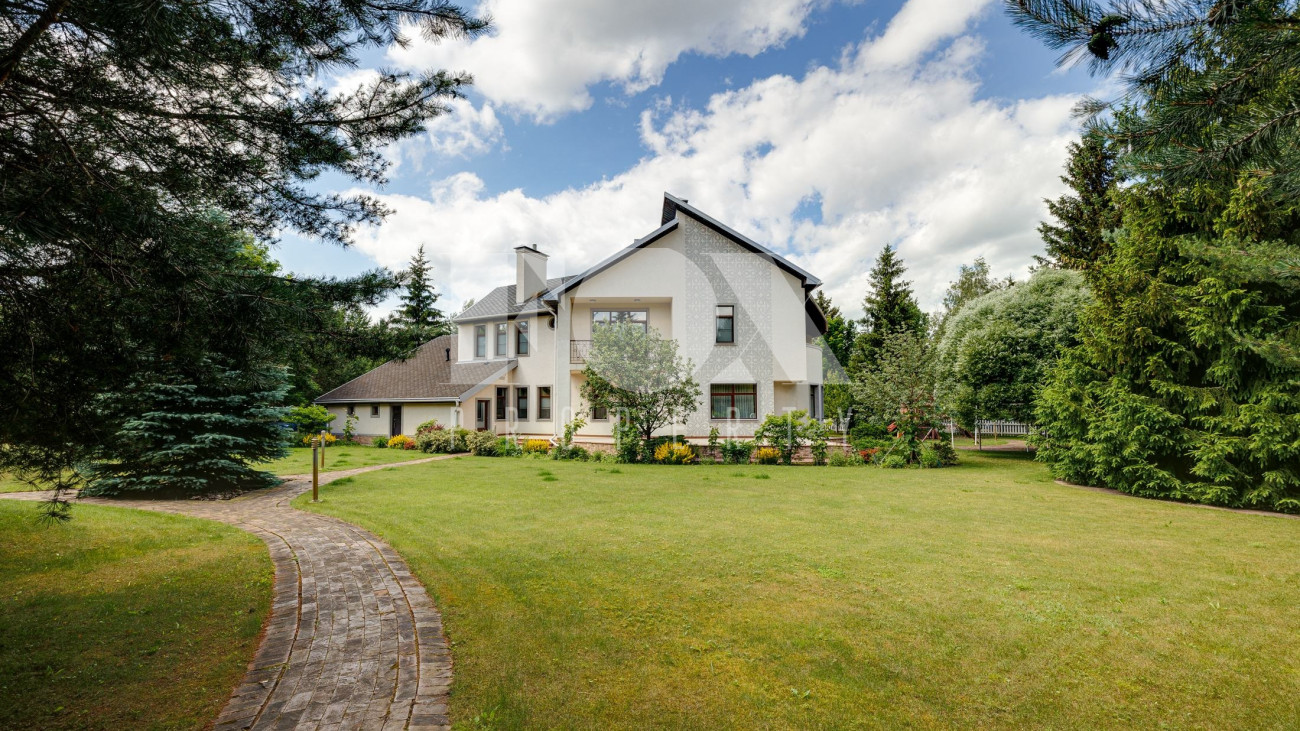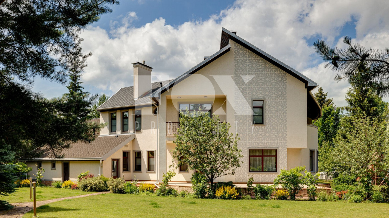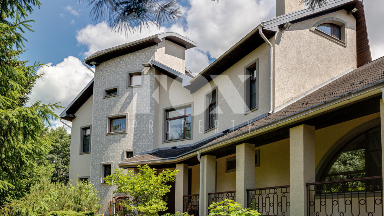 В доме выполнена отделка европейскими материалами. Планировкой предусмотрено: гостиная с камином, кухня-столовая с выходом на летнюю террасу, 5 спален, кабинет, гараж на 2 м/м, блок для персонала. На просторном и приватном участке 30 соток выполнен ландшафтный дизайн, освещение, дренаж и автополив, установлена зона-барбекю. Перед домом организована парковка на 2 м/м. В доме все центральные коммуникации, установлено центральное кондиционирование, генератор.