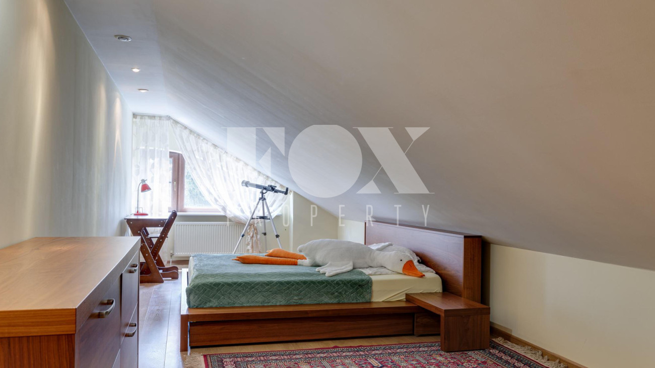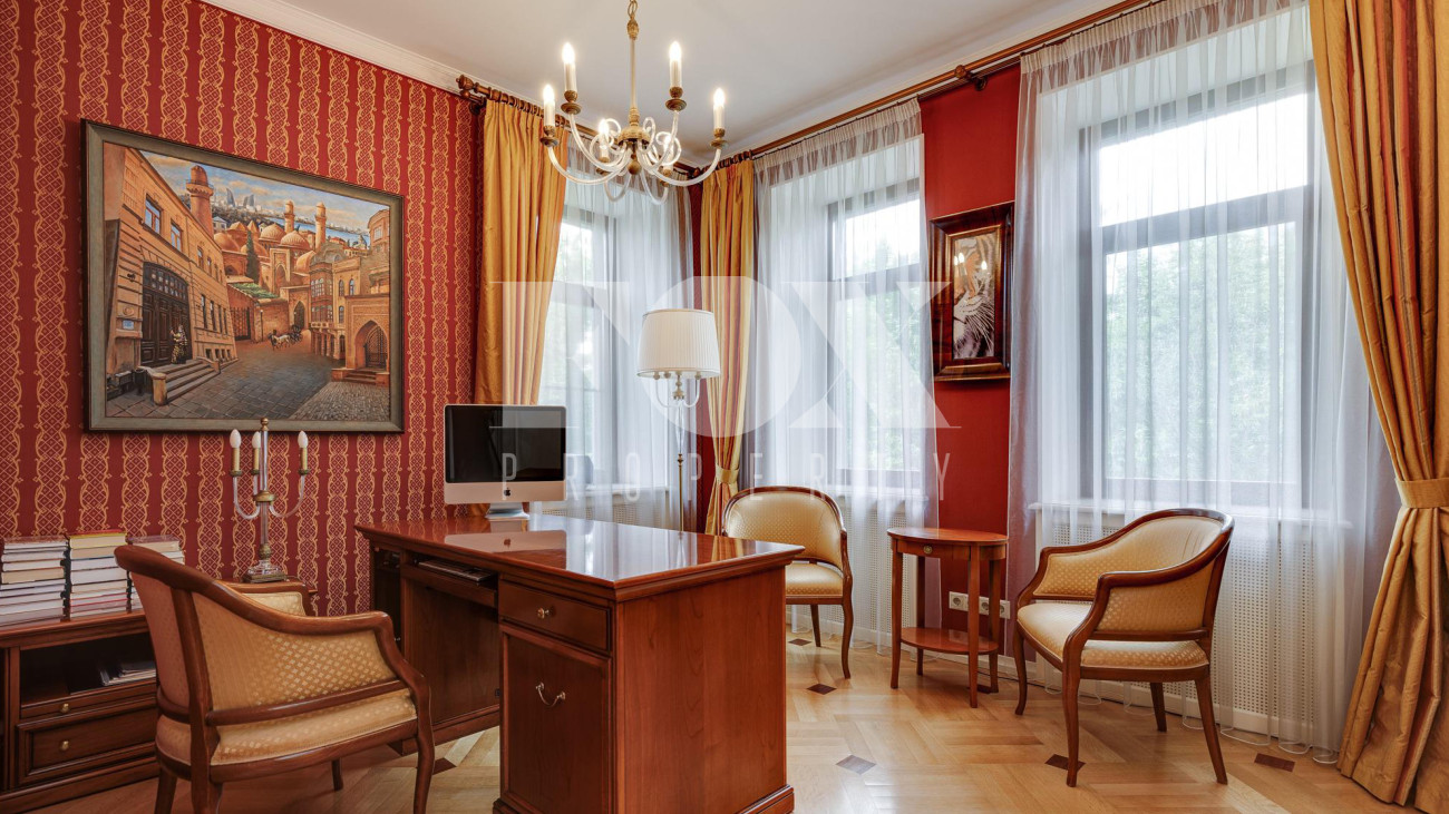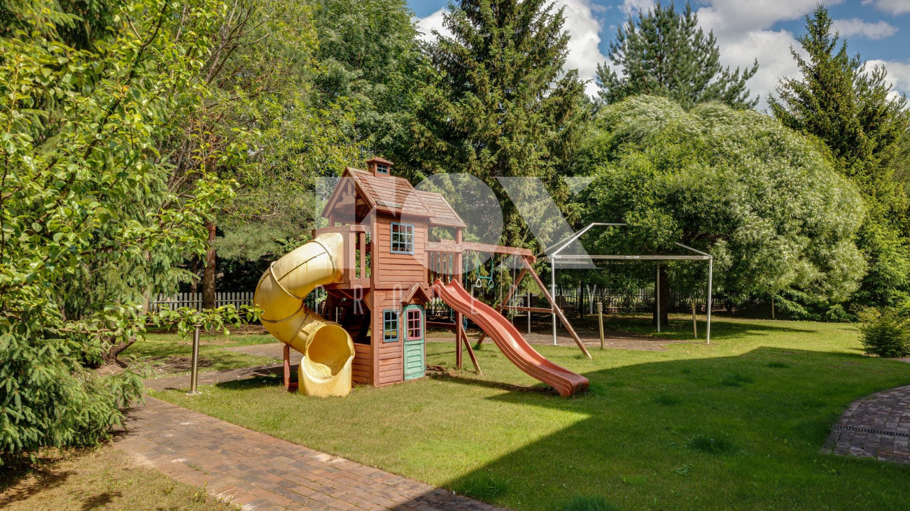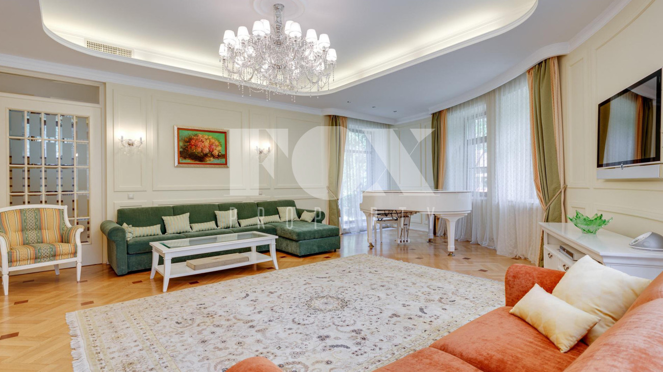 В доме выполнена отделка европейскими материалами. Планировкой предусмотрено: гостиная с камином, кухня-столовая с выходом на летнюю террасу, 5 спален, кабинет, гараж на 2 м/м, блок для персонала. На просторном и приватном участке 30 соток выполнен ландшафтный дизайн, освещение, дренаж и автополив, установлена зона-барбекю. Перед домом организована парковка на 2 м/м. В доме все центральные коммуникации, установлено центральное кондиционирование, генератор.