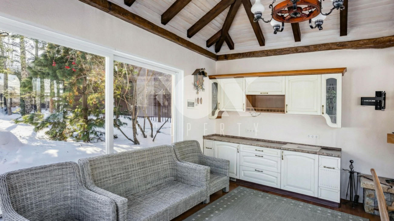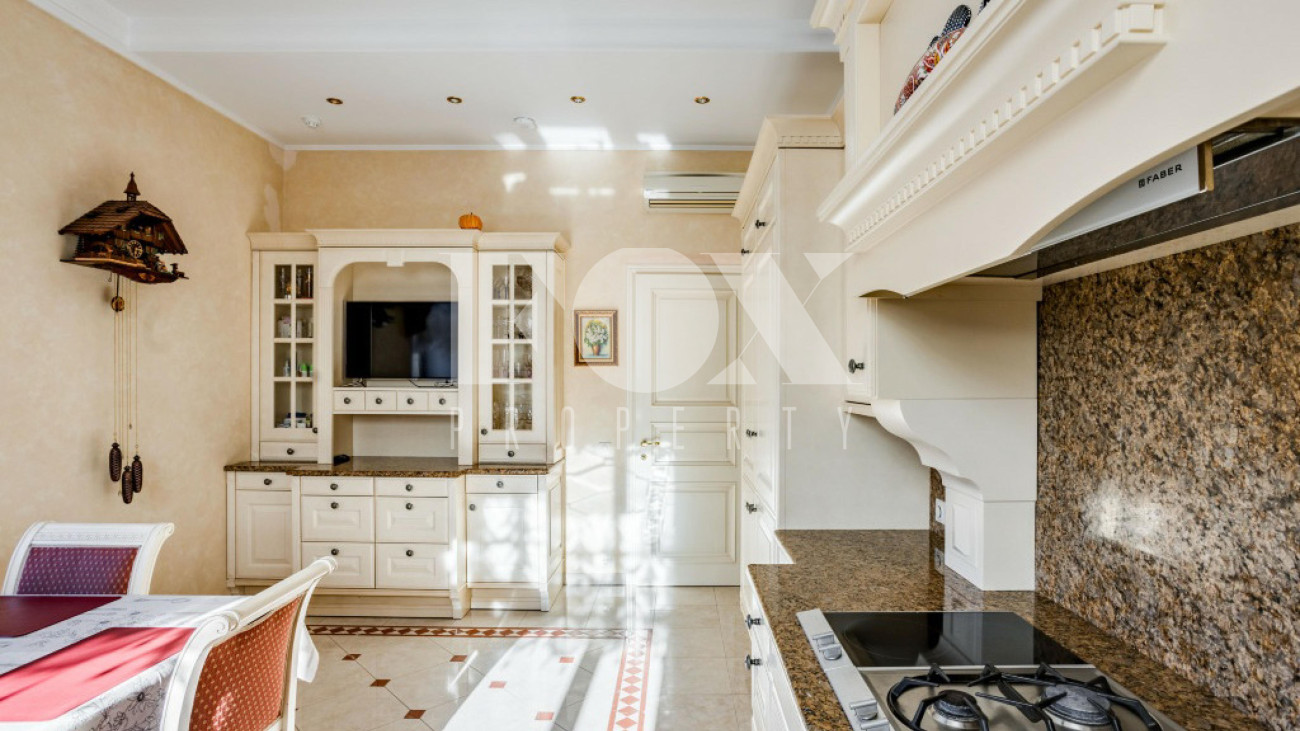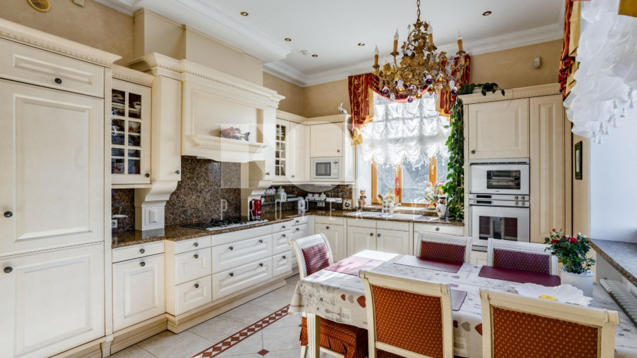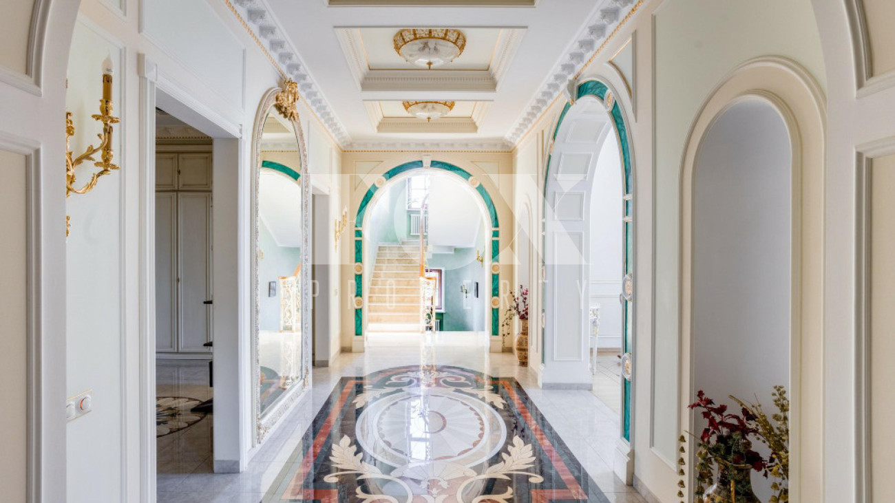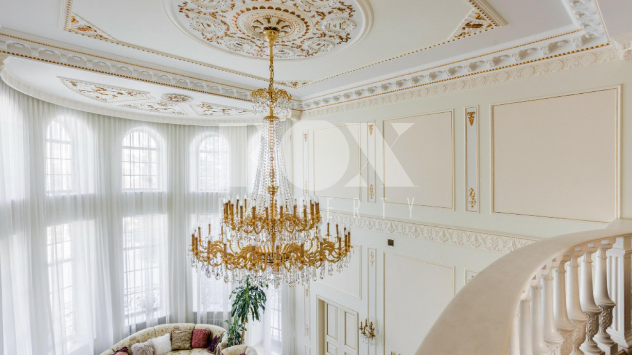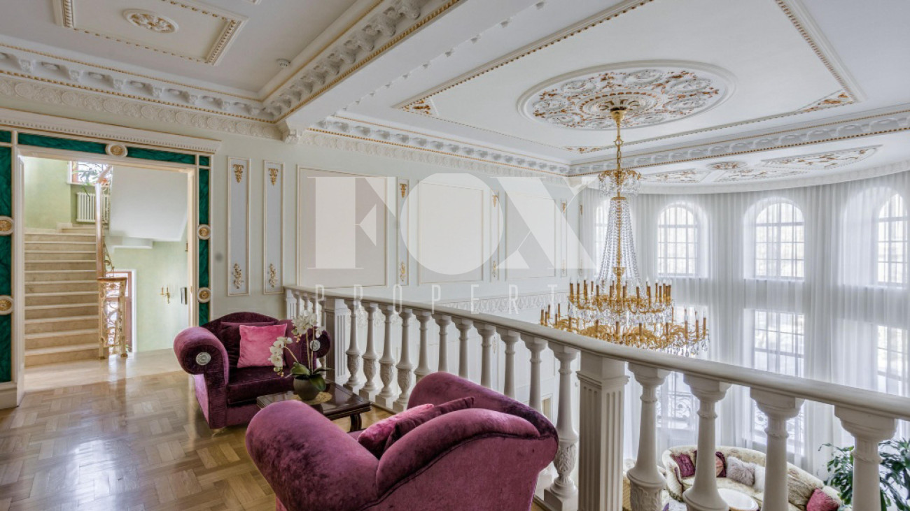 Классическое домовладение, продуманное до мельчайших деталей, расположено в элитном поселке Береста-1 в Мякинино, всего в 2 км от МКАД по Новорижскому шоссе. На просторном участке 30 соток возведен величественный особняк площадью 776 м², представляющий собой готовое решение под ключ с мебелью и премиальной техникой.