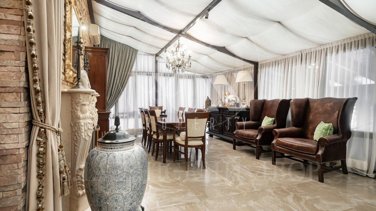 Площадь земельного участка 18 соток Жилой дом 380 м2 с примыкающим патио 80 м2 (реновация 2025) На участке: 200 деревьев крупномеров, дорожки, уличное освещение, скамейки, шезлонги. Дом персонала с кухней и с/у Строжка охраны с видеонаблюдением Гараж на 2 больших авто, с чердаком и мансардными окнами Уличный с/у, Беседка, Зона, Уличный СПА «Sundance» (США), шатер Автополив, Генератор (ведущие производители) Дом: Входная группа гранит, камень, планкен лиственницы
