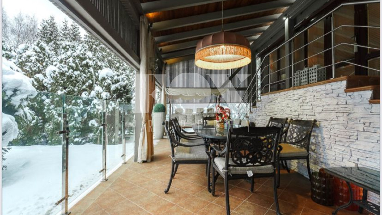 Площадь земельного участка 18 соток Жилой дом 380 м2 с примыкающим патио 80 м2 (реновация 2025) На участке: 200 деревьев крупномеров, дорожки, уличное освещение, скамейки, шезлонги.