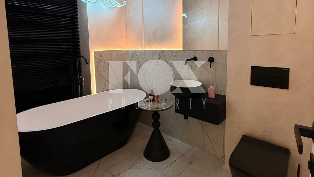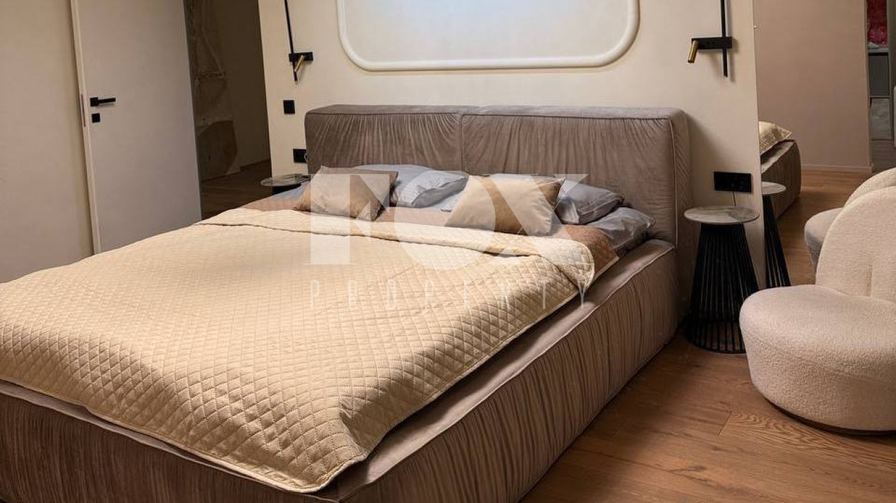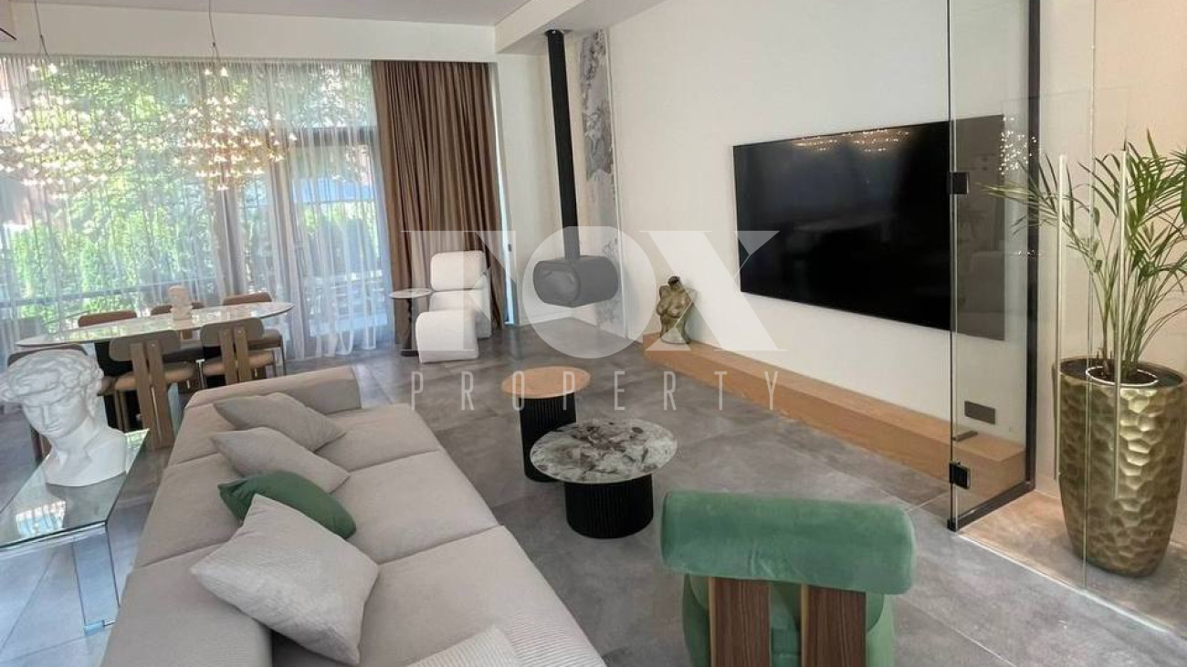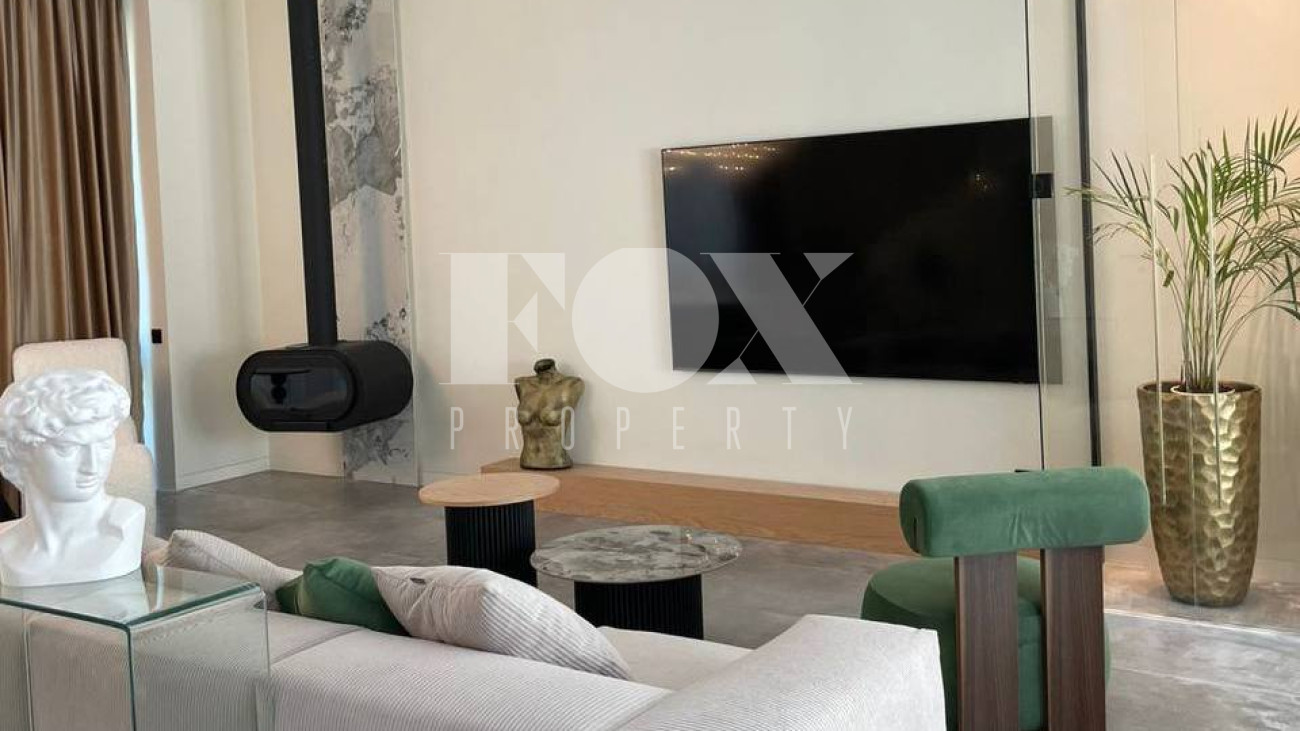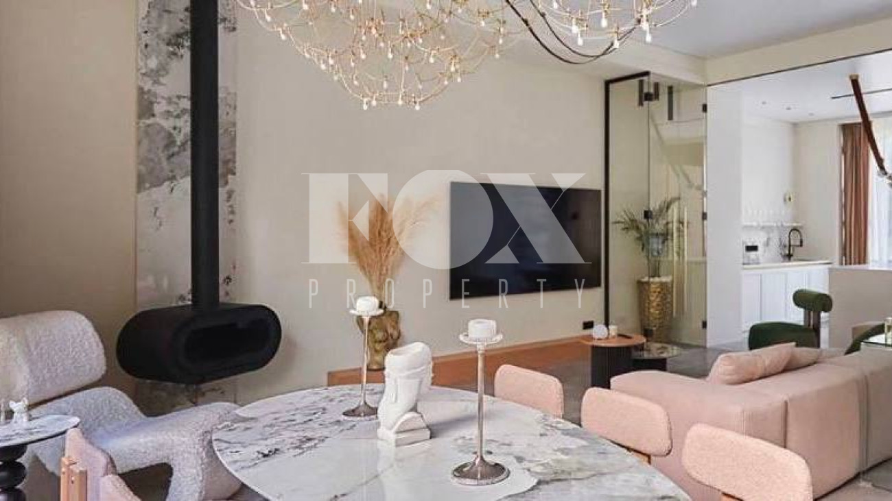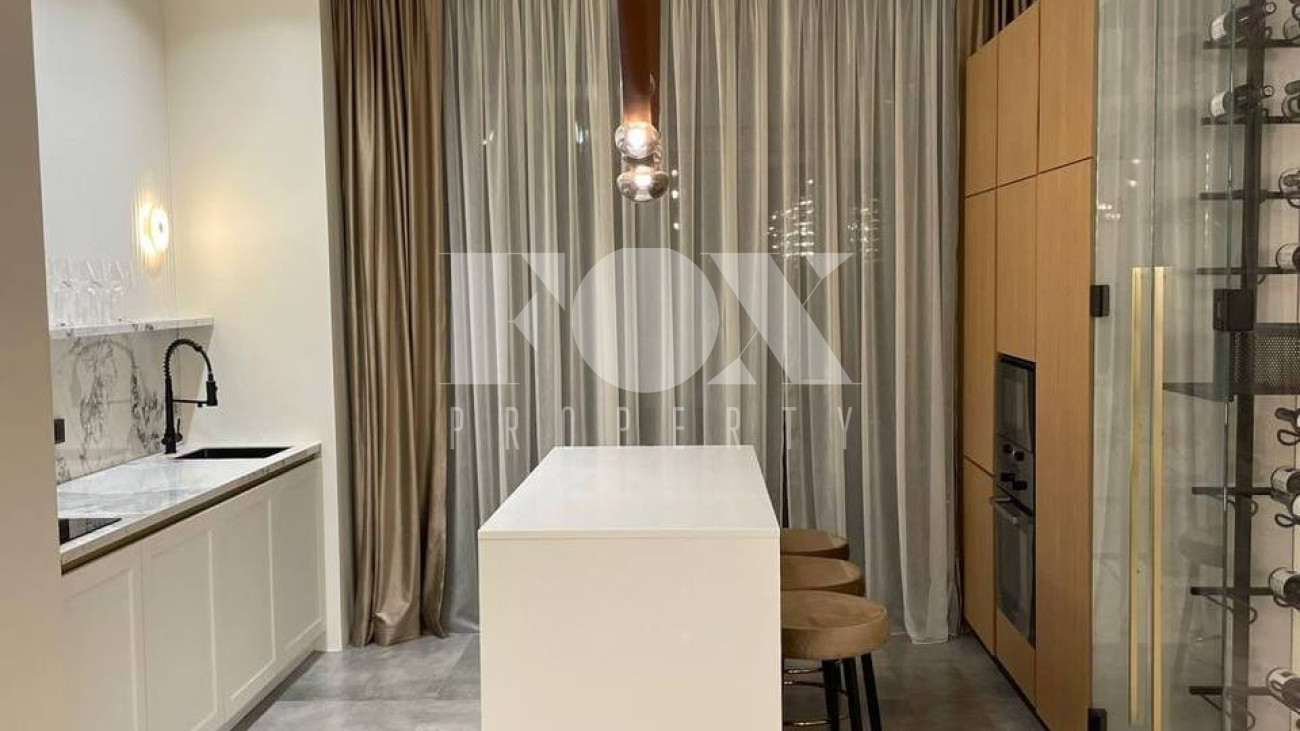 При ремонте использовались премиальные материалы: паркет, итальянский керамогранит, канальное кондиционирование, внутрипольные конвекторы, теплые полы. Техника Kuppersbusch, плазменный телевизор Samsung 85 дюймов.
