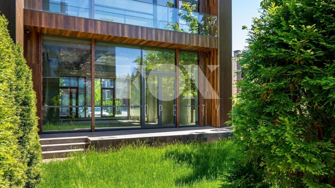Таунхаус остеклен по всей ширине и высоте фасадов, что, в сочетании с высокими потолками, делает дом очень светлым и создаёт ощущение единения с природой.