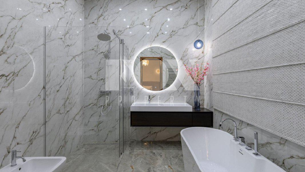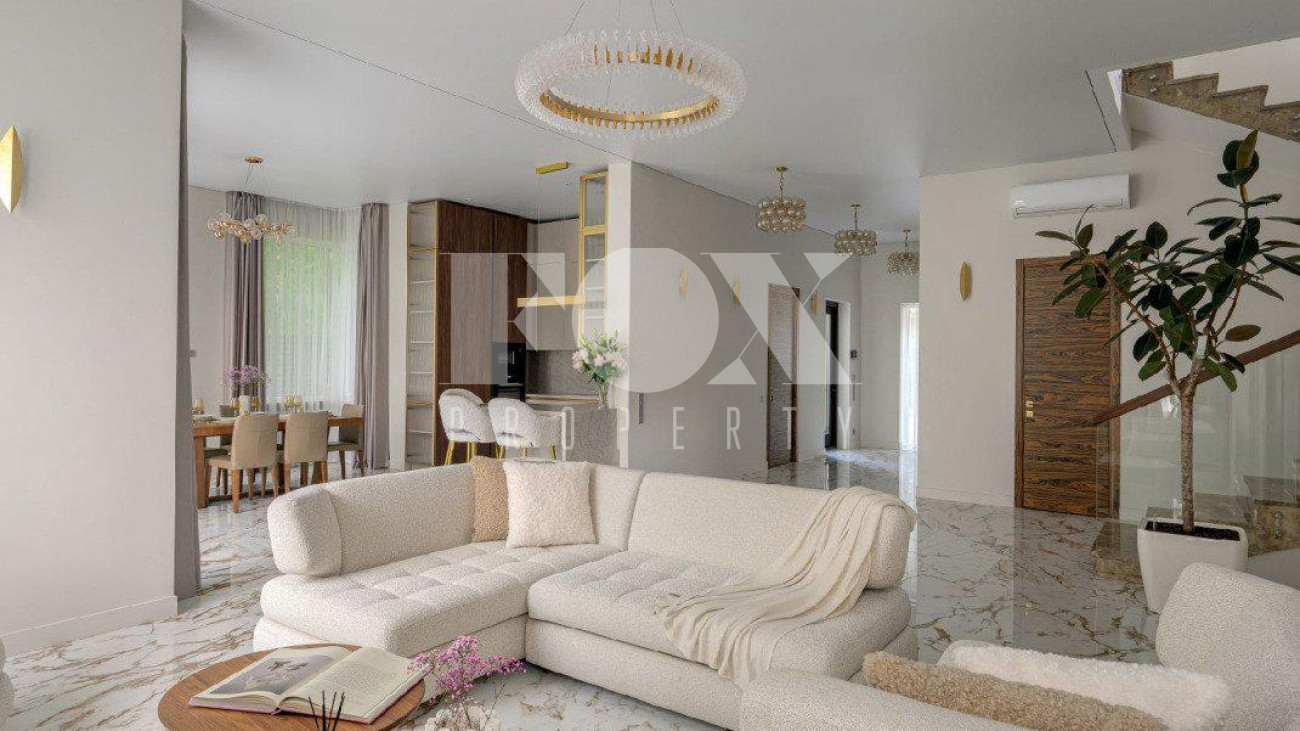 Новый дом в живописном месте. Современный стиль, большая площадь остекления, продуманная планировка. Удобная локация, быстрый выезд на Рублево-Успенское или Новорижское шоссе. Рядом музей-усадьба Архангельское. Фасад дома облицован натуральным камнем, цоколь из гранита. Въездная группа, терраса и дорожки вымощены из брусчатки. Дом полностью меблирован, отделка в доме выполнена с использованием высококачественных материалов - ценных пород дерева, шпона, натурального камня, мрамора, текстиль премиального качества, уровневое освещение, встроенная мебель индивидуального изготовления. Установлена система вентиляции с климат-контролем в каждом помещении. На участке располагается уютная беседка с зоной отдыха, а также отдельно стоящий гостевой дом с двумя спальнями и кухней.
