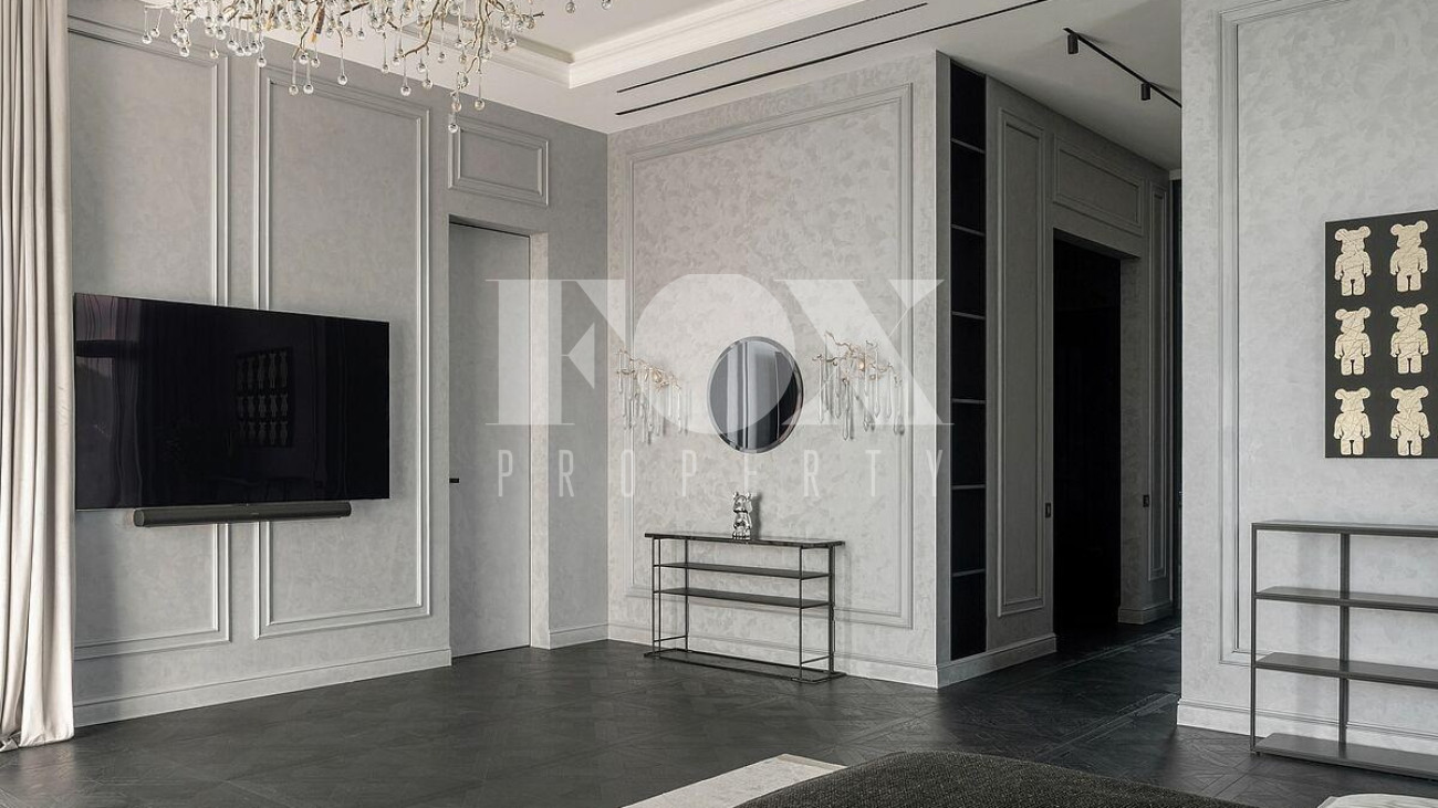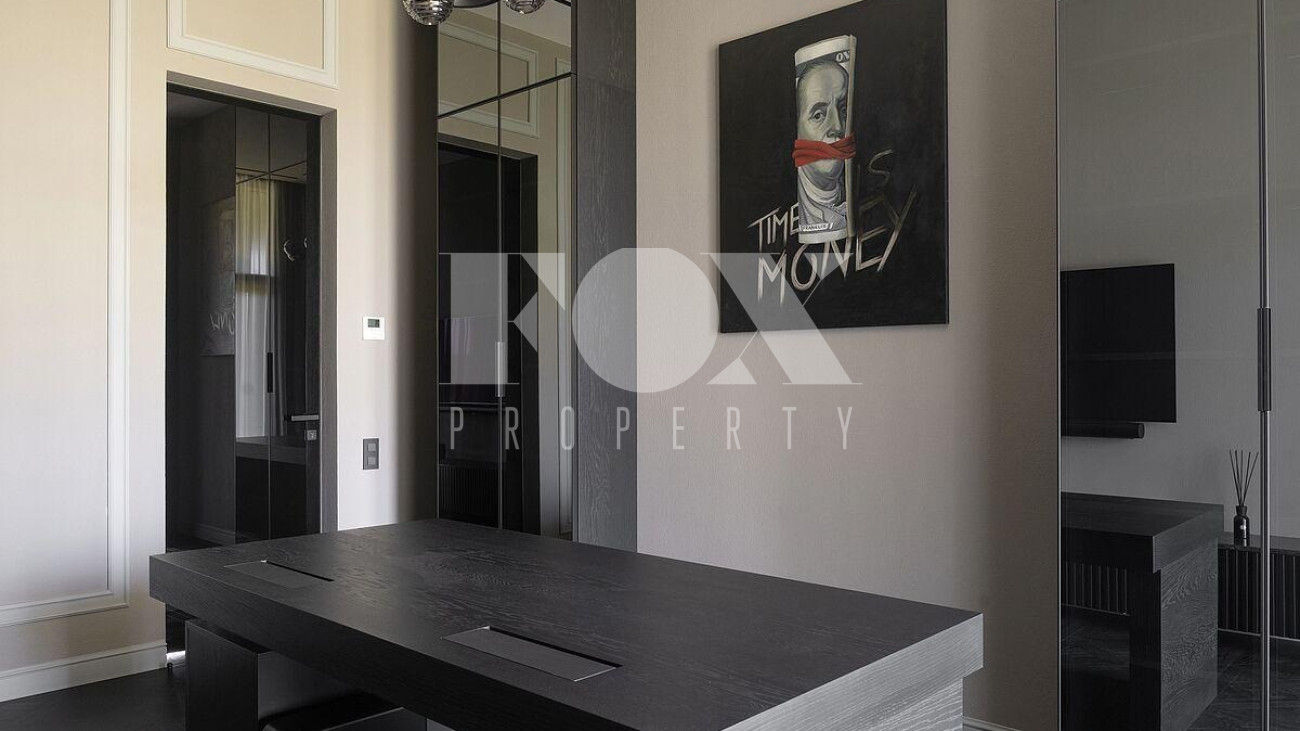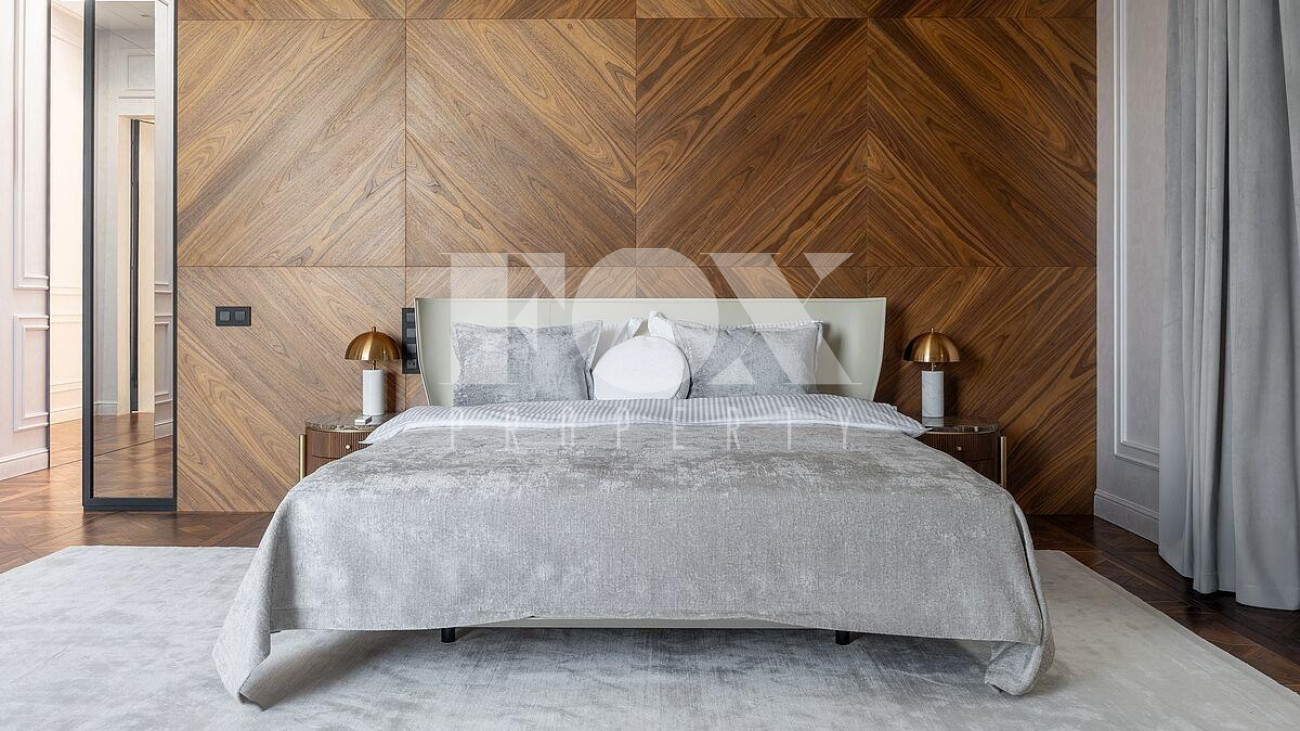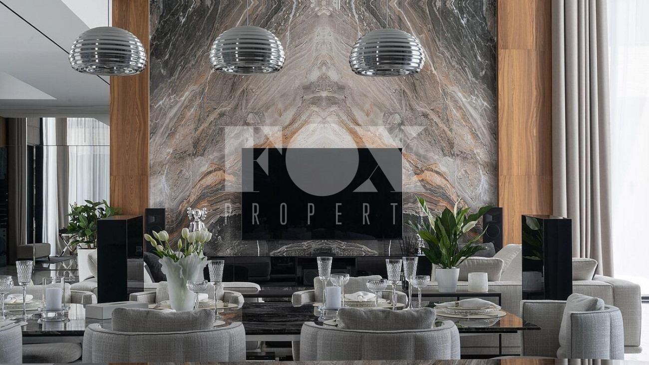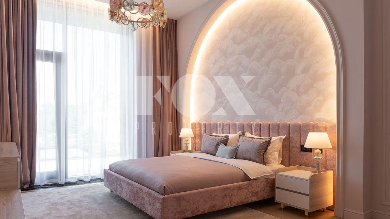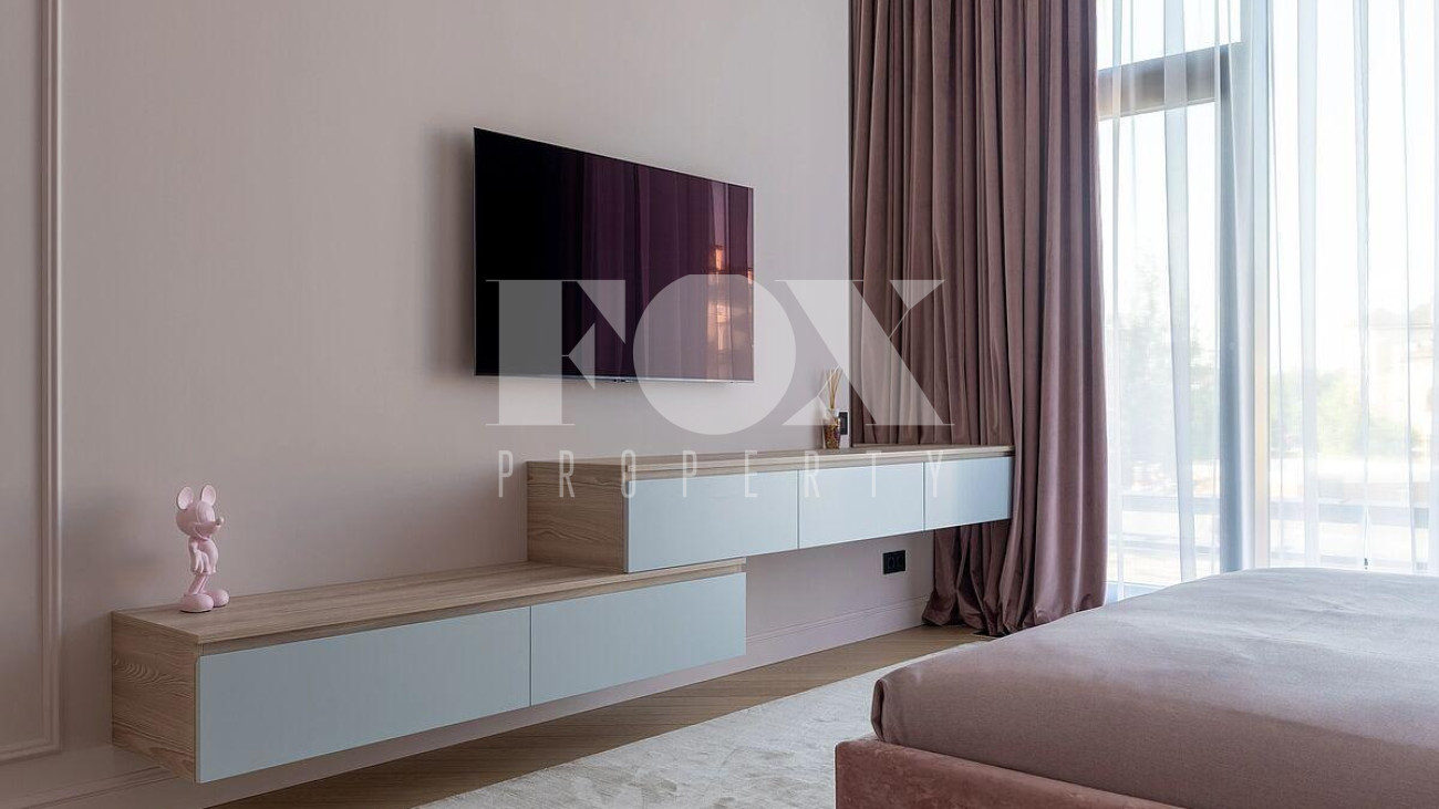 Архитектурный стиль – геометрический хай- тек, отделка фасадов выполнена в бело- коричневых тонах. Главная изюминка дома заключается в оригинальной ориентации боковых стен: у основания они составляют острый угол с отмосткой. В здании 3 этажа, один из них – цокольный. Общая площадь дома составляет 1200 кв. м: идеально подходит для большой семьи ценителей современной архитектуры. Год постройки - 2024. Планировка предусматривает наличие пяти спален; просторной гостиной со вторым светом и камином; бани; крытого бассейна; санузлов, гардеробных; помещения для персонала; просторной кухни-столовой; кабинета и SPA. Дом оборудован лифтом. В цокольном этаже есть спортивный зал с тренажёрами. Панорамное остекление обеспечивает обилие дневного света в помещениях и даёт возможность любоваться живописным ландшафтом элитного посёлка. В тёплое время года для созерцания красоты больше подойдёт просторная терраса. К дому примыкает капитальный гараж. Дом готов к заселению: установлена сантехника, выполнена разводка внутренних инженерных сетей, подключённых к центральным коммуникациям, заведены интернет, телевидение, телефония. Для внутренней отделки использовались материалы класса Deluxe. Интерьер выдержан в лучших традициях хай-тек: минимум декора, максимум функциональности. Главным его украшением служит дорогая добротная мебель от известных зарубежных производителей. Дом построен на участке площадью 16,67 соток с продуманным ландшафтным дизайном, в тихом месте коттеджного посёлка «Гринфилд»