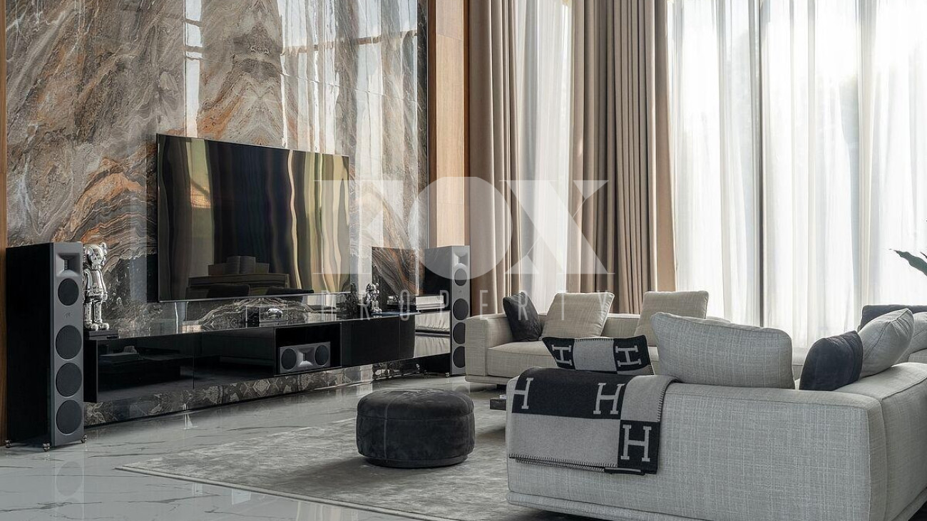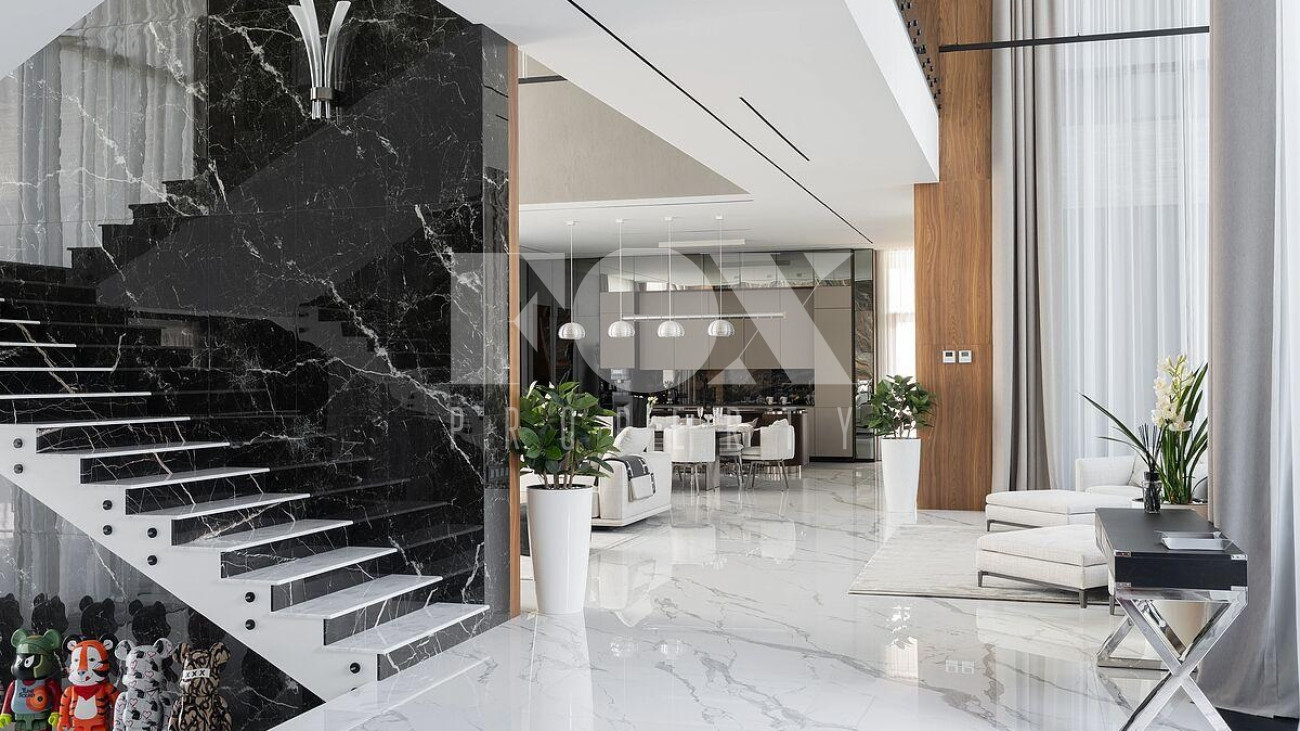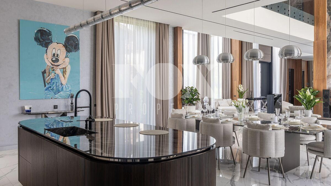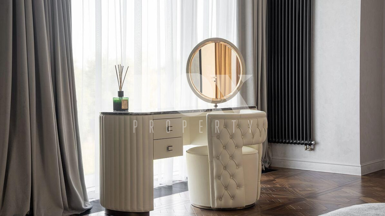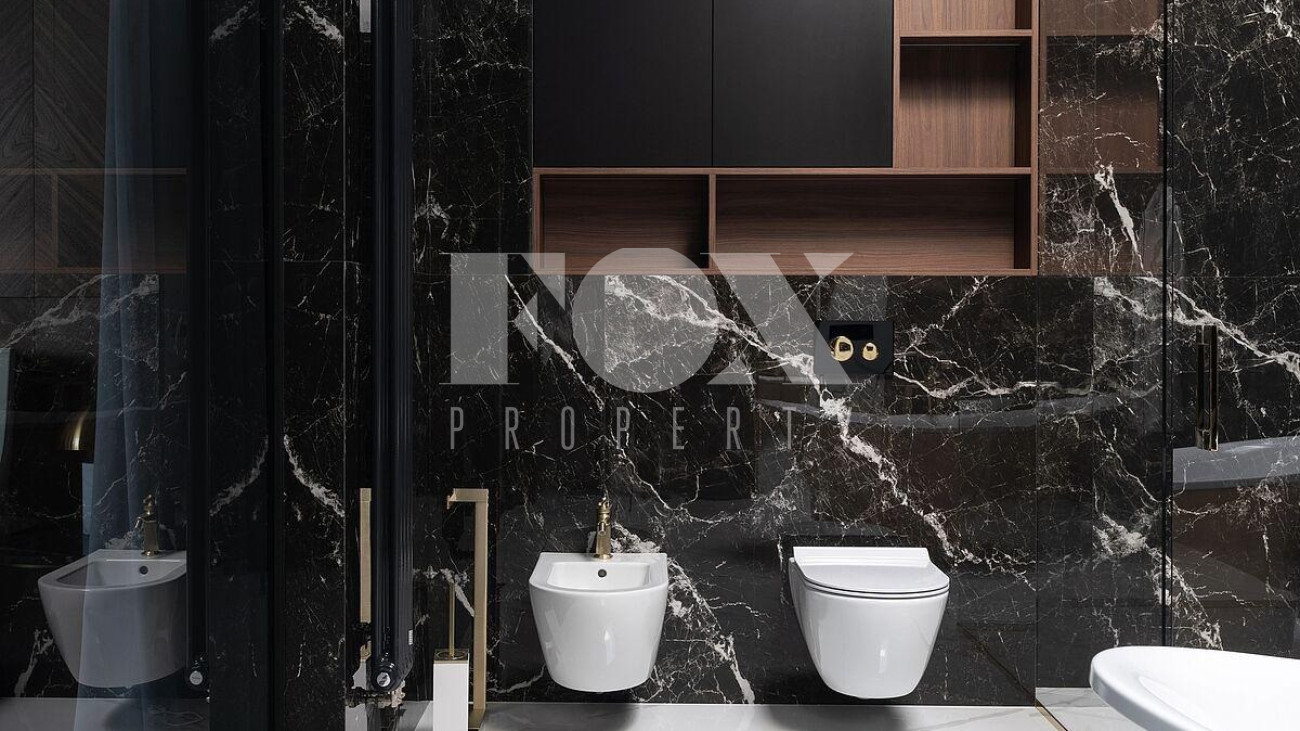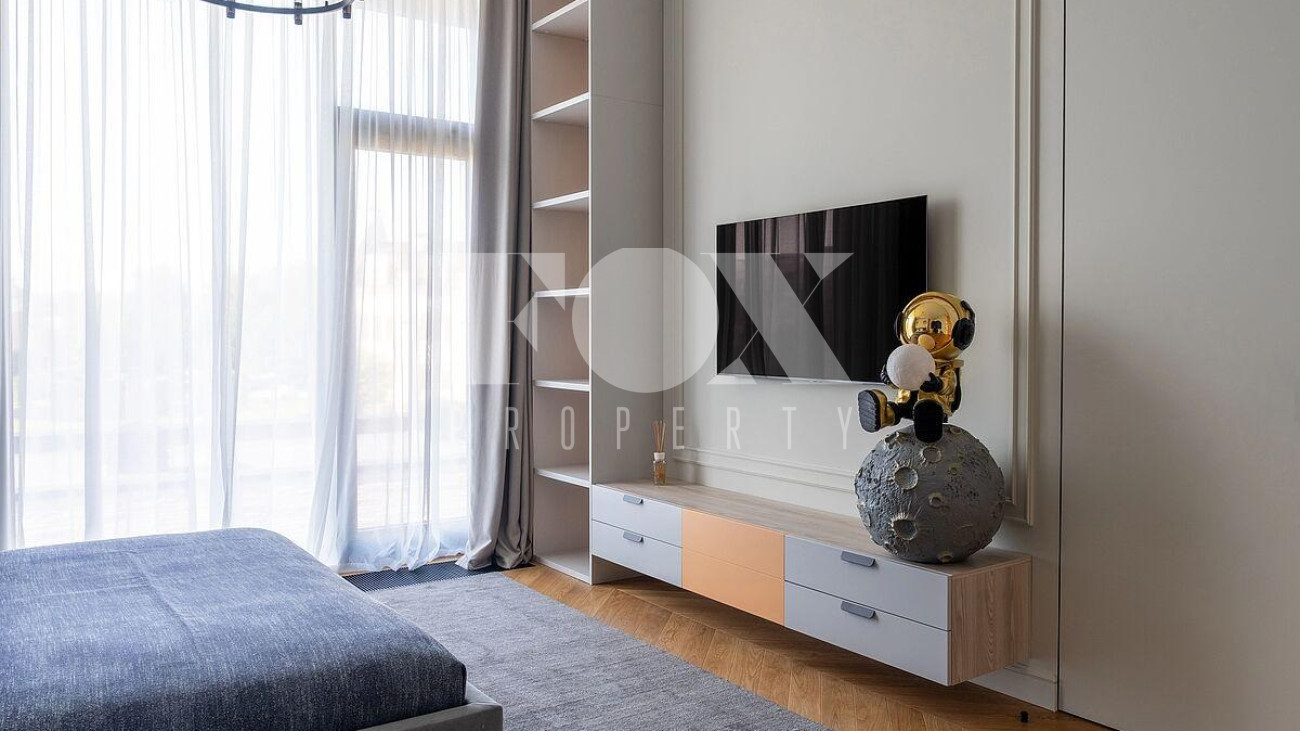 Архитектурный стиль – геометрический хай- тек, отделка фасадов выполнена в бело- коричневых тонах. Главная изюминка дома заключается в оригинальной ориентации боковых стен: у основания они составляют острый угол с отмосткой. В здании 3 этажа, один из них – цокольный. Общая площадь дома составляет 1200 кв. м: идеально подходит для большой семьи ценителей современной архитектуры. Год постройки - 2024. Планировка предусматривает наличие пяти спален; просторной гостиной со вторым светом и камином; бани; крытого бассейна; санузлов, гардеробных; помещения для персонала; просторной кухни-столовой; кабинета и SPA. Дом оборудован лифтом. В цокольном этаже есть спортивный зал с тренажёрами. Панорамное остекление обеспечивает обилие дневного света в помещениях и даёт возможность любоваться живописным ландшафтом элитного посёлка. В тёплое время года для созерцания красоты больше подойдёт просторная терраса. К дому примыкает капитальный гараж. Дом готов к заселению: установлена сантехника, выполнена разводка внутренних инженерных сетей, подключённых к центральным коммуникациям, заведены интернет, телевидение, телефония. Для внутренней отделки использовались материалы класса Deluxe. Интерьер выдержан в лучших традициях хай-тек: минимум декора, максимум функциональности. Главным его украшением служит дорогая добротная мебель от известных зарубежных производителей. Дом построен на участке площадью 16,67 соток с продуманным ландшафтным дизайном, в тихом месте коттеджного посёлка «Гринфилд»