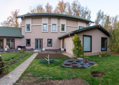 На участке детская площадка с батутом, гараж на 2 м/м, парковка на 3 м/м, газовый гриль, автополив, мастерская, велосипедно- колясочная.