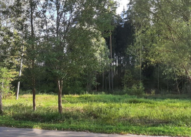 Солнечный ровный просторный участок в окружении зелени: молодые сосны, ели, берёзы, взрослые туи. Угловой, позволяет организовать 2 въезда.