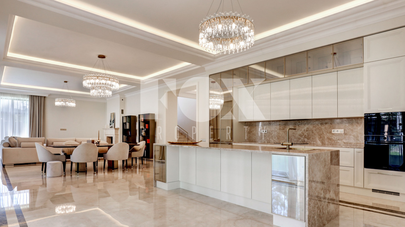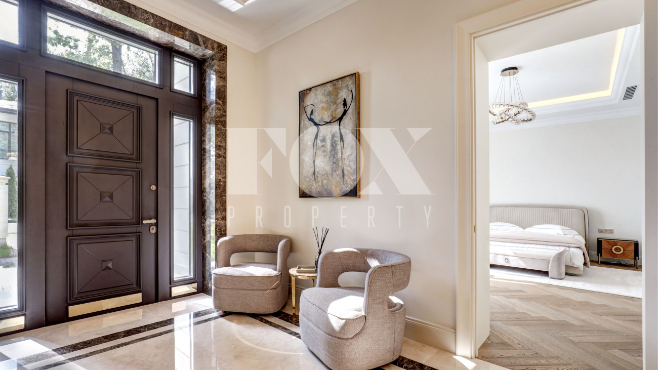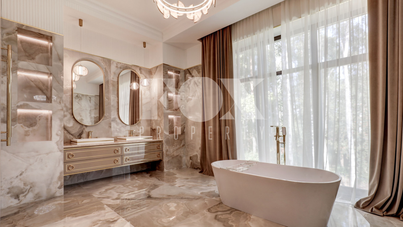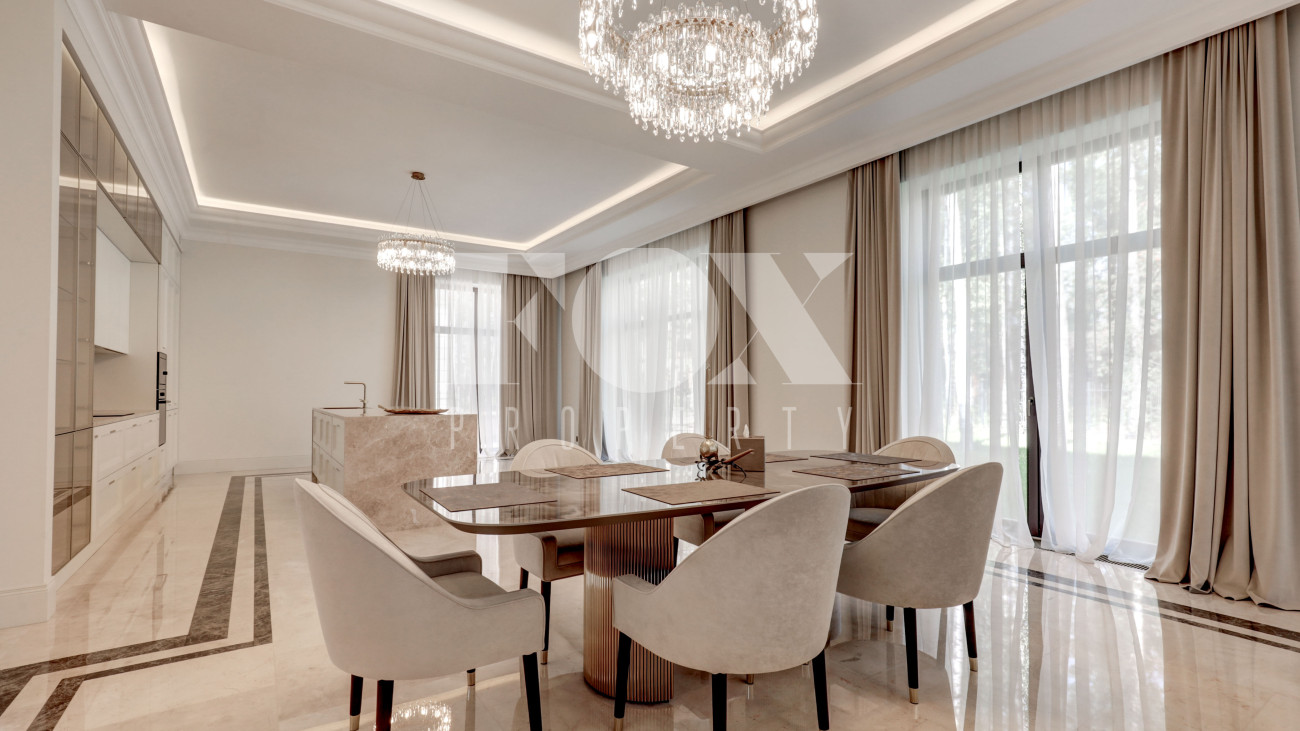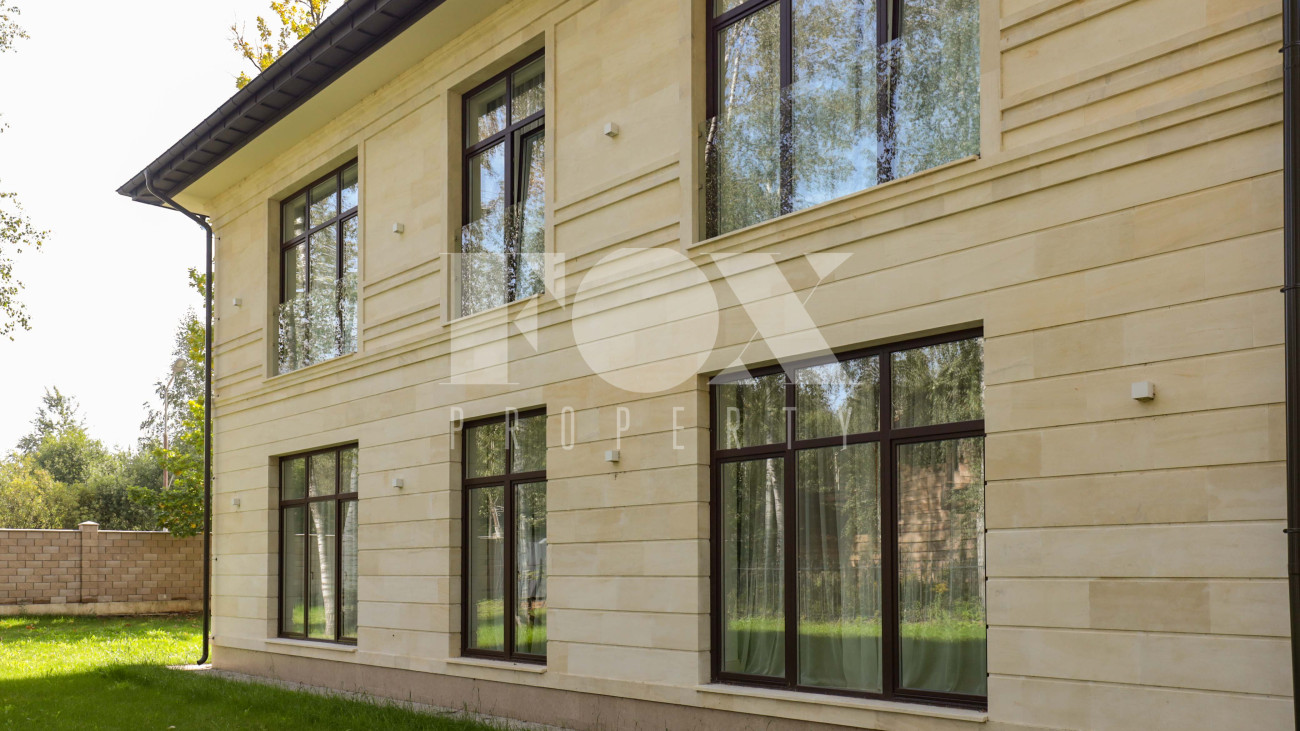 Новый кирпичный дом, 2025 года постройки, площадью 440 кв.м., на шикарном лесном участке 13 соток. Дорогой дизайнерский ремонт. В доме 5 спален с су и гардеробными, полы - мрамор с подогревом, стены венецианская штукатурка, современная кухня с бытовой техникой и островом, панорамное остекление, дизайнерская мебель.