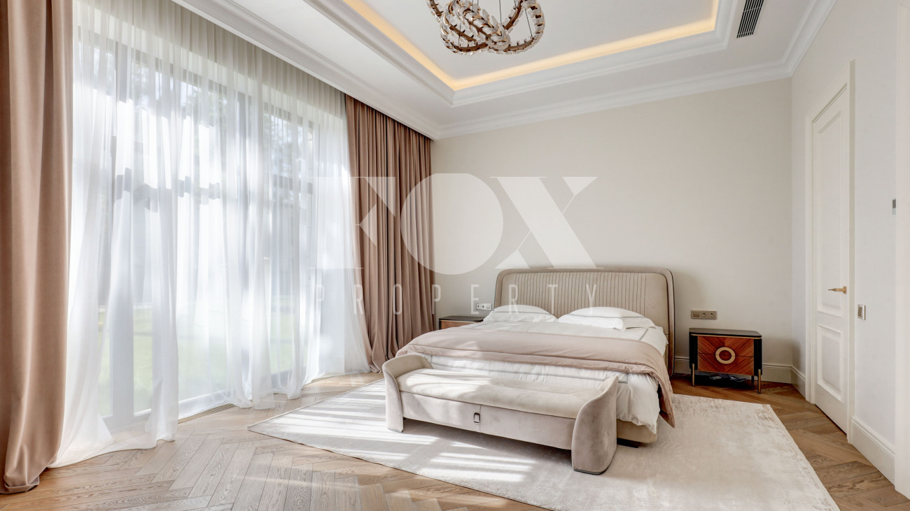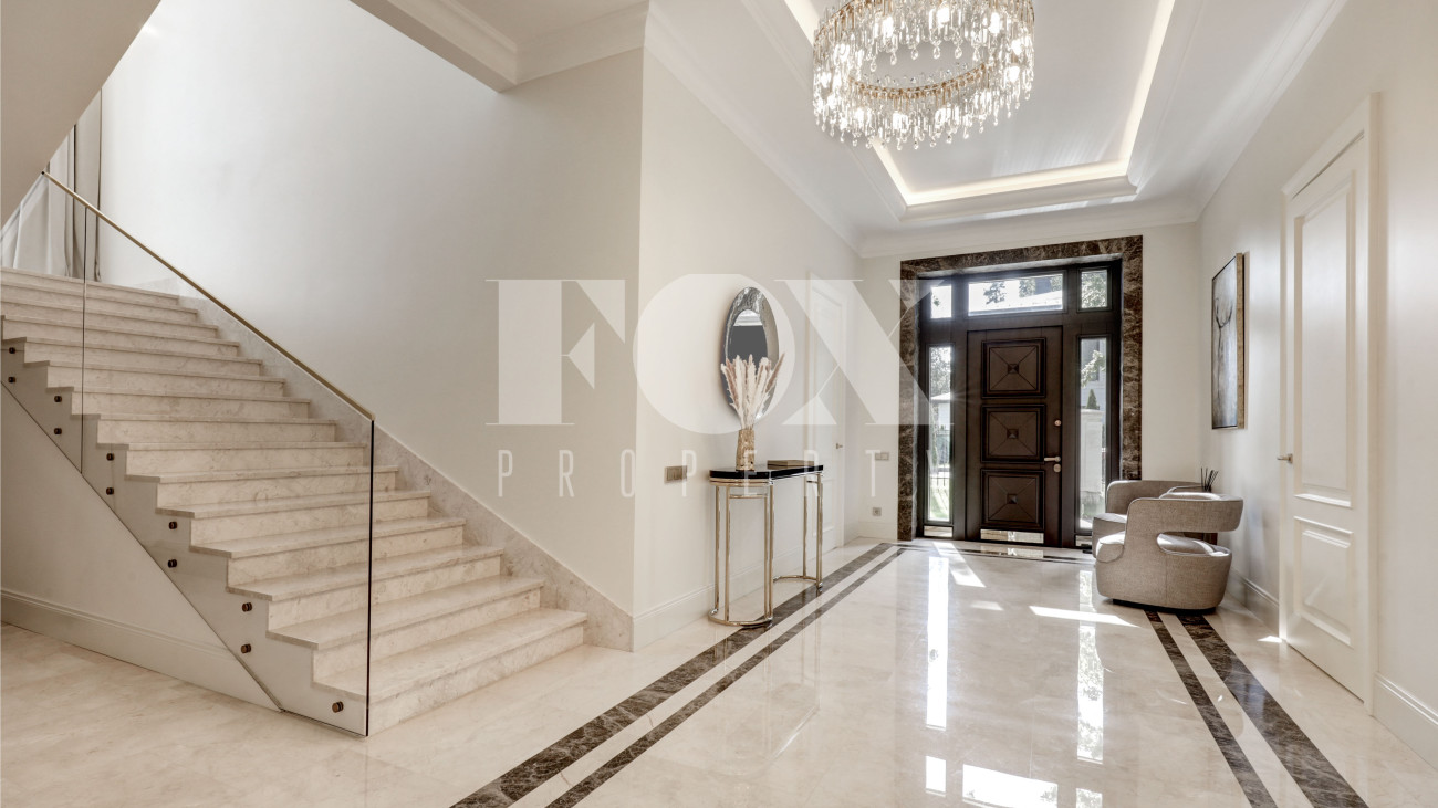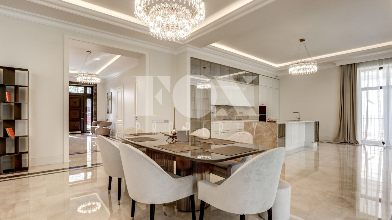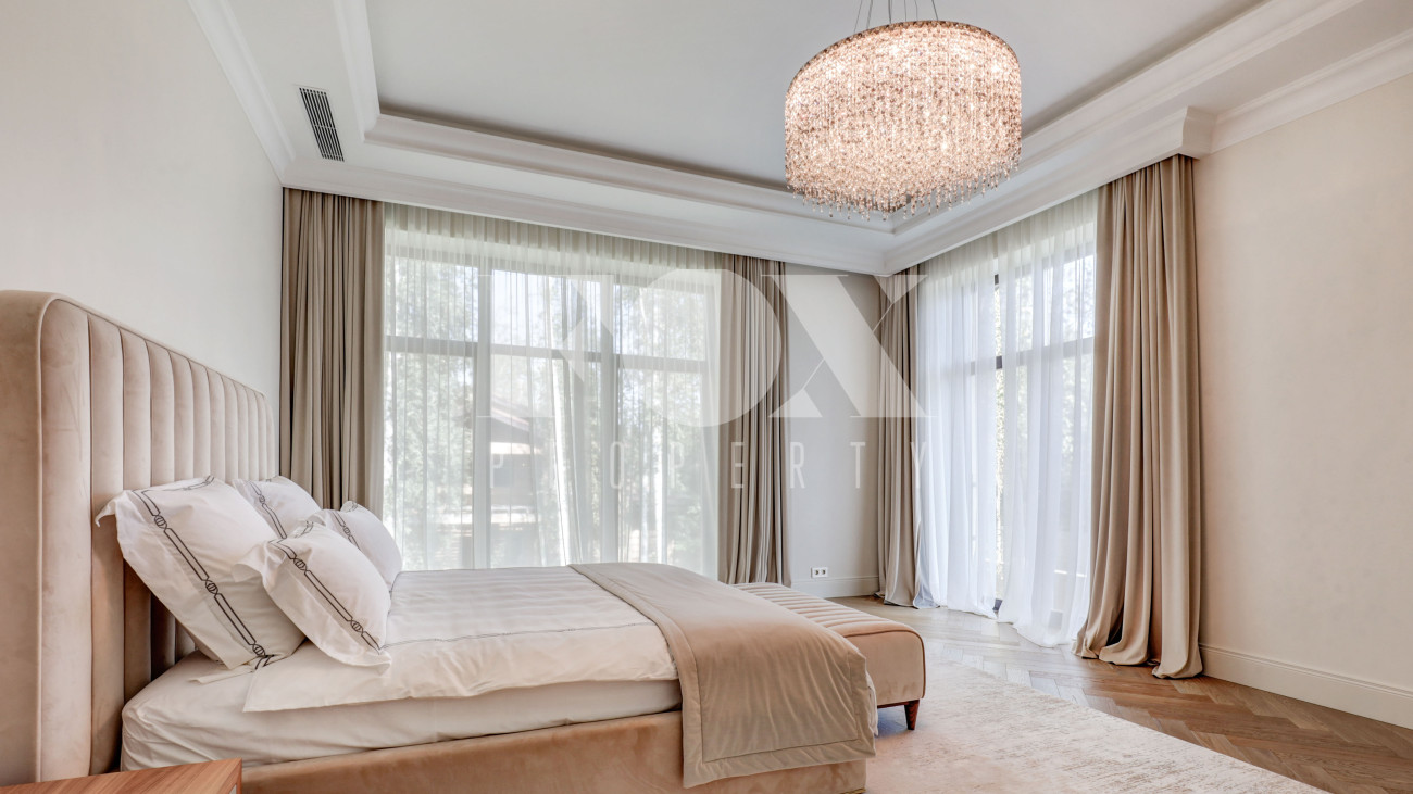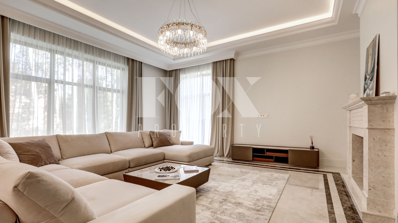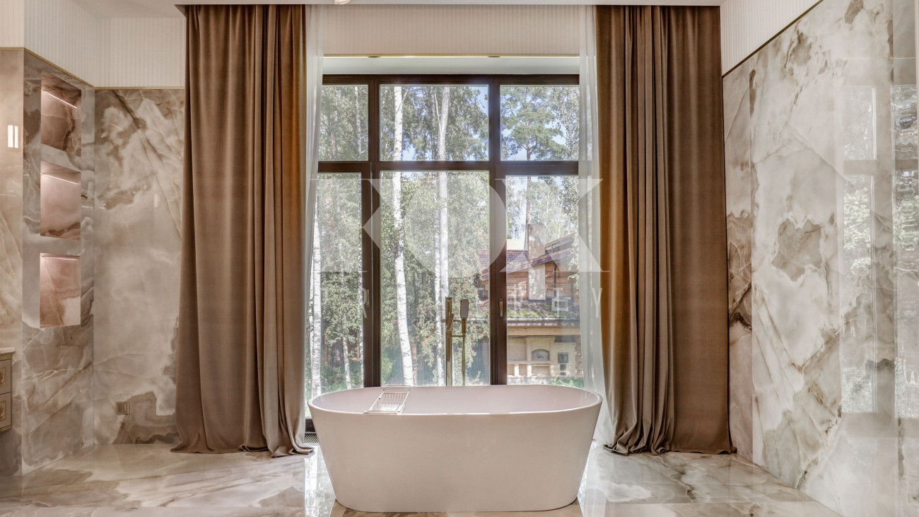 Новый кирпичный дом, 2025 года постройки, площадью 440 кв.м., на шикарном лесном участке 13 соток. Дорогой дизайнерский ремонт. В доме 5 спален с су и гардеробными, полы - мрамор с подогревом, стены венецианская штукатурка, современная кухня с бытовой техникой и островом, панорамное остекление, дизайнерская мебель.
