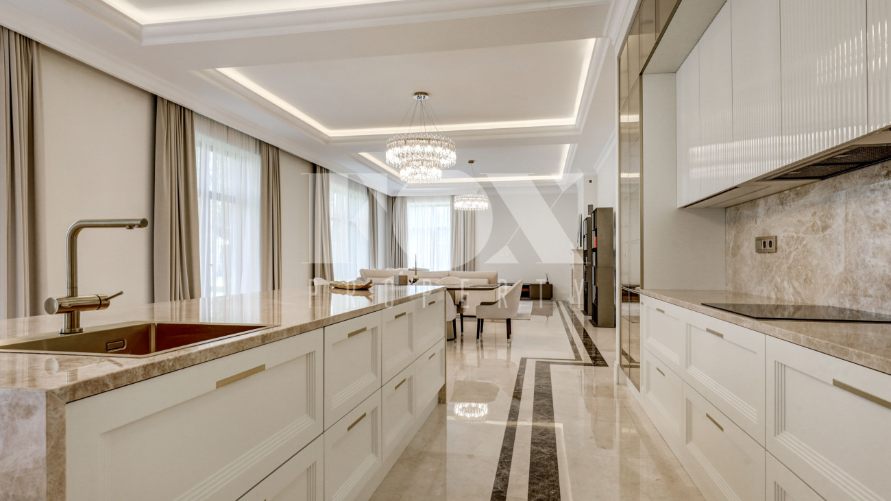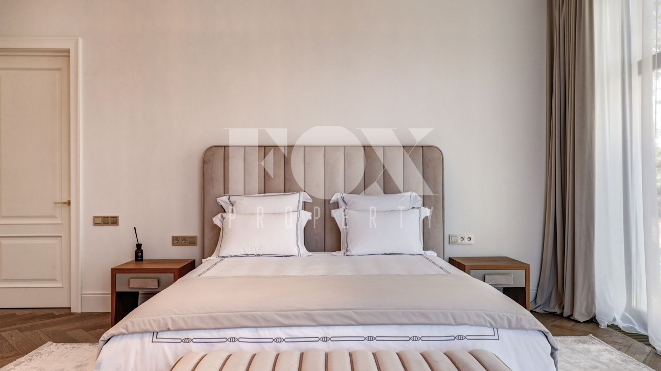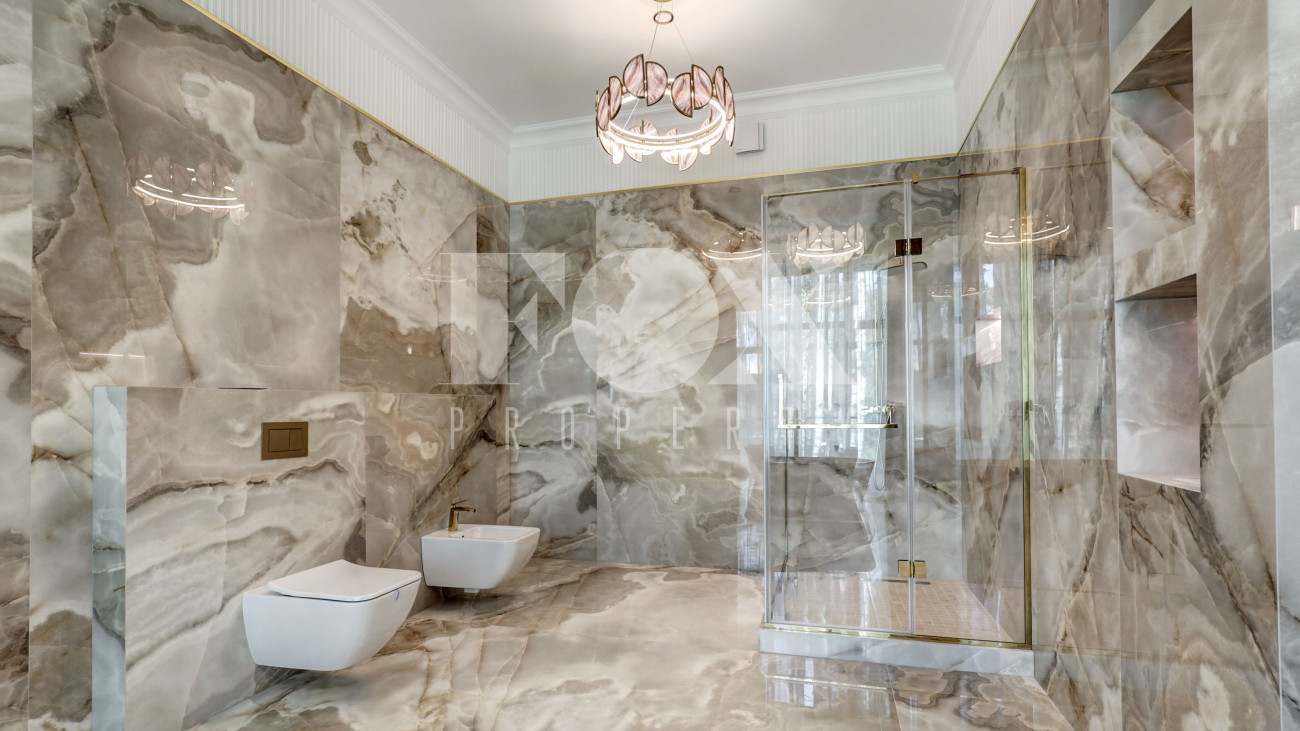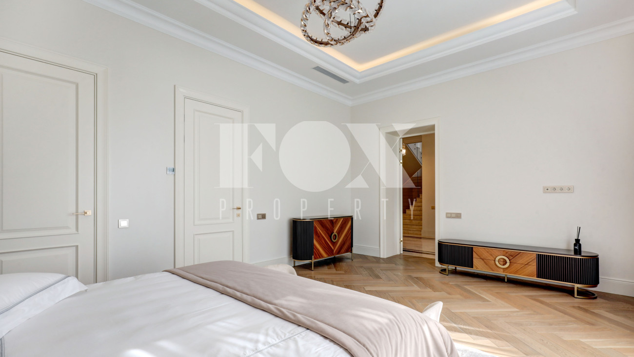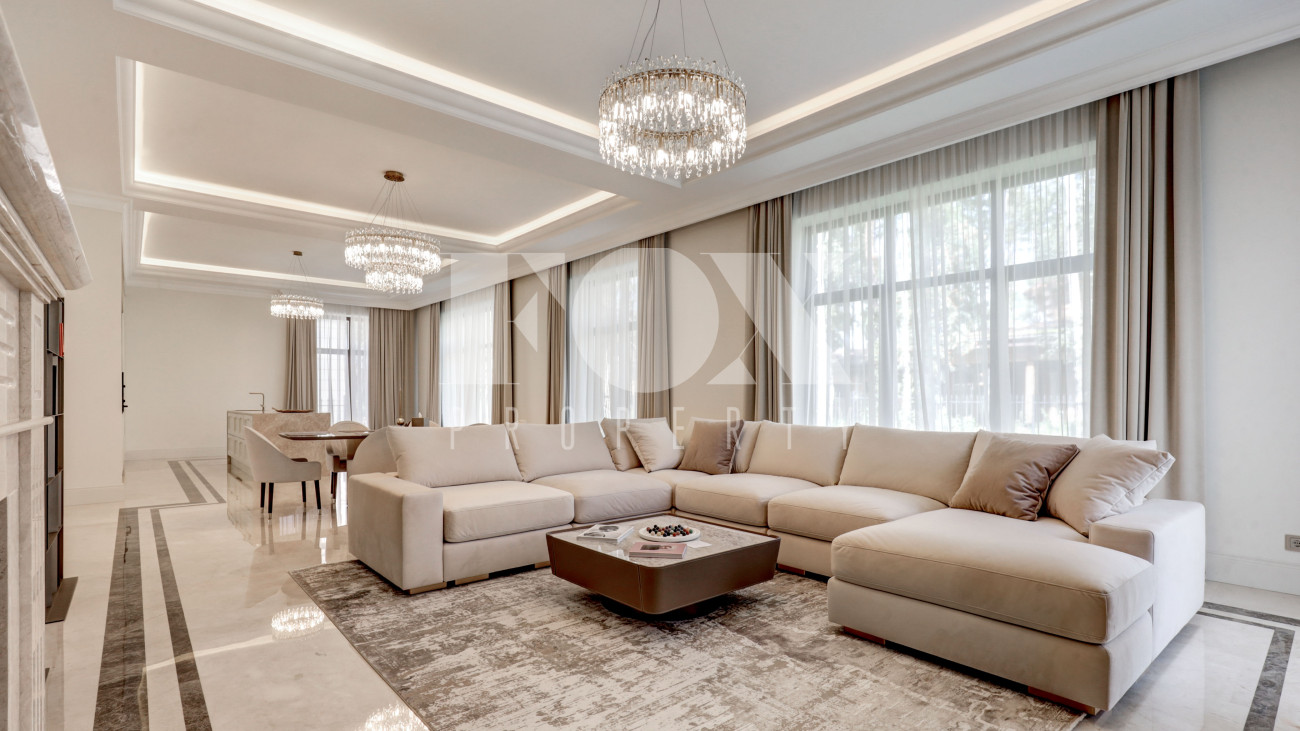 Новый кирпичный дом, 2025 года постройки, площадью 440 кв.м., на шикарном лесном участке 13 соток. Дорогой дизайнерский ремонт. В доме 5 спален с су и гардеробными, полы - мрамор с подогревом, стены венецианская штукатурка, современная кухня с бытовой техникой и островом, панорамное остекление, дизайнерская мебель.