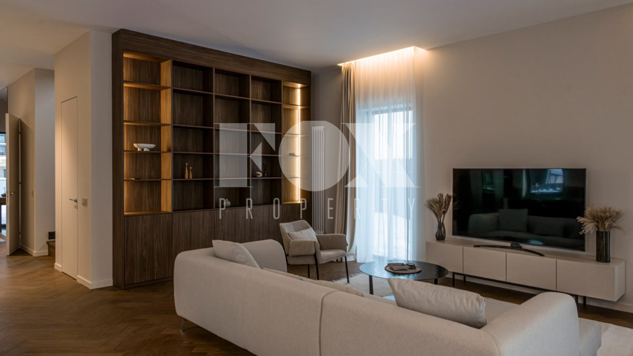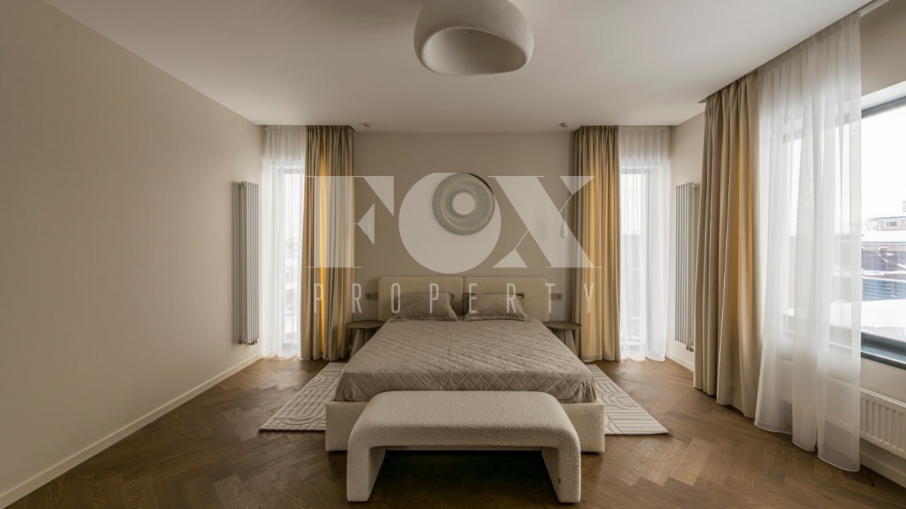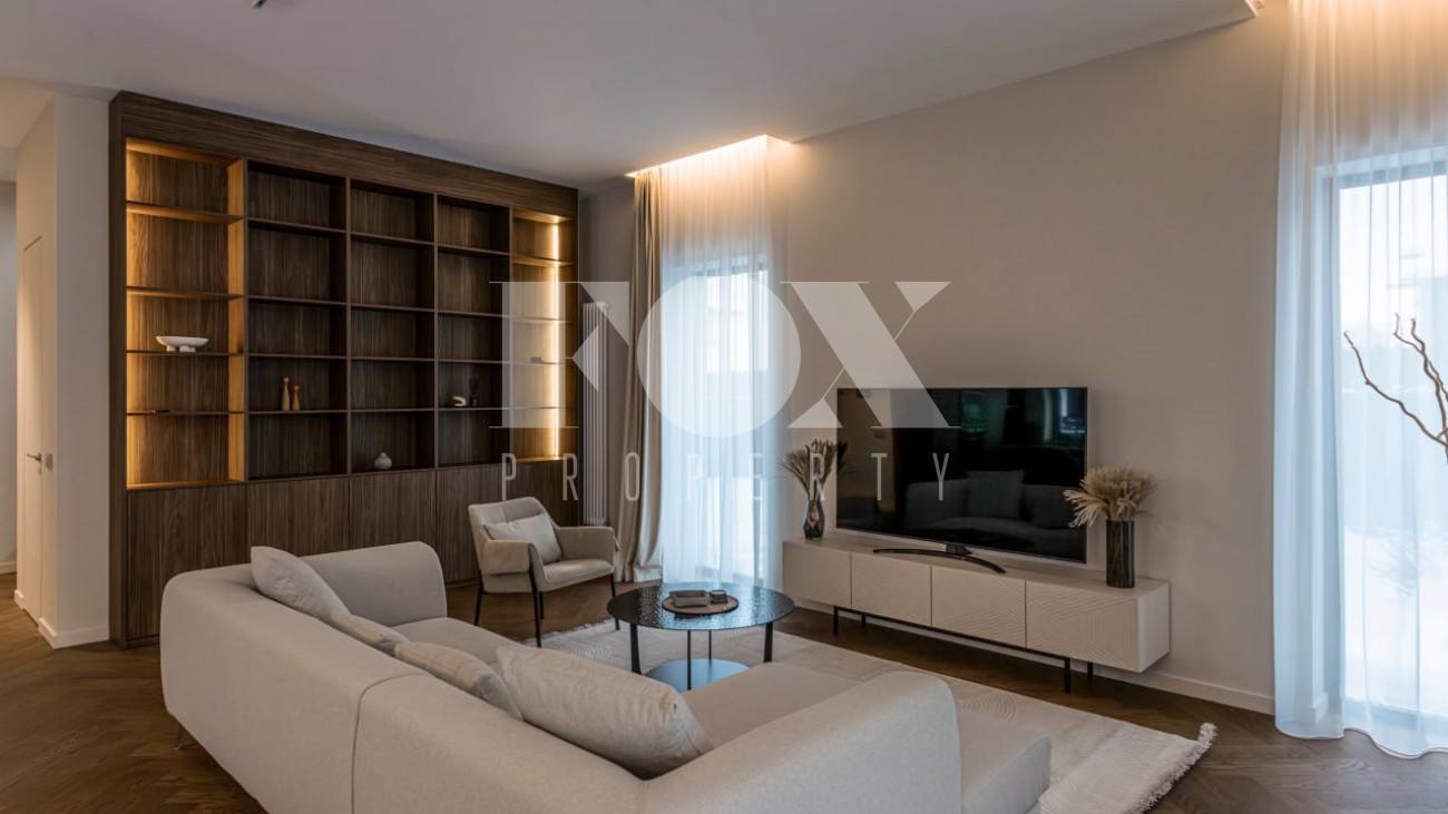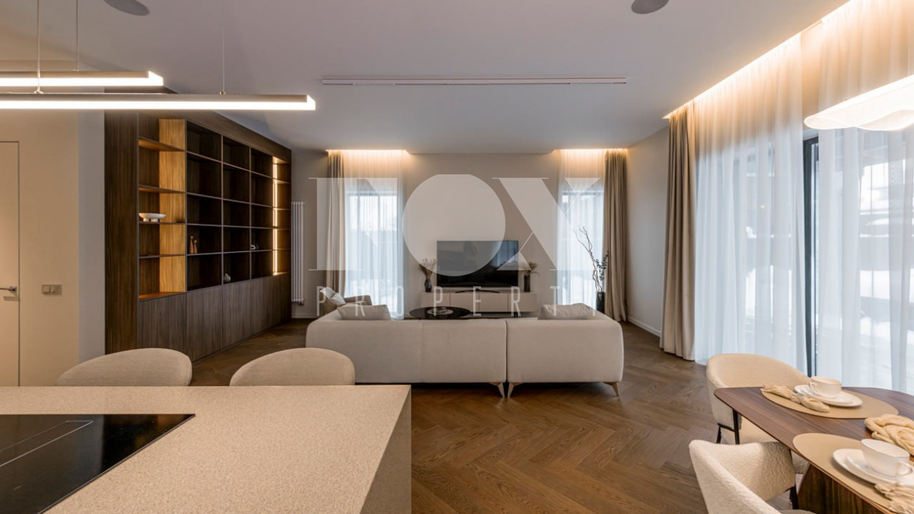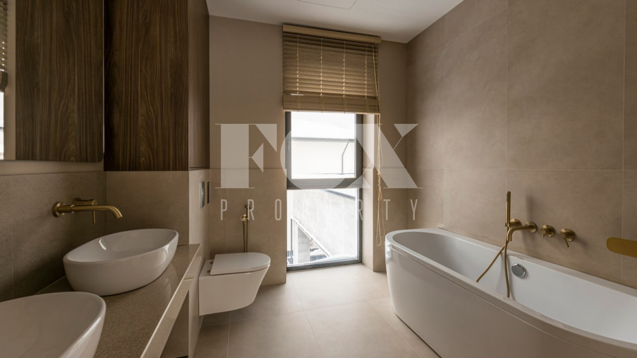 Большие панорамные окна обеспечивают хорошее естественное освещение, из гостиной есть выход на террасу и участок. В доме тёплые водяные полы, большие спальни и гардеробные, современные системы инсталляции в санузлах и мебель и освещение хорошего качества.