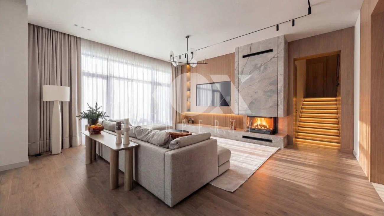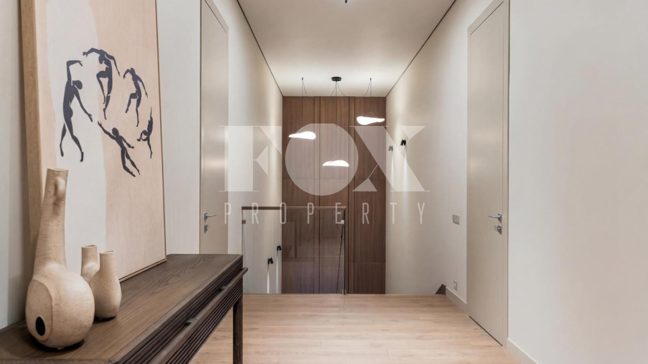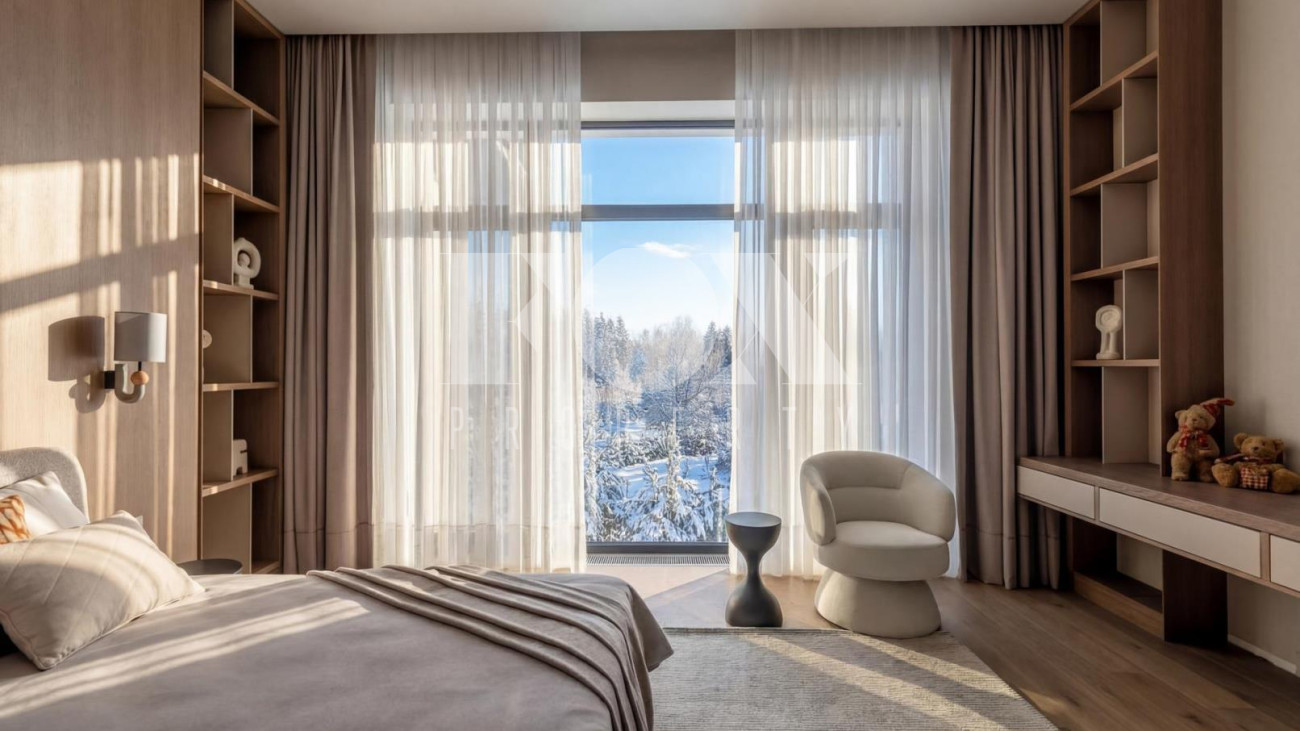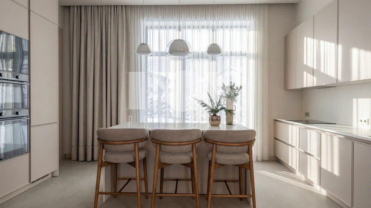 Новый дом в стиле современной классики в коттеджном поселке Мэдисон Парк. Продуманная планировка, качественные отделочные материалы и предметы интерьера. На участке выполнен ландшафтный дизайн, высажены туи, сосны, установлен автополив.
