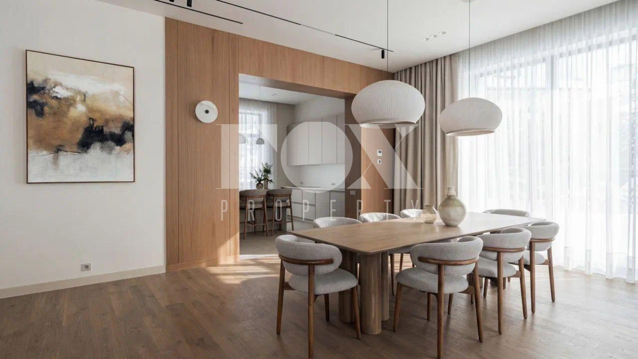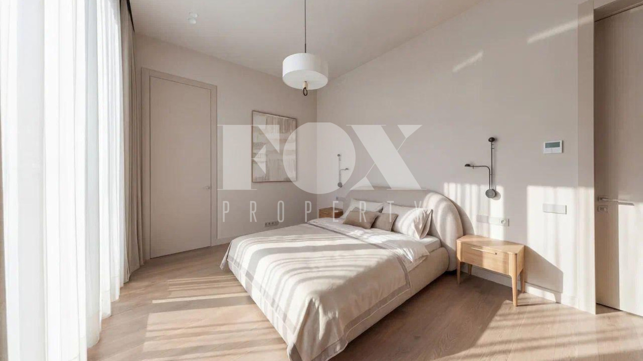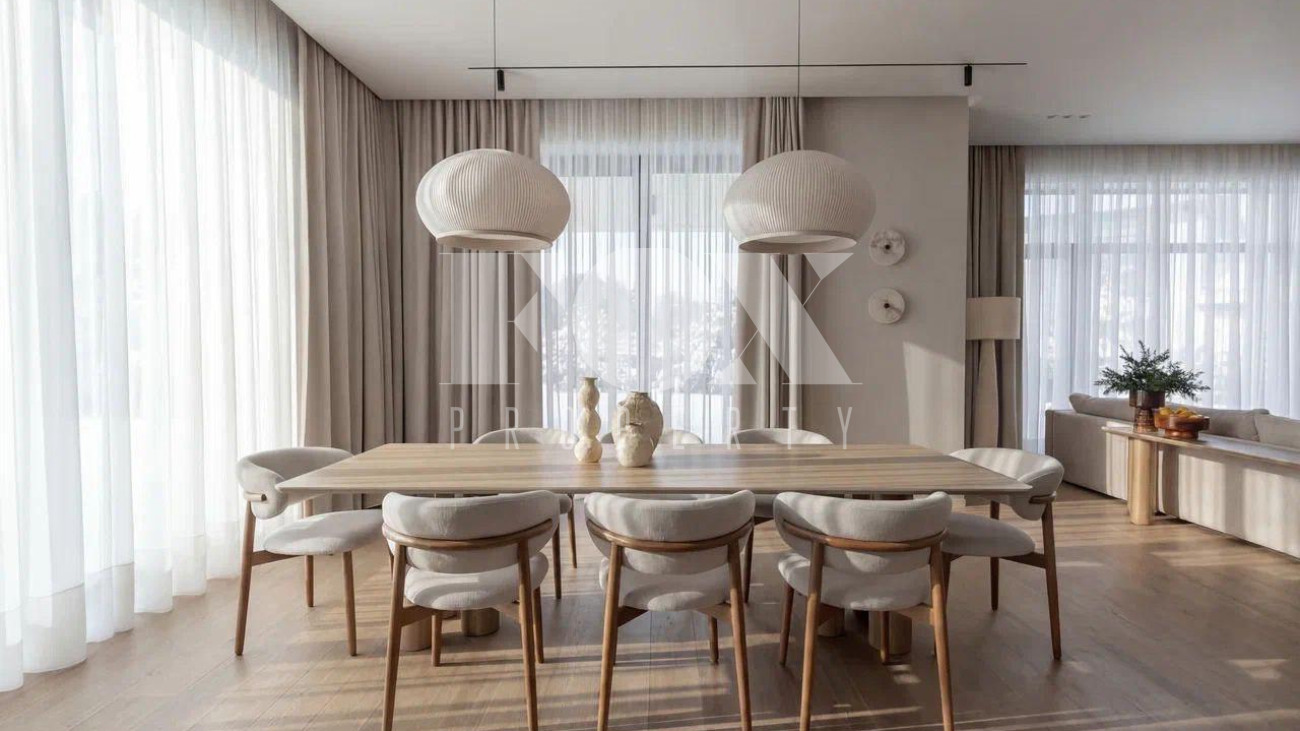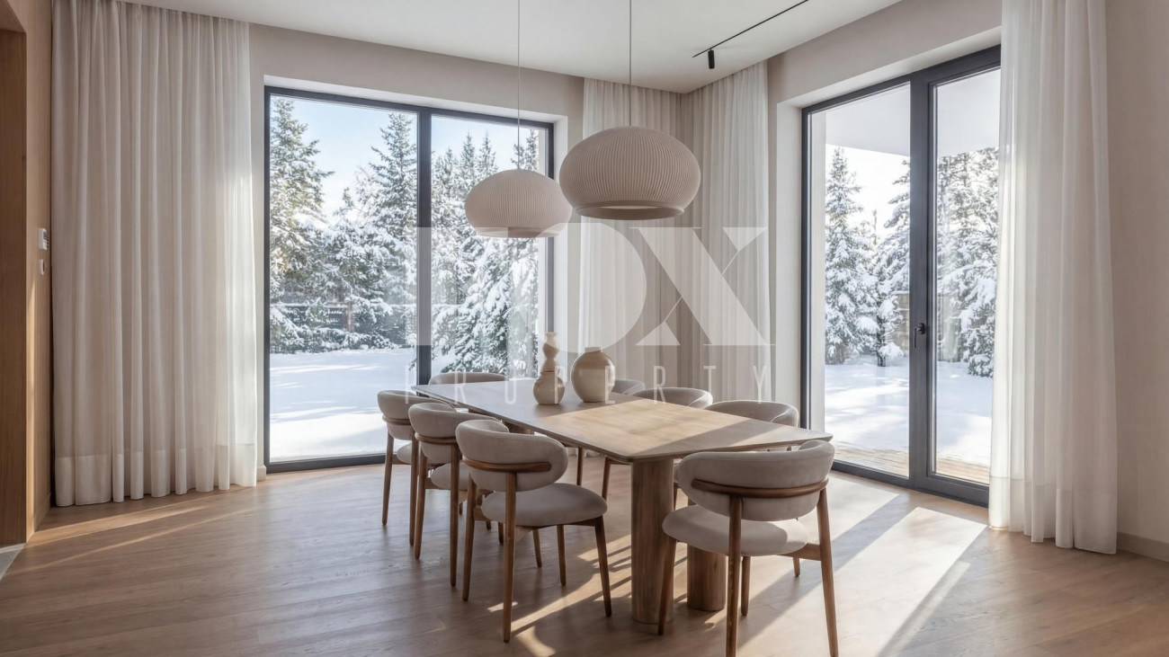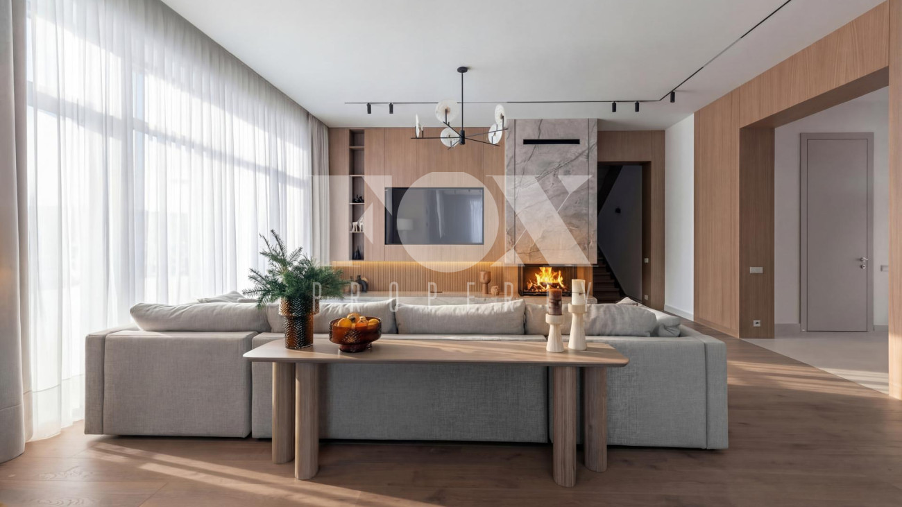 Новый дом в стиле современной классики в коттеджном поселке Мэдисон Парк. Продуманная планировка, качественные отделочные материалы и предметы интерьера. На участке выполнен ландшафтный дизайн, высажены туи, сосны, установлен автополив.
