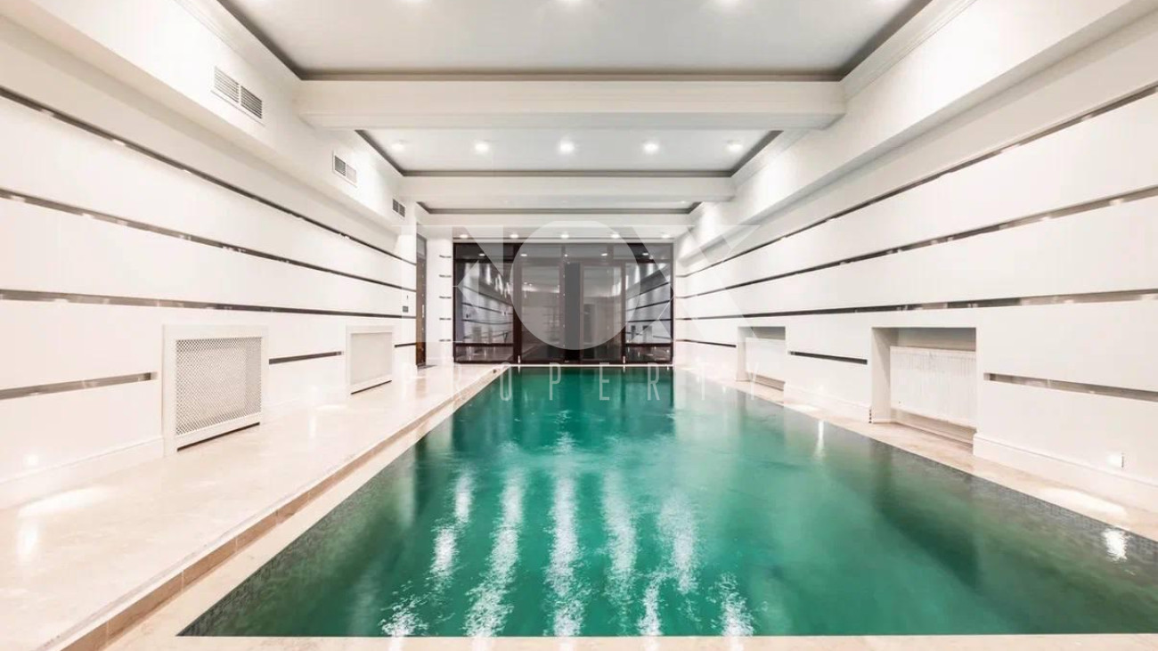 Собственный бассейн с дорожкой 10 м и глубиной 1,7 м. Общая площадь СПА 75 м2 и выход на обширную терассу 199 м2.