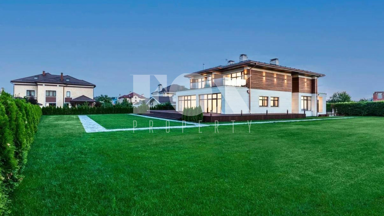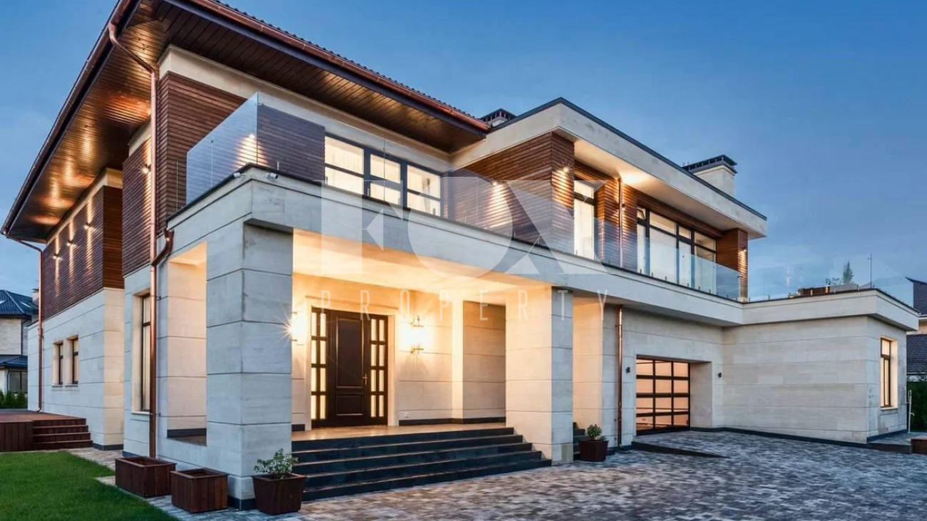 Современный стиль с премиальной отделкой. Загородная резиденция расположена в коттеджном посёлке Миллениум Парк в Истринском районе в 23 километрах км от МКАД по Новорижскому шоссе.