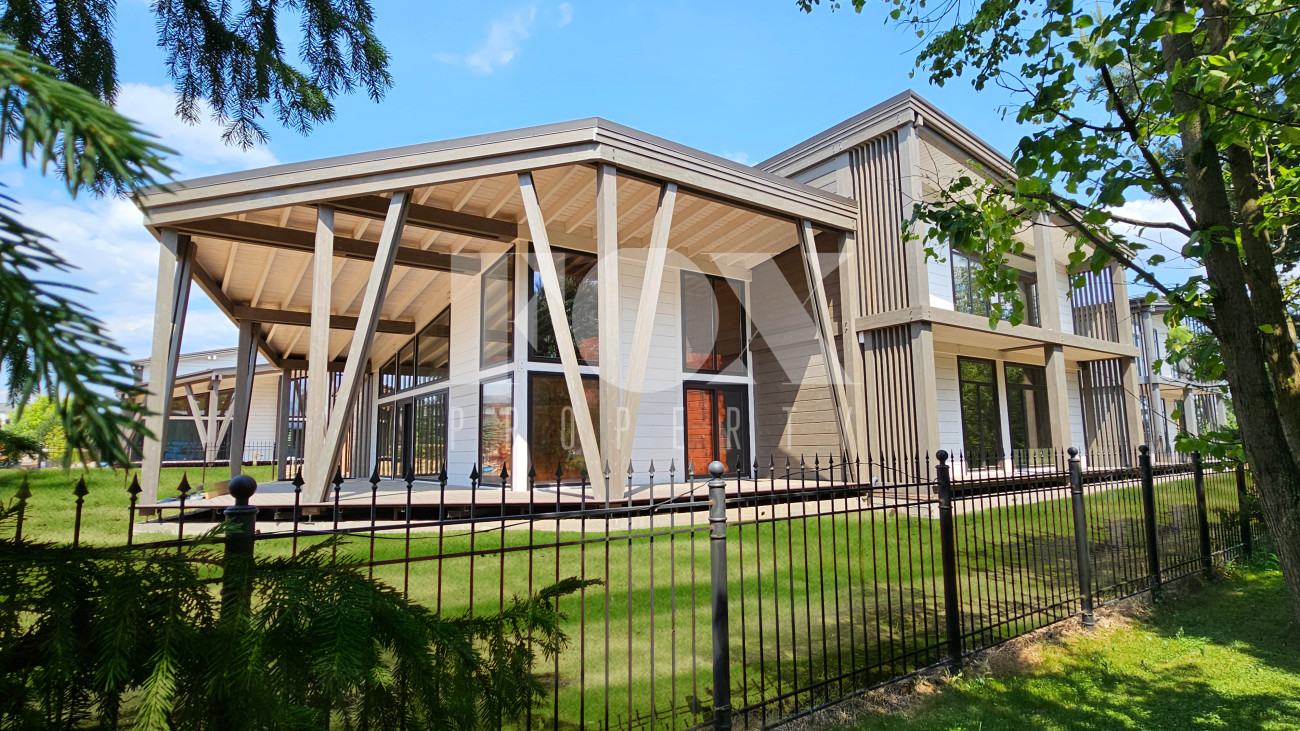 Дом 500м2 на 12 сотках у парка и канала. Выполнен ландшафт, черновые работы (инженерия, полы, перегородки), есть полный дизайн проект.