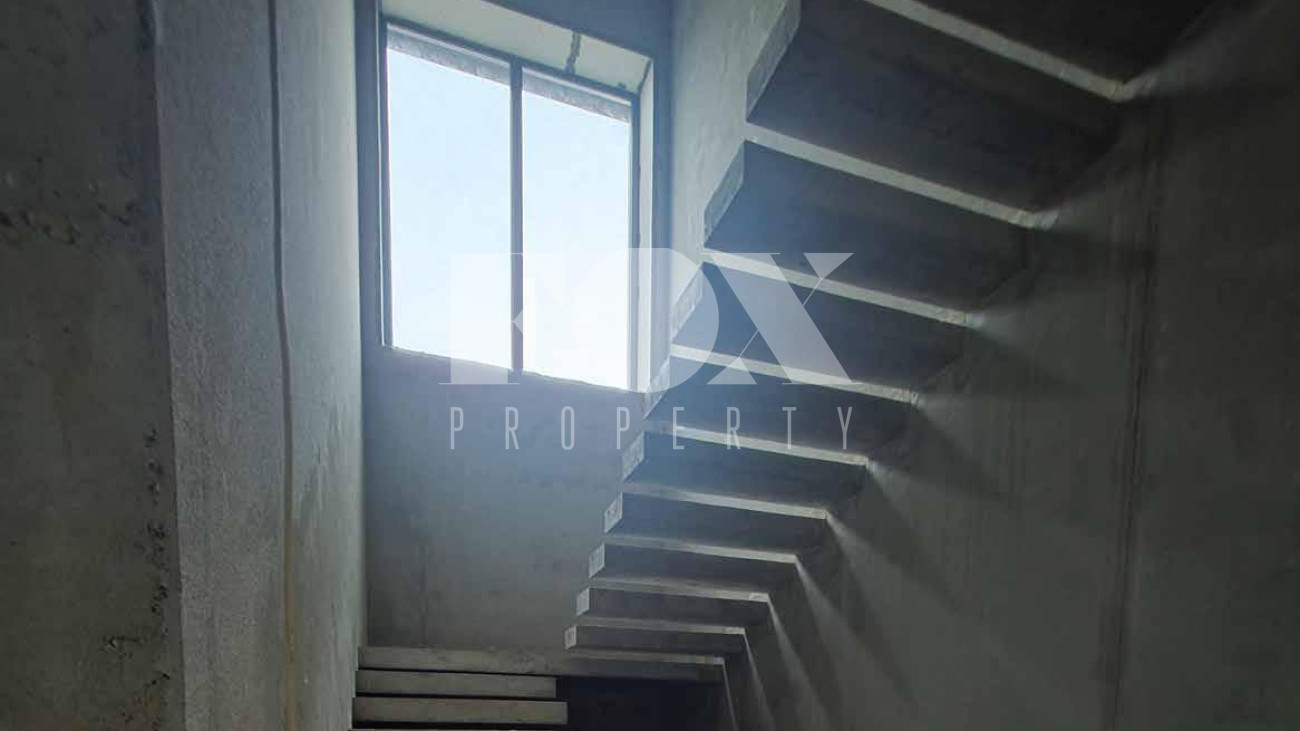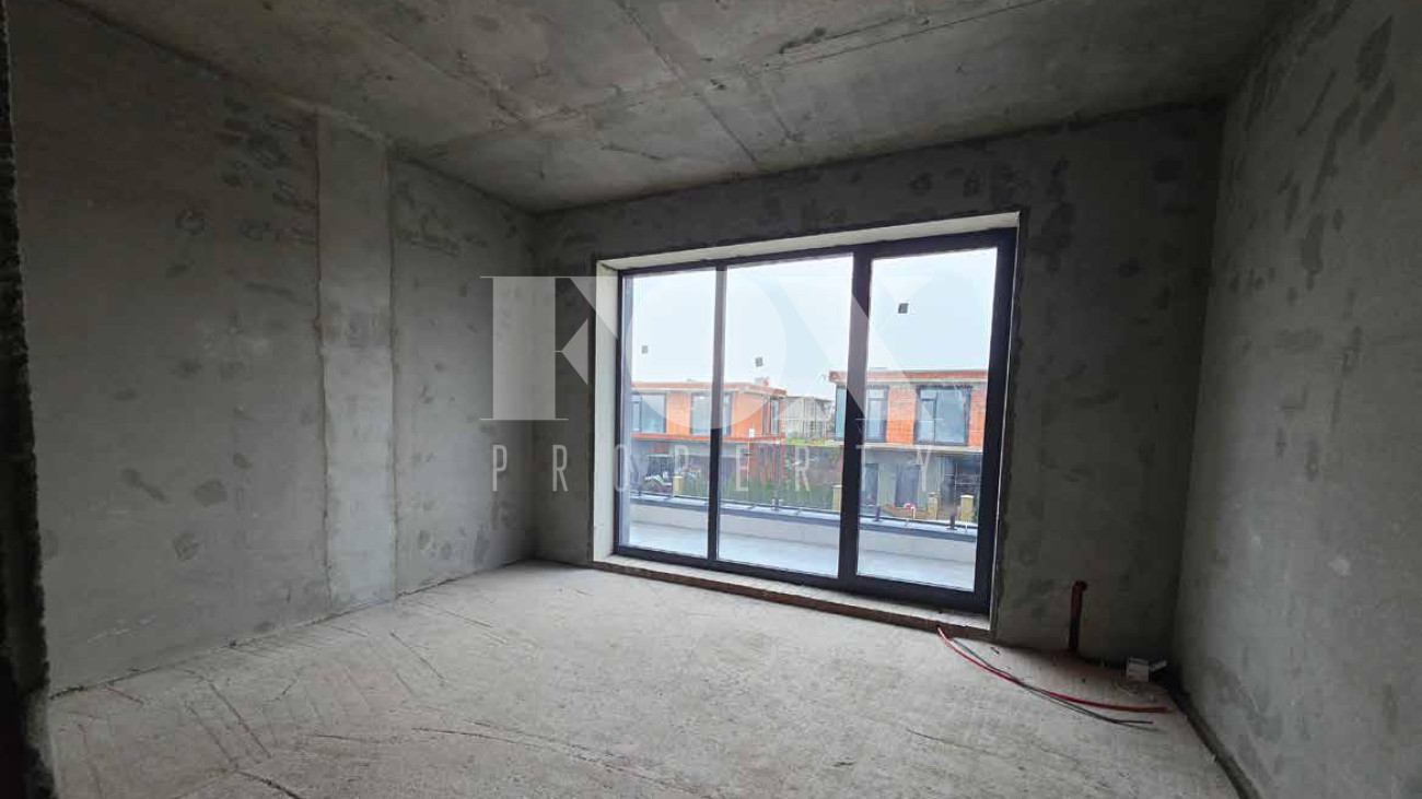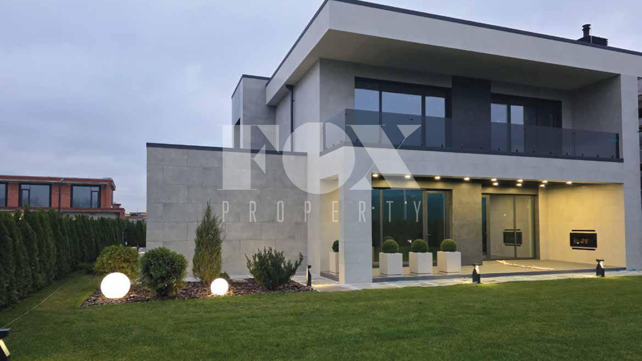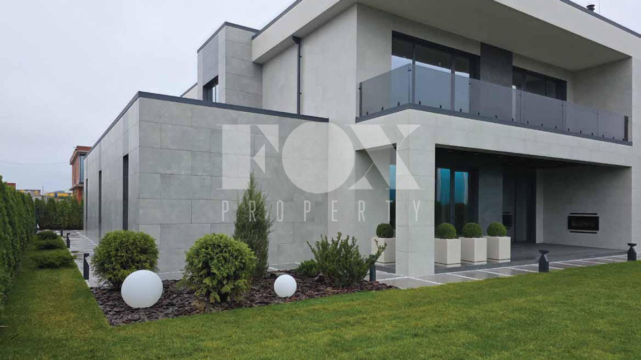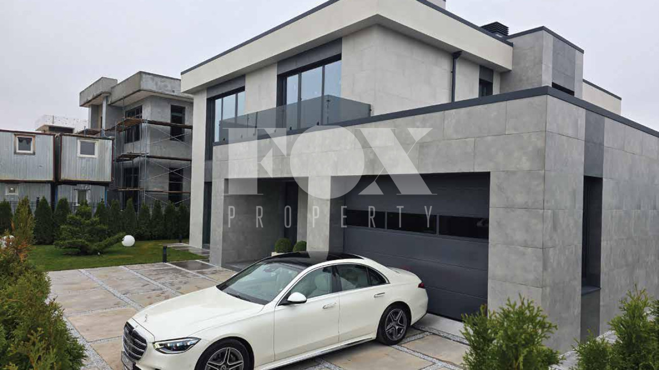 Дом продаётся готовым под чистовую отделку, выложены перегородки, оштукатурины стены и откосы, залита монолитная парящая лестница, сделана частично электрика к существующим электроприборам, в котельной выложен керамогранит. Высота потолков 1 и 2 этажа 3.65 м.,  дверные проемы высотой 2.8 м., панорамное остекление.