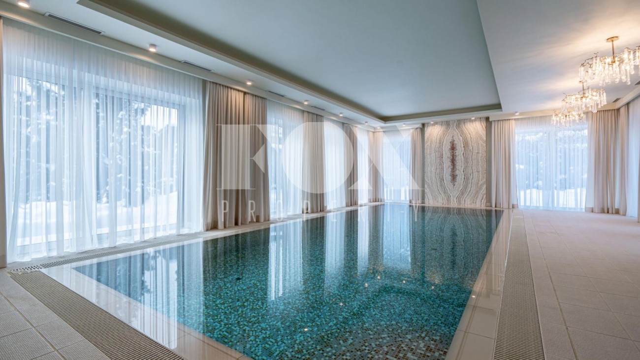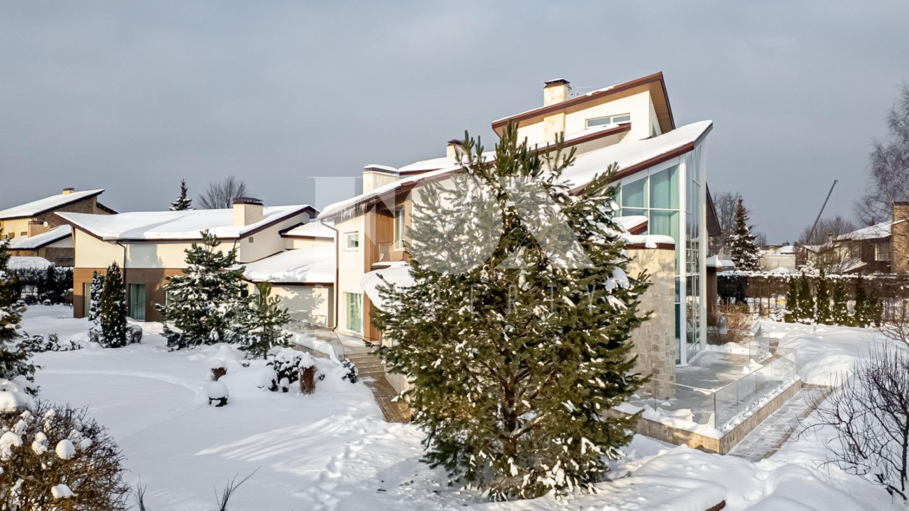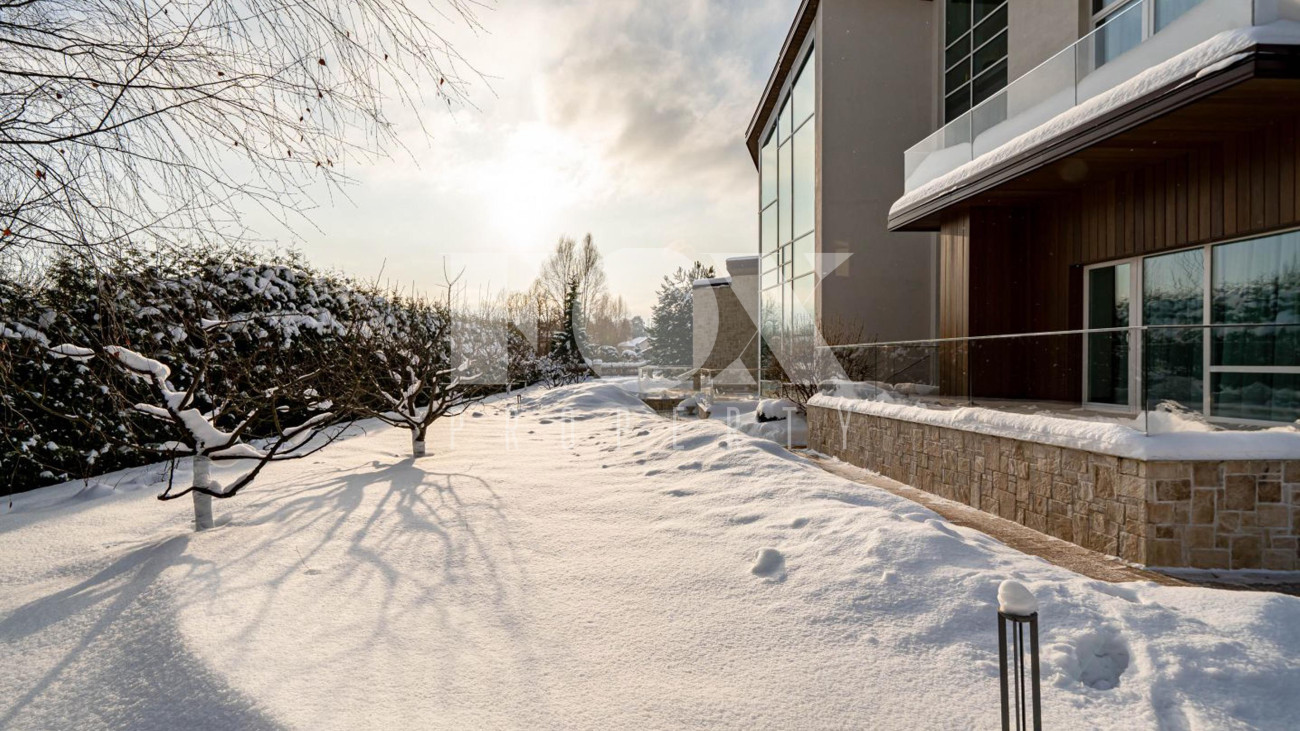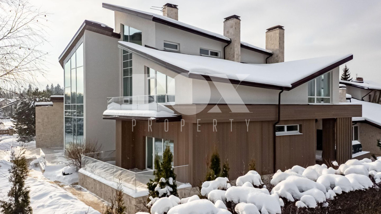Дом с дизайнерским интерьером и бассейном в КП Миллениум Парк Дом площадью 950 м² с 6 спальнями, расположен на участке 35 соток в коттеджном посёлке Миллениум Парк. Архитектура, свет и вода формируют редкую атмосферу уединения, где дом становится продолжением природного ландшафта.