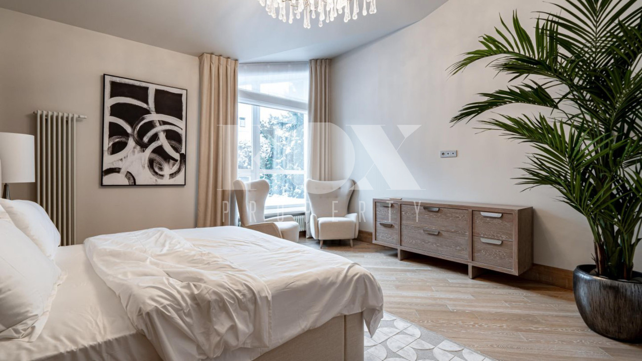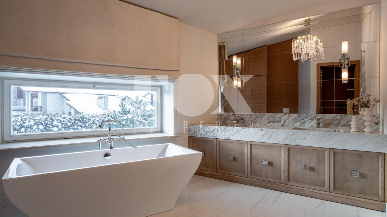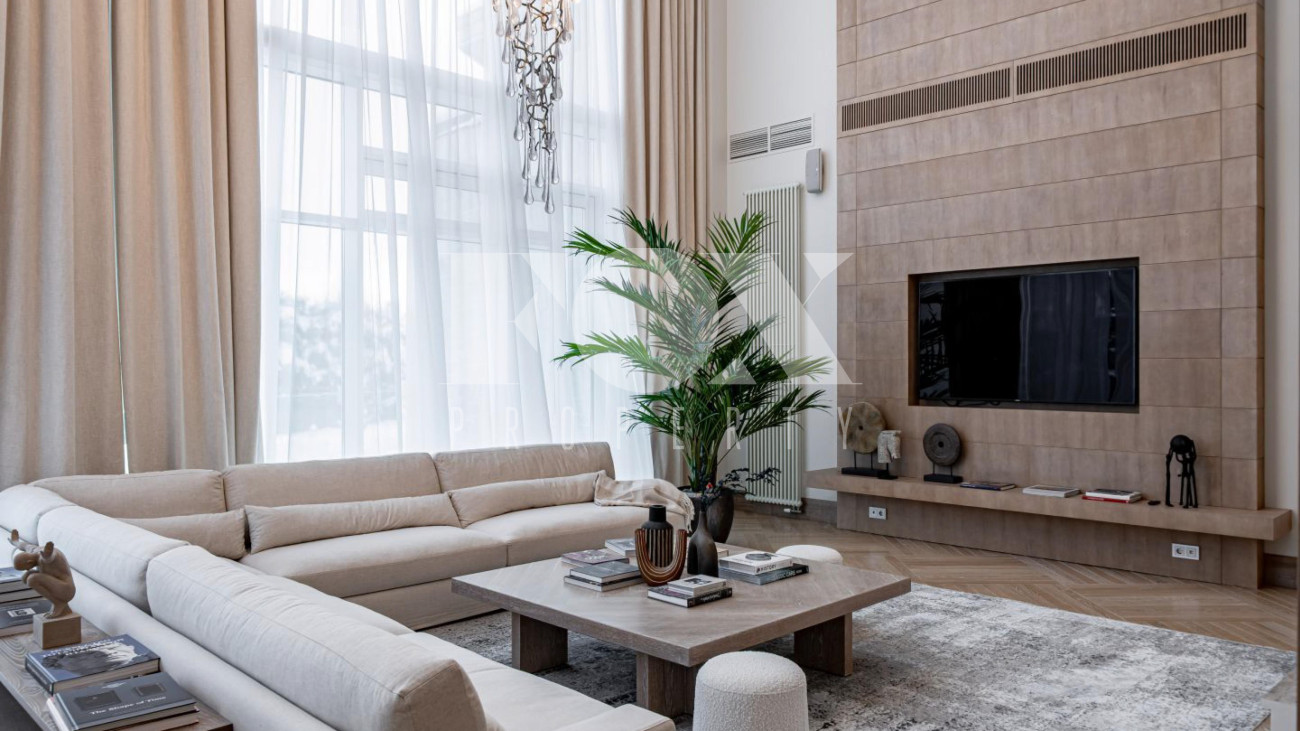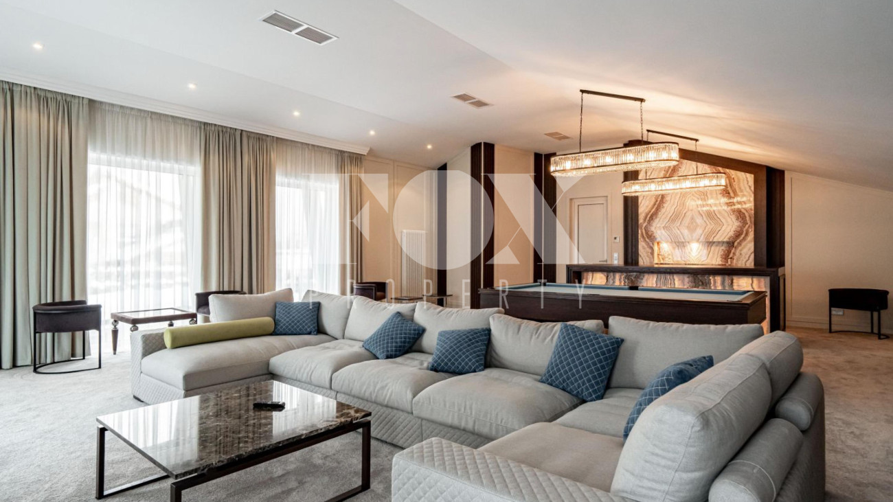 Дом с дизайнерским интерьером и бассейном в КП Миллениум Парк Дом площадью 950 м² с 6 спальнями, расположен на участке 35 соток в коттеджном посёлке Миллениум Парк. Архитектура, свет и вода формируют редкую атмосферу уединения, где дом становится продолжением природного ландшафта.