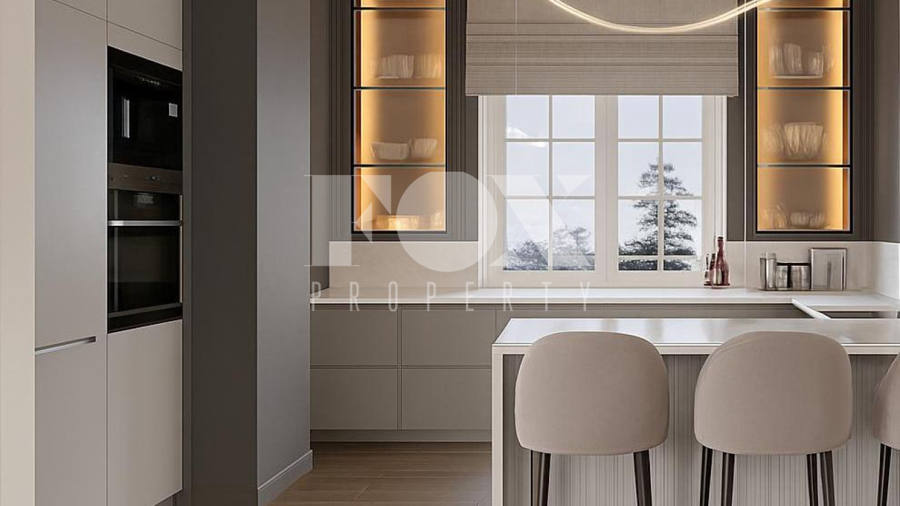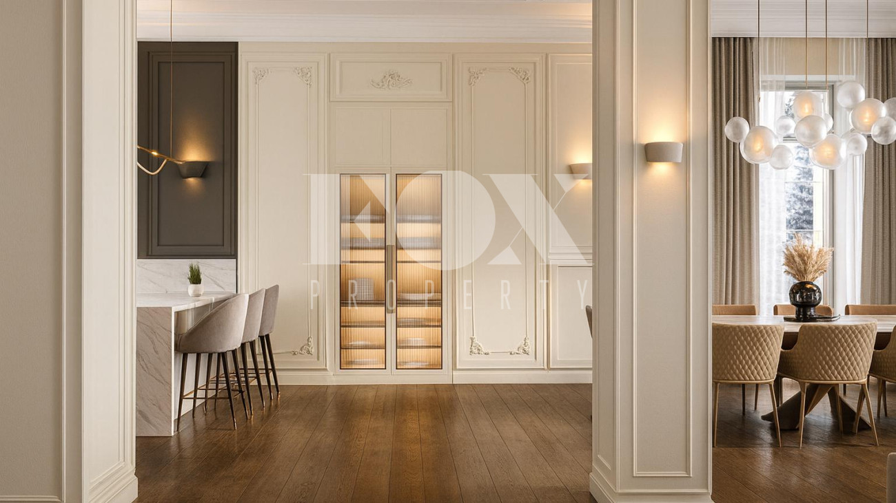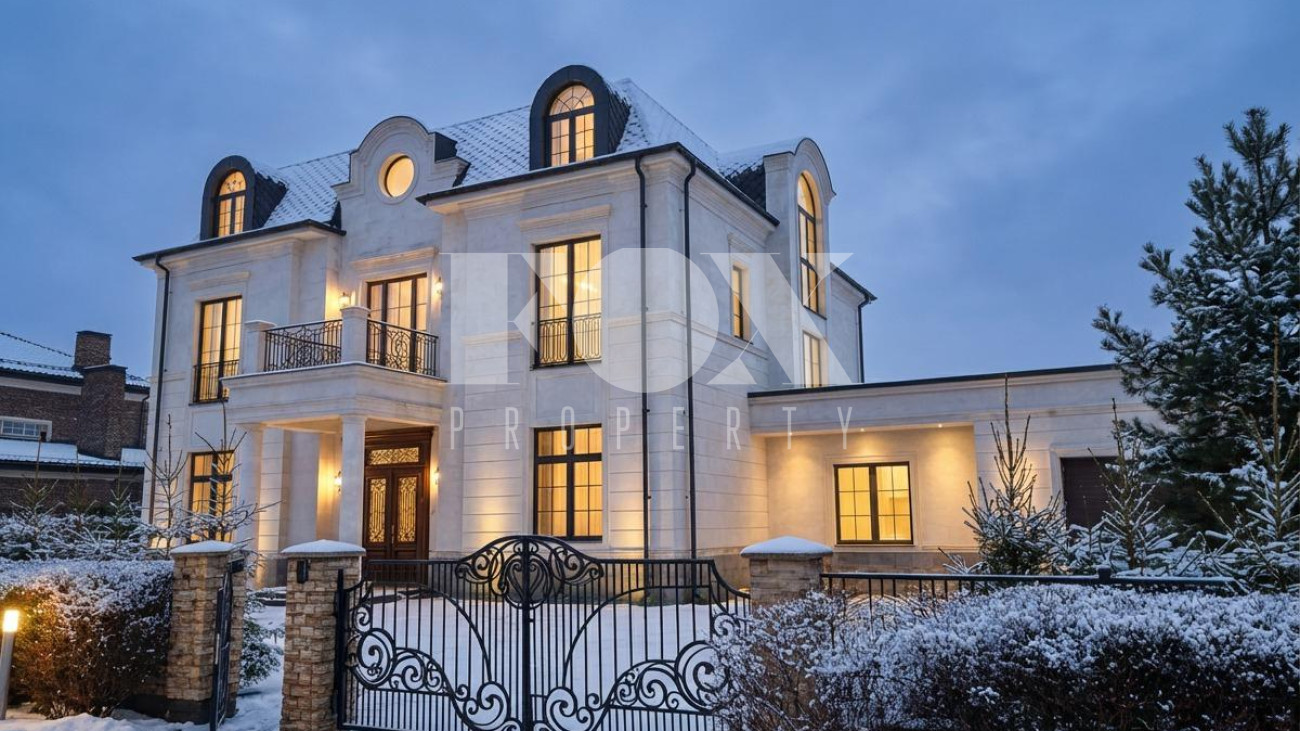 Классическая элегантность. Современное исполнение. Дом площадью 600 кв.м на просторном участке площадью 18.5 соток. 5 спальных зон со своими санузлами и гардеробными. Гостиная площадью 80 кв.м с кухней и столовой зоной. Кабинет для работы и деловых переговоров. Уникальное пространство мансарды со СПА-зоной, хамамом, сауной и отдельным санузлом. Выделенная зона персонала и гараж на 2 м/м со станцией зарядки. Высота потолков 3.7 м. В отделке интерьера используются премиальные натуральные материалы: камень, дерево. Мебель из Италии.