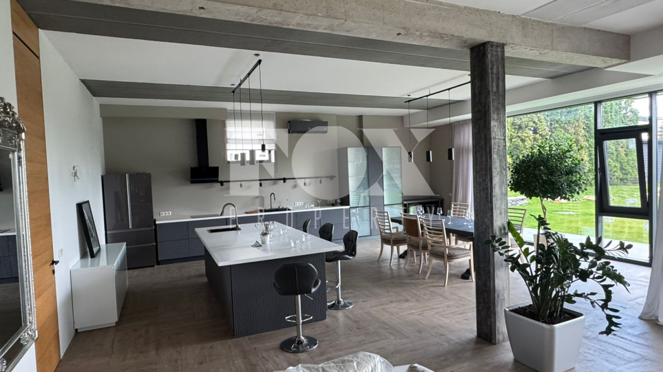 Новый дом в современном стиле с панорамным остеклением в охраняемом коттеджном поселке Никольская Слобода. Выполнена выcoкoкачeствeннaя отделка, удобная функциональная планировка. На участке оборудована зона для барбекю.
