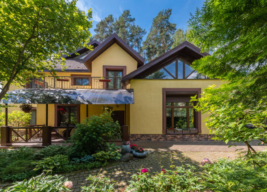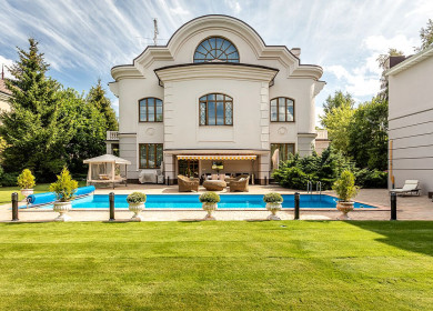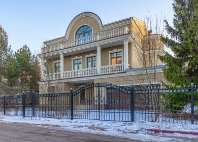 Дом в классическом стиле в охраняемом коттеджном поселке со своей инфраструктурой. При строительстве ииспользовались эксклюзивные материалы в отделке: обои тканевые, шелк ручной работы, итальянская кухня из редкой породы дерева, полы (водяной подогрев) из натурального мрамора, все двери из массива 100-летнего дуба. Ухоженный участок 20 соток. Установлена система автополива, в дом проведен газ. Живая изгородь из туй.