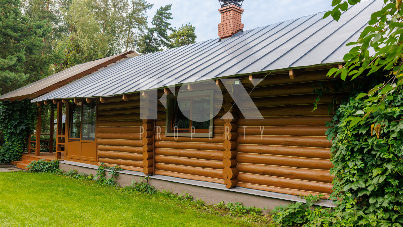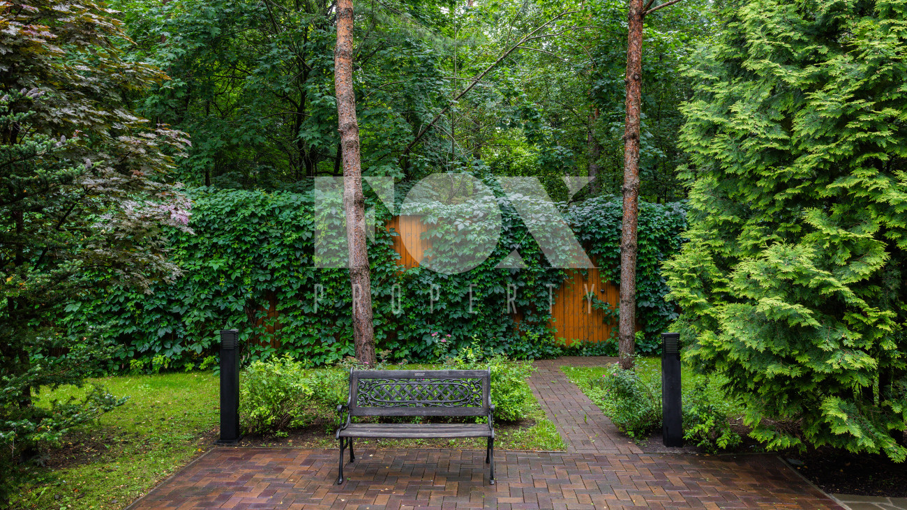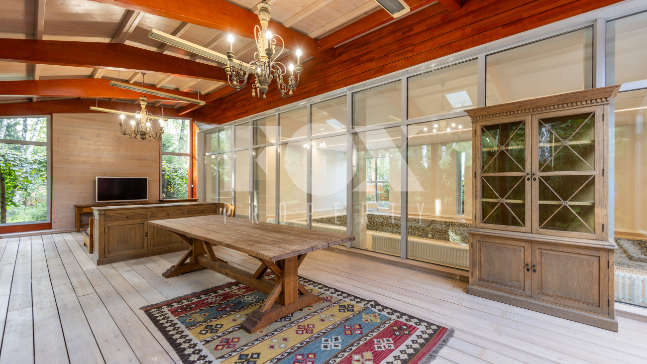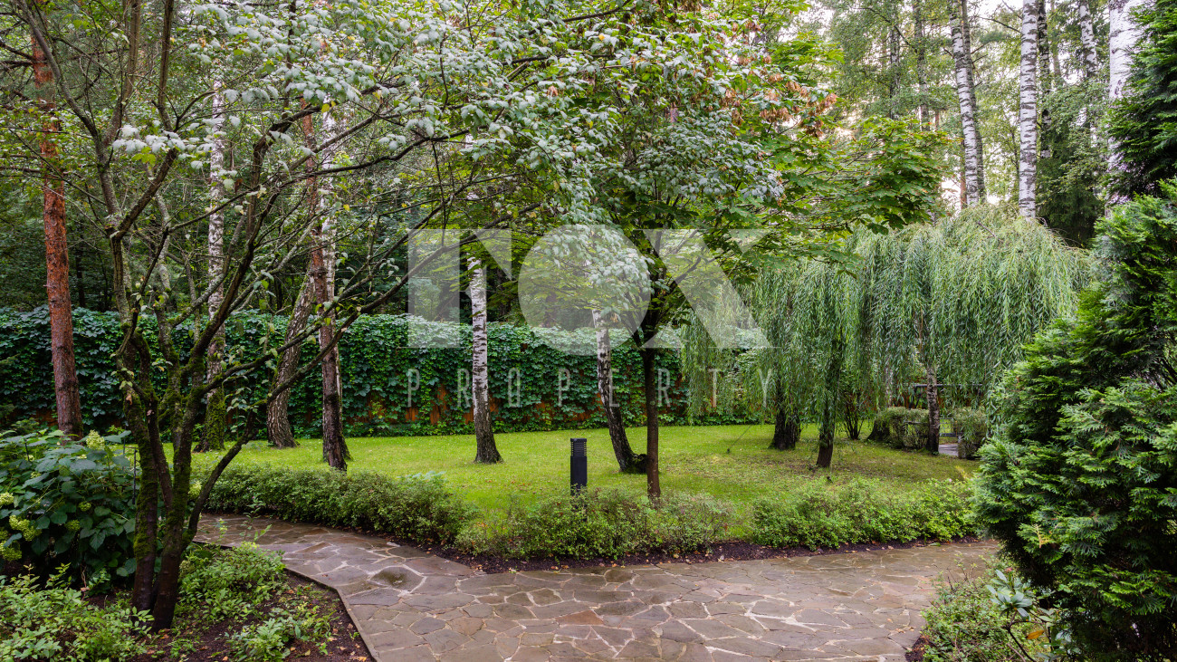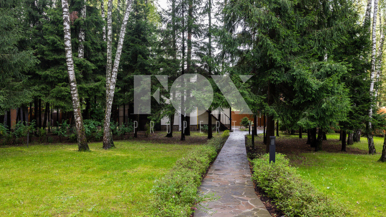 Отдельно расположены дровяная баня площадью 72 кв.м с дубовой бочкой, гараж площадью 105 кв.м с блоком для персонала на втором этаже. Оборудована зона барбекю.
