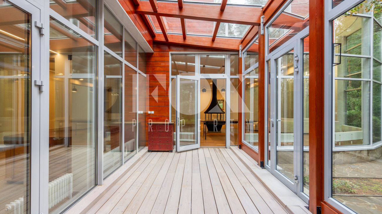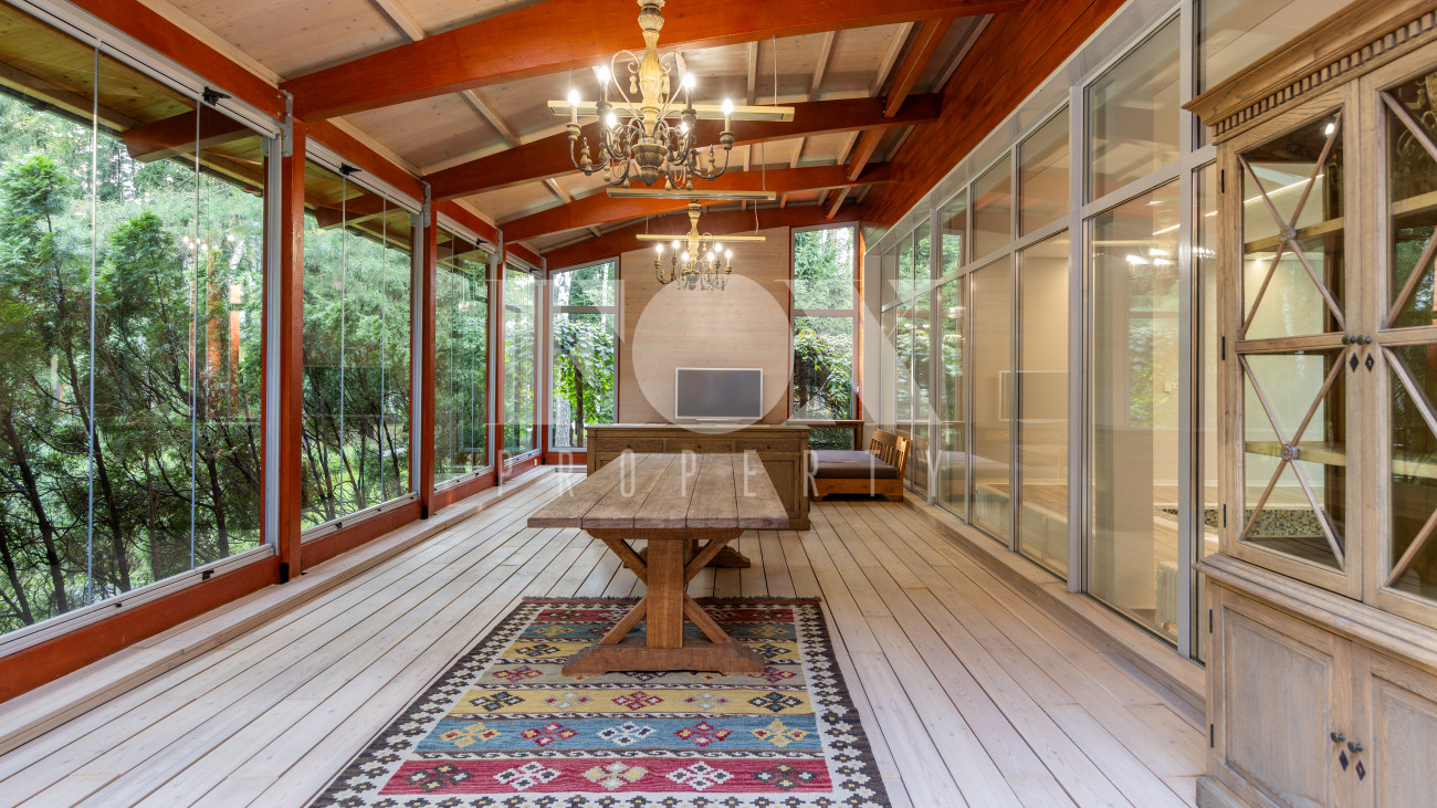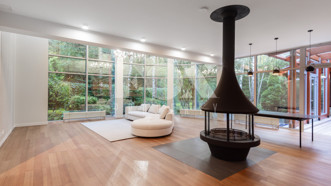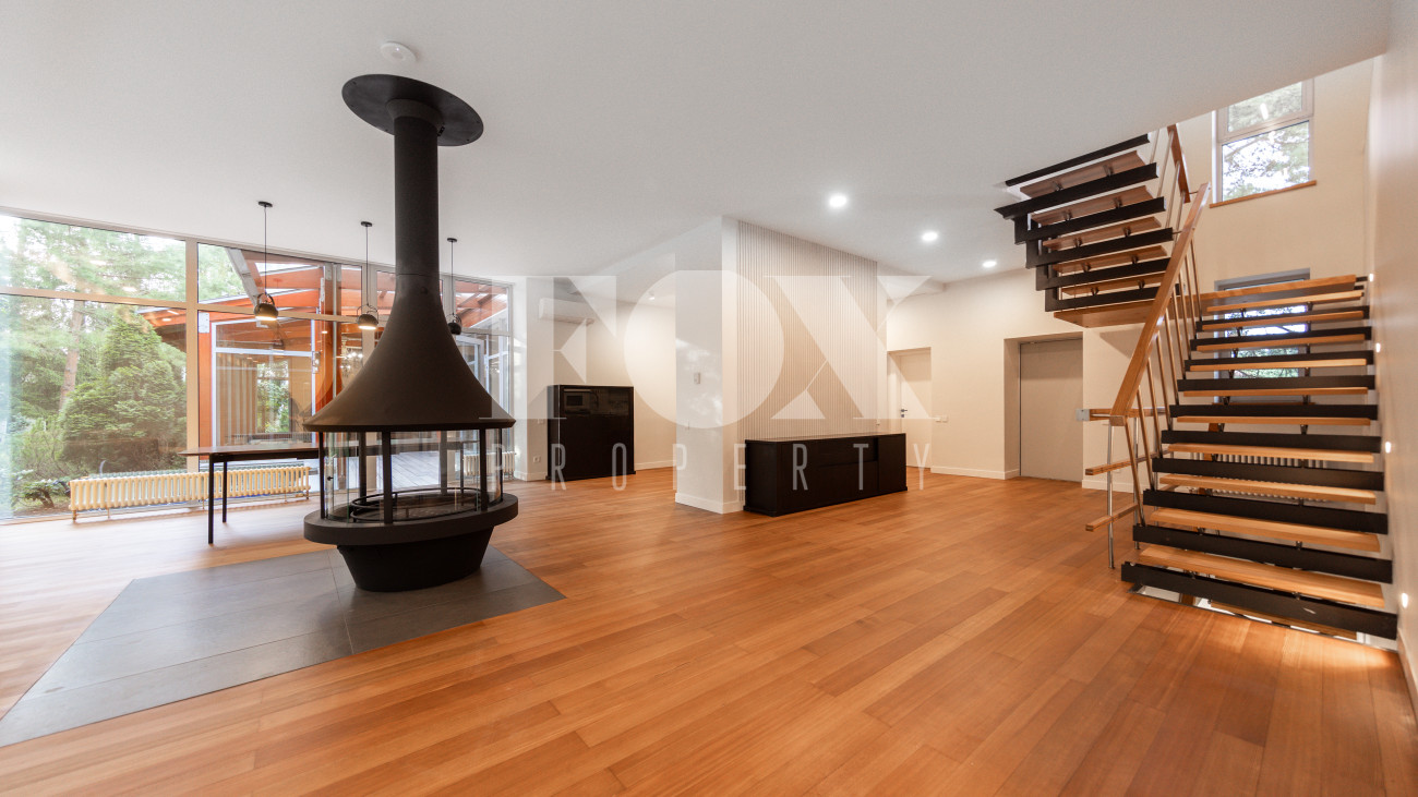 Дом в современном стиле на просторном лесном участке 50 соток в д. Новинки. Современный дизайн, большая площадь остекления, панорамные виды.